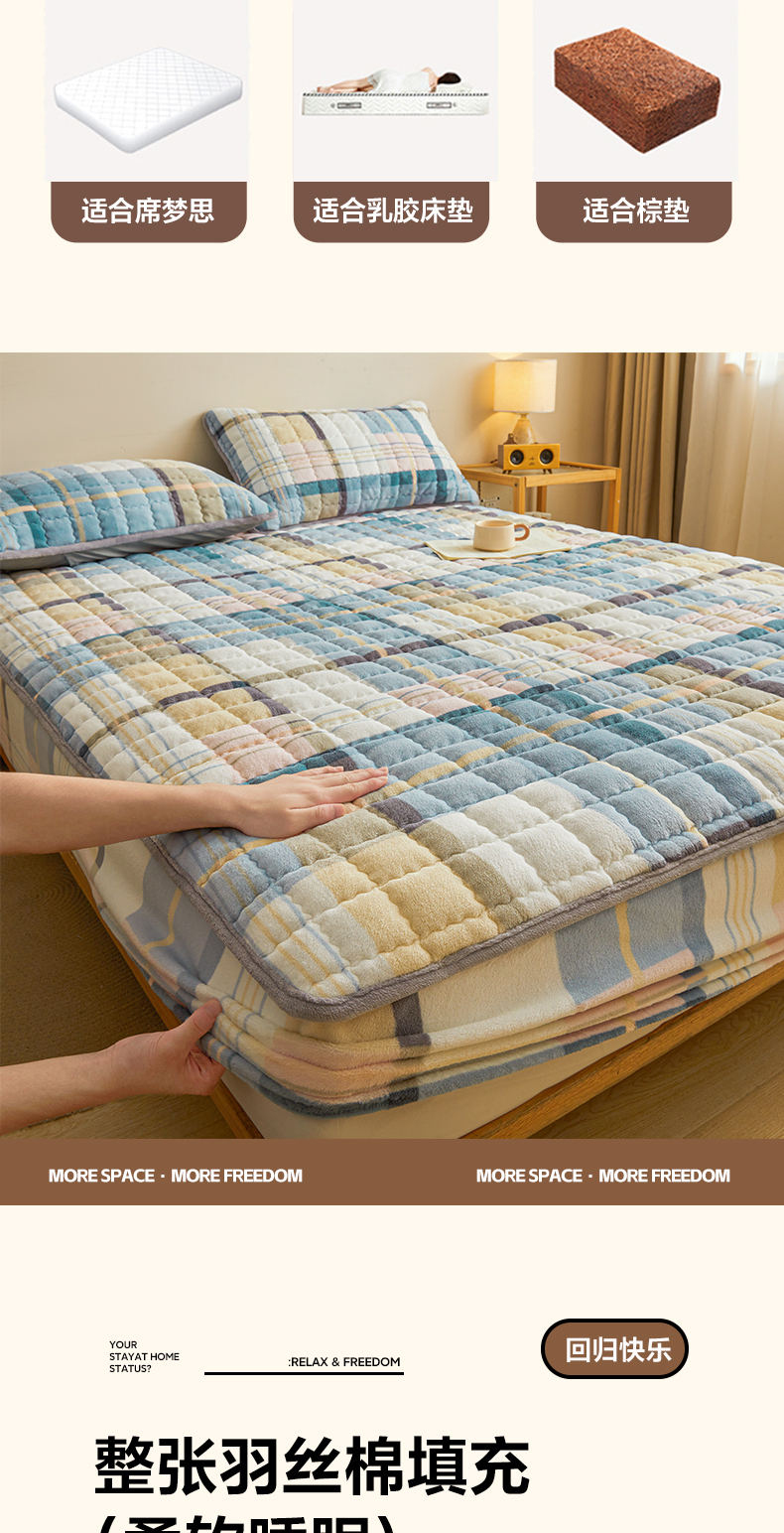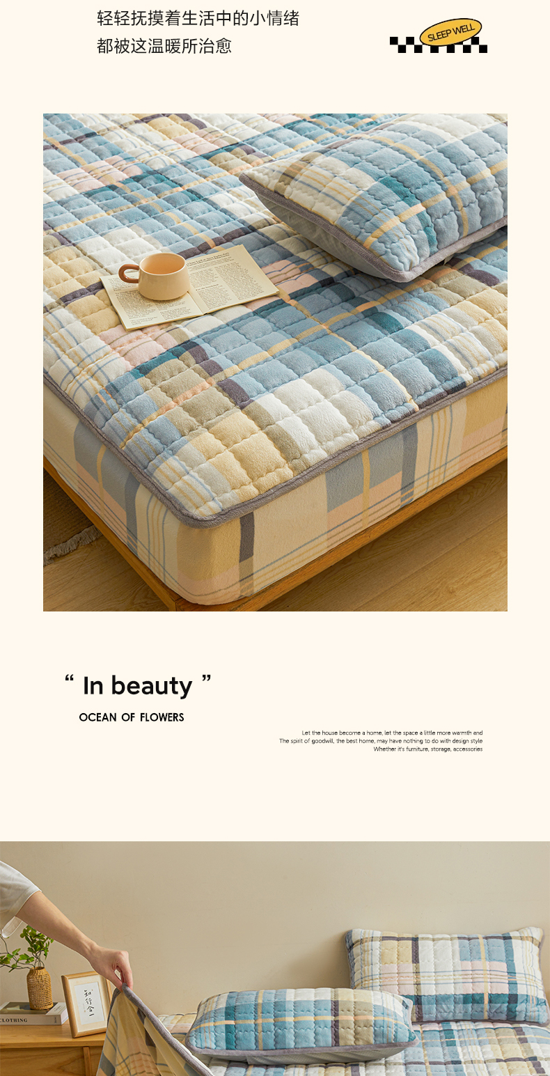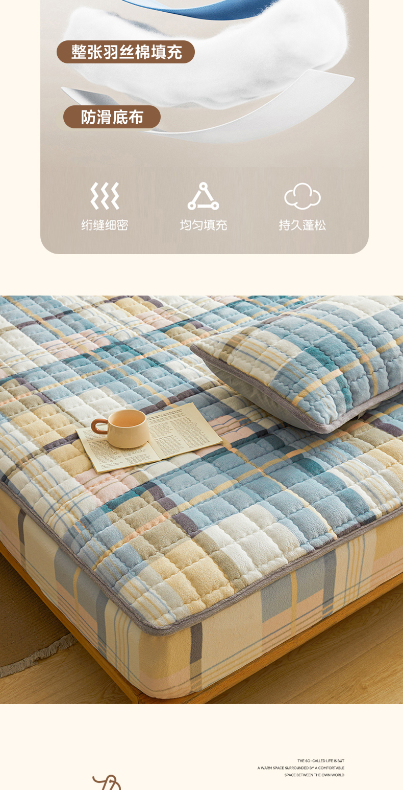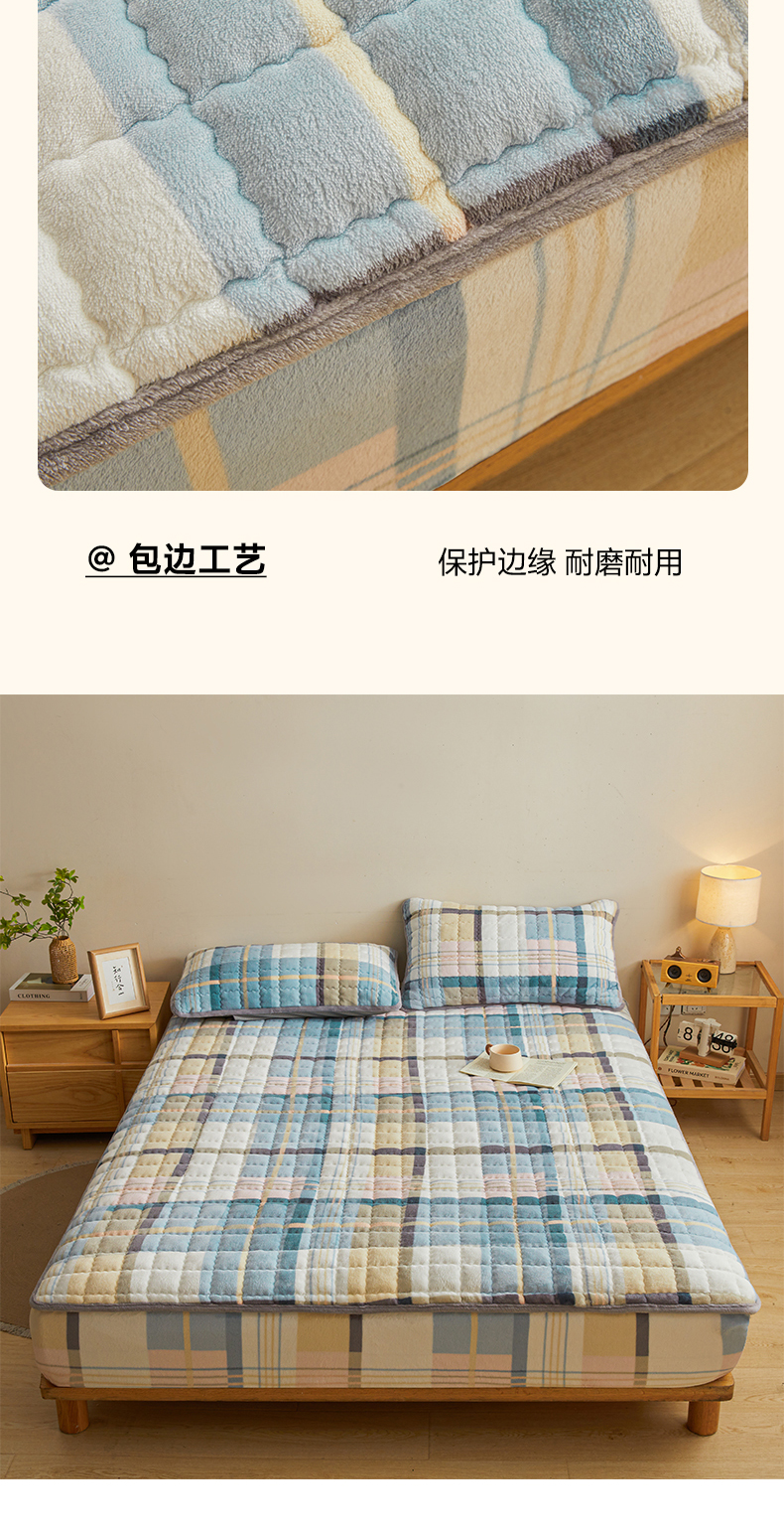(总)澳梵家居 2025新款无印风牛奶绒夹棉床护垫,蓝粉格调,浅蓝格纹,青蓝格纹,青绿黄格纹,雅致格调,幽蓝格调,棕绿白格,组合