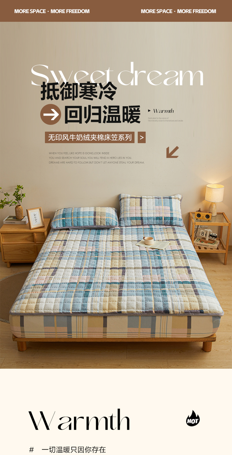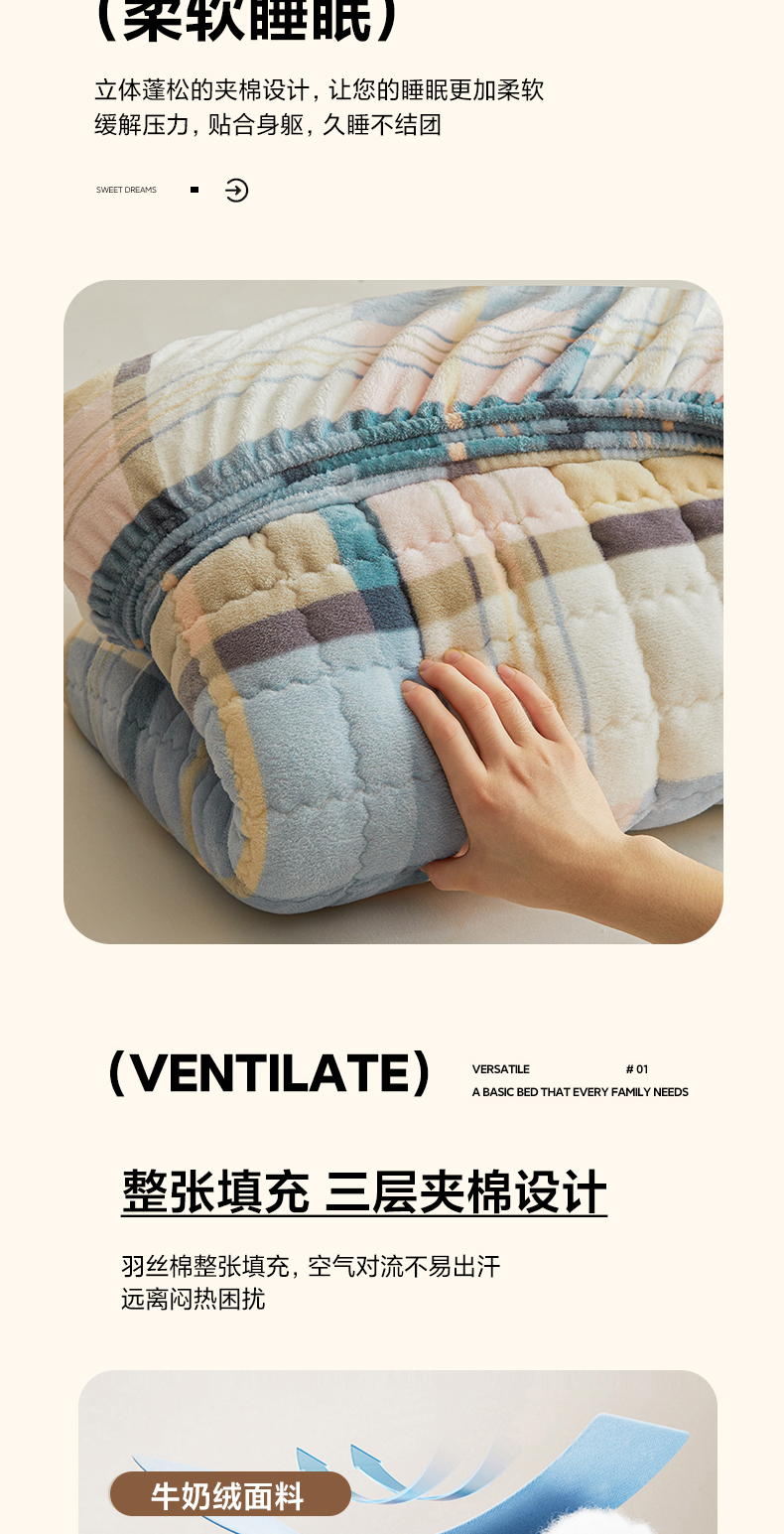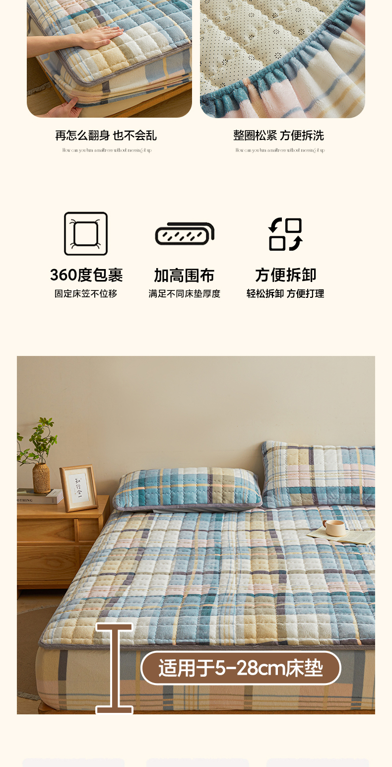 澳梵家居 2025新款无印风牛奶绒夹棉床笠 雅致格调