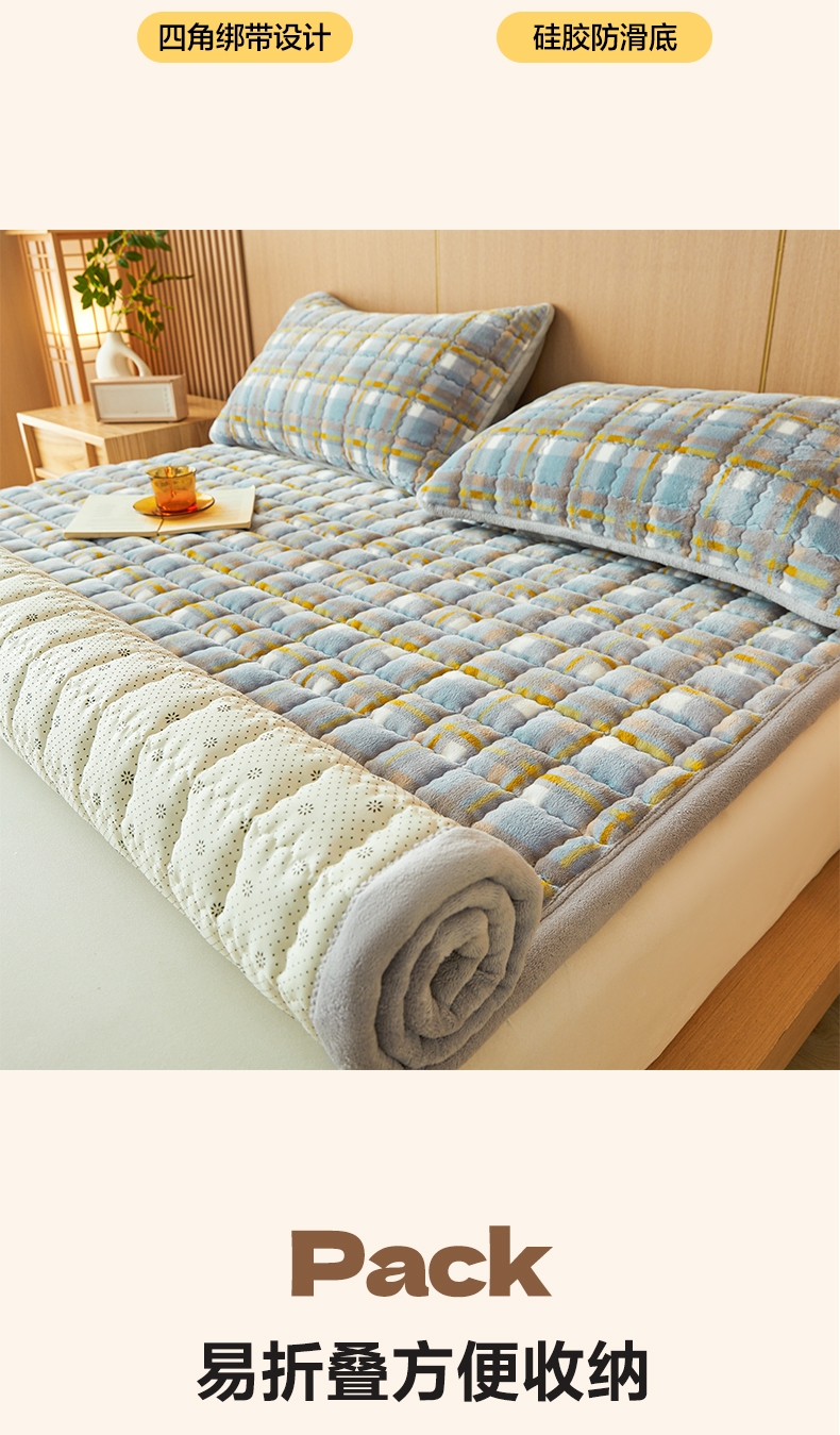 (总)澳梵家居 2025新款无印风牛奶绒夹棉床护垫