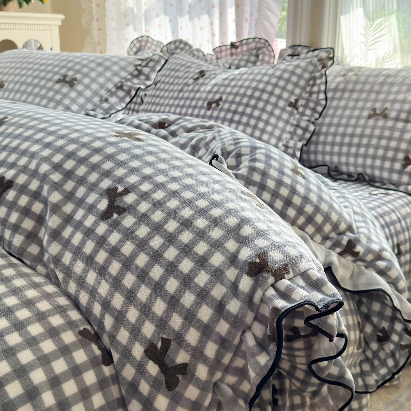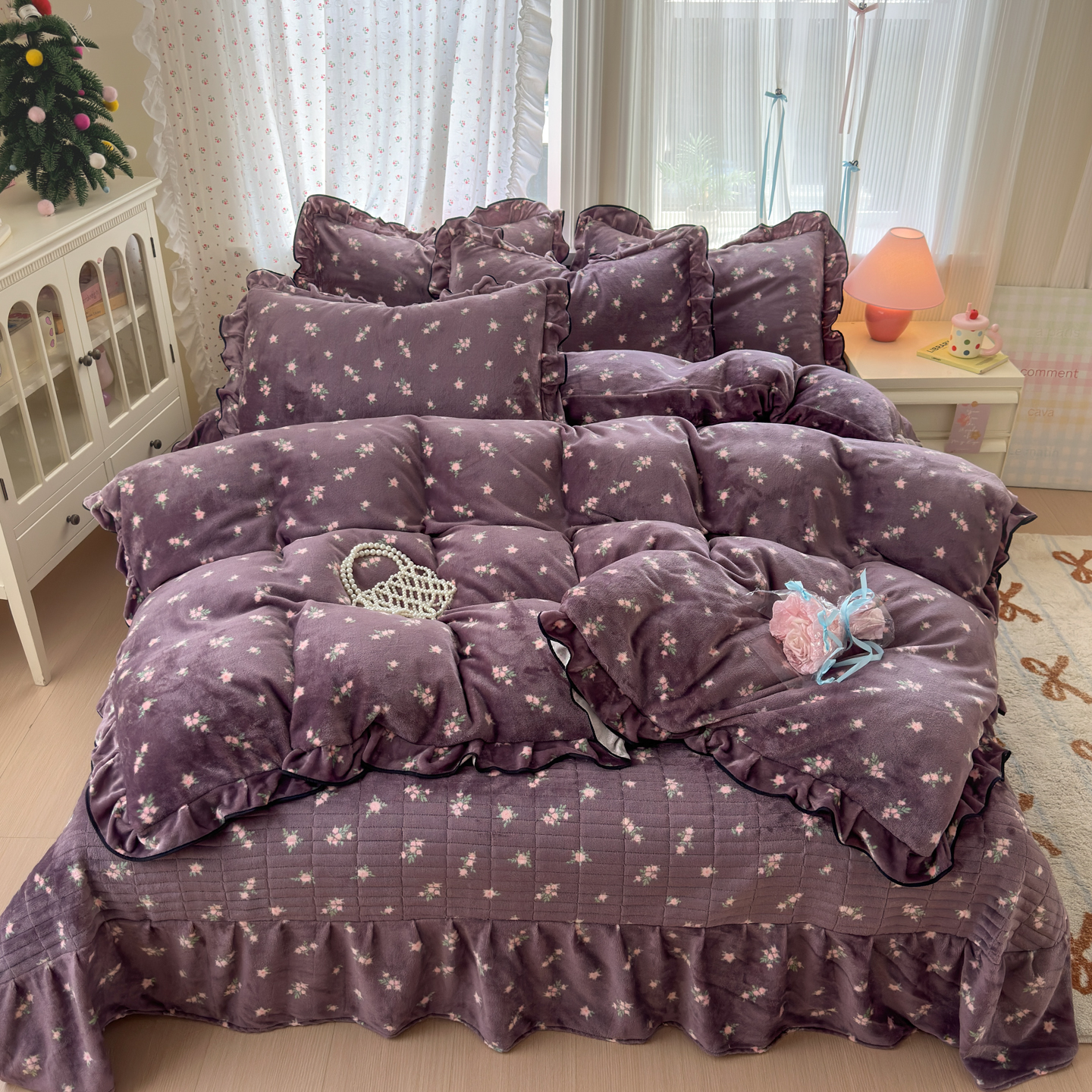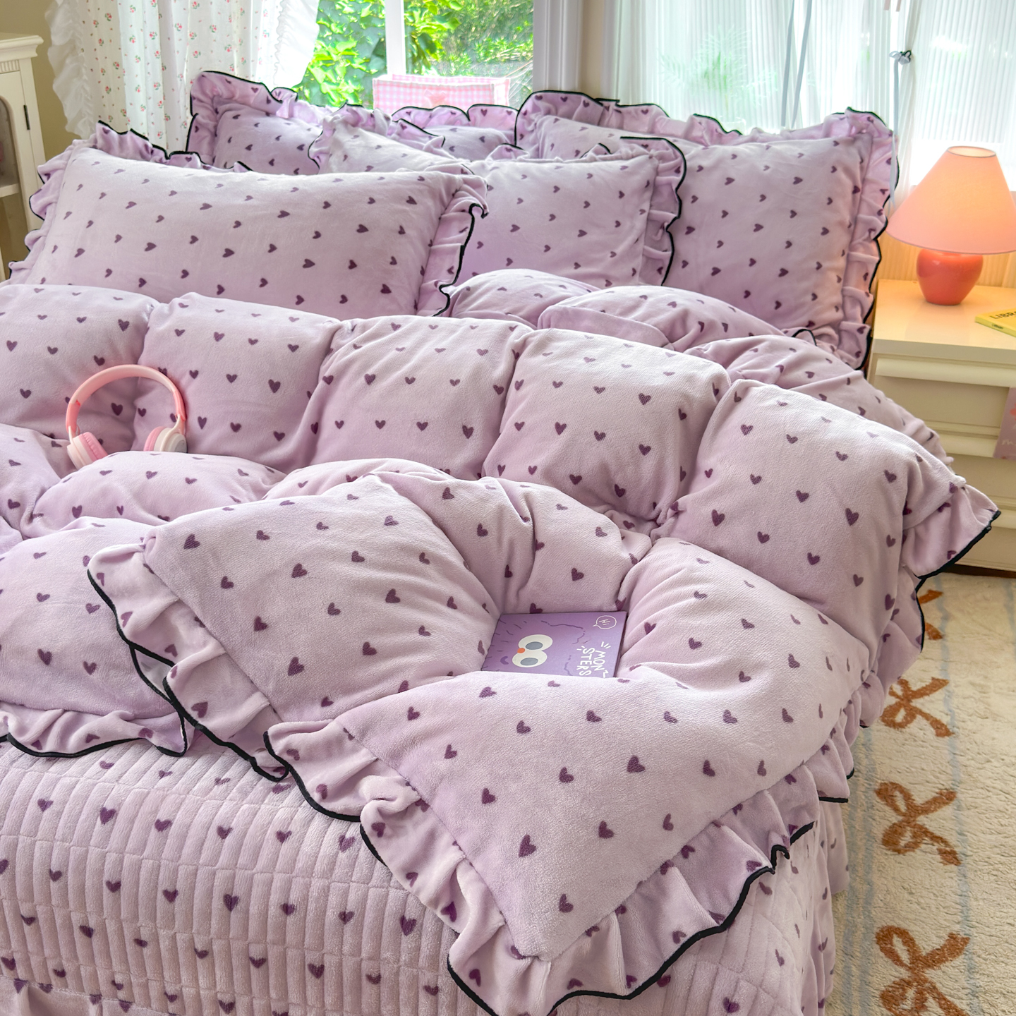 (总)德比尔斯 2025新款暗合印花牛奶绒四件套,爱心-紫,波点-紫,布朗尼,豆蔻-紫,粉格樱桃,蝴蝶结-灰,蝴蝶结-紫,七彩格,紫香草