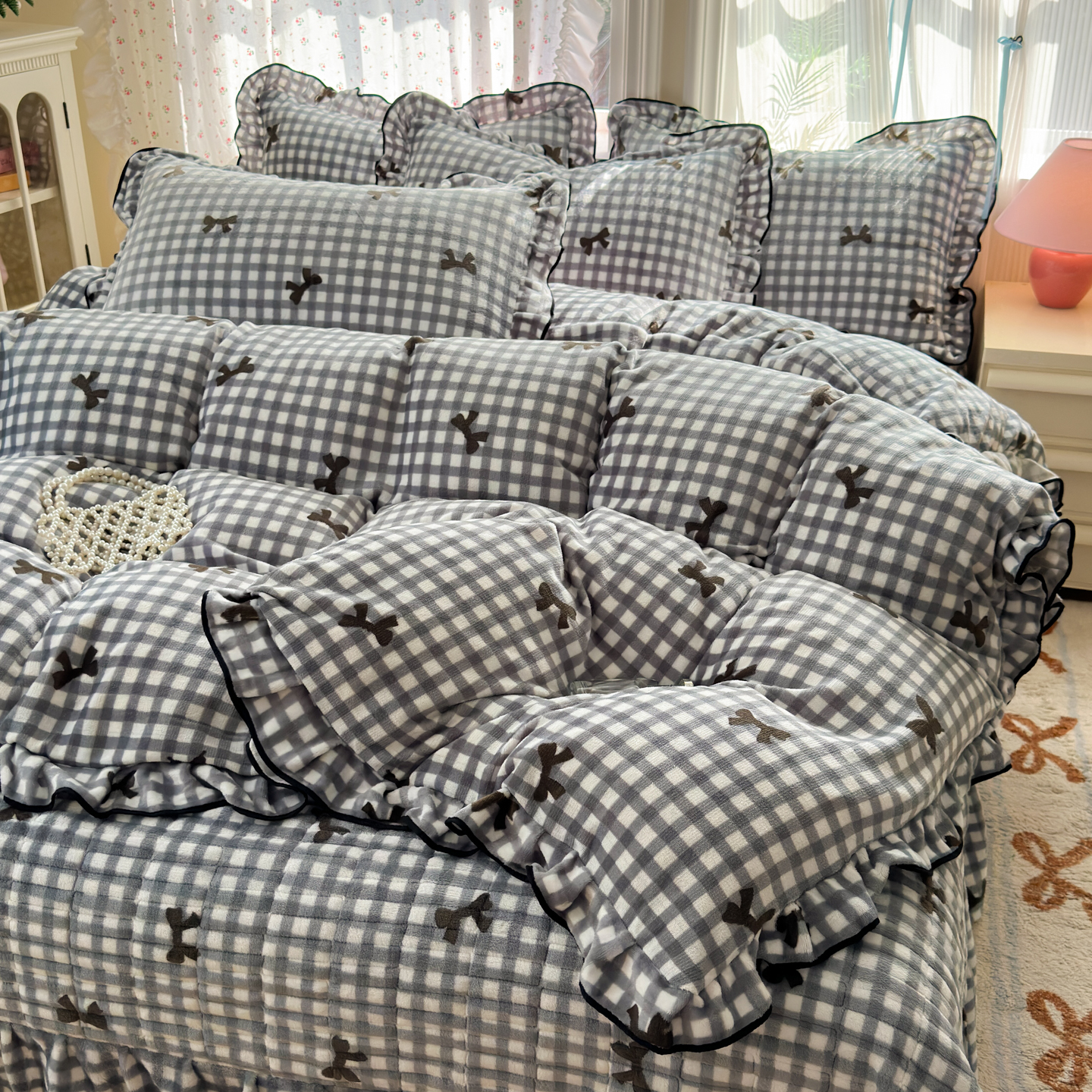 (总)德比尔斯 2025新款牛奶绒床裙四件套8-9斤法莱绒直播爆款日产2万套,蝶恋花,蝶语灰,粉色蝴蝶结,花语,紫蝴蝶,发财树,蓝大格,蓝条,爱心,奶牛灰,百福,豹纹-绿,灰大格,凯利,暖暖时光,蔷薇,双喜临门,小灰格,豆蔻,花妖,小恐龙