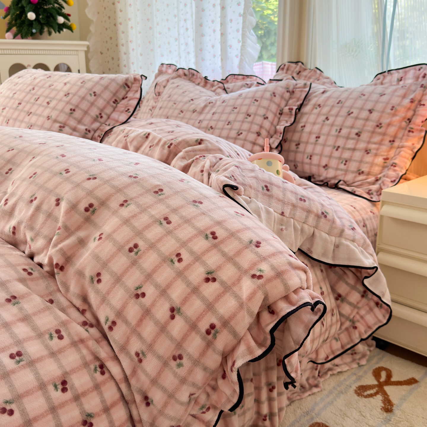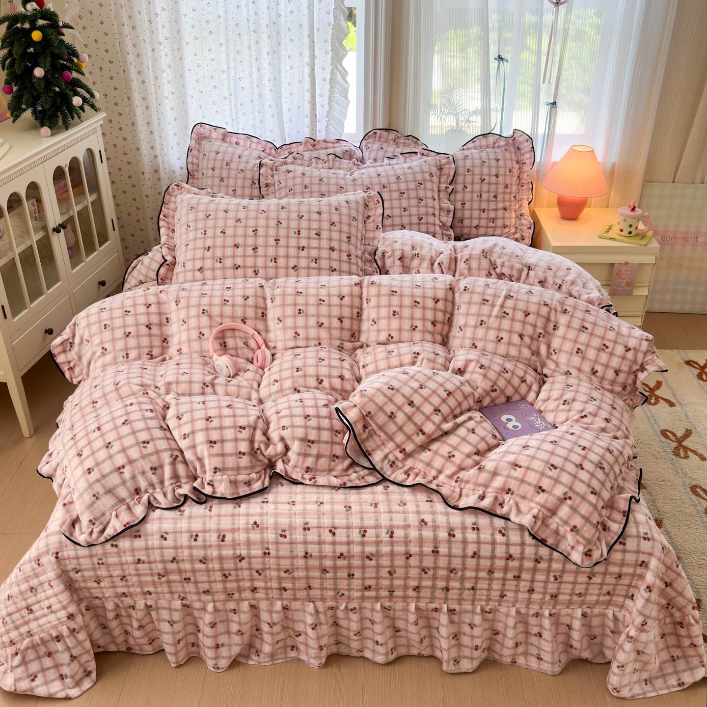 (总)德比尔斯 2025新款韩版白边黑边赫本风牛奶绒床盖四件套,爱心小熊,安妮粉,蝶恋花粉,法风小香,赫本-蝴蝶结粉,赫本-蝴蝶结咖,盛夏丛林,晕染花曳