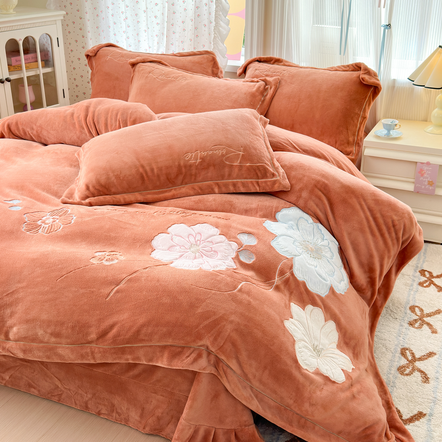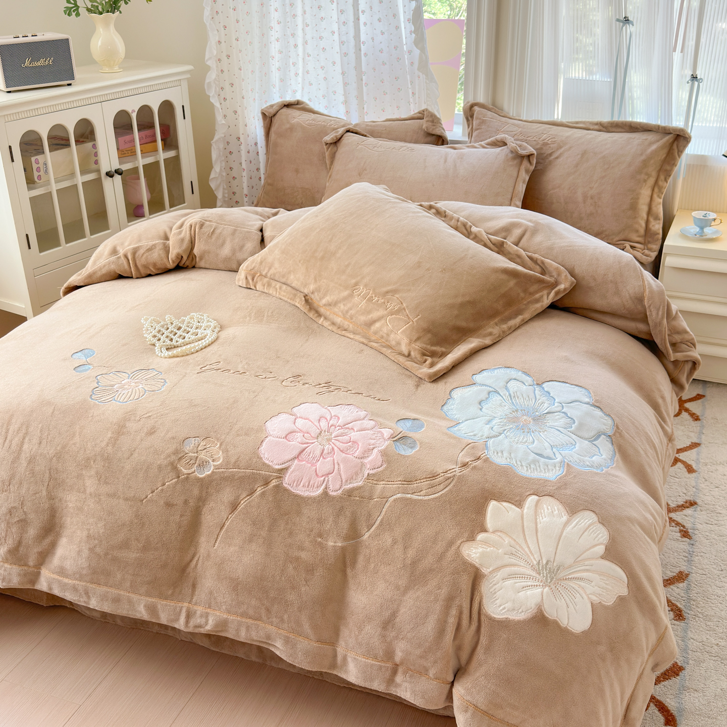 德比尔斯 2025新款刺绣牛奶绒四件套 梦境-卡其