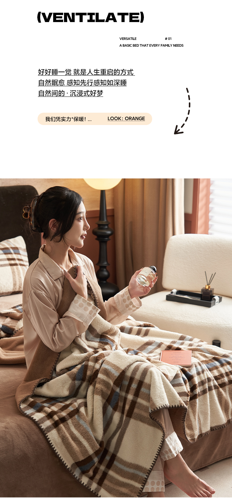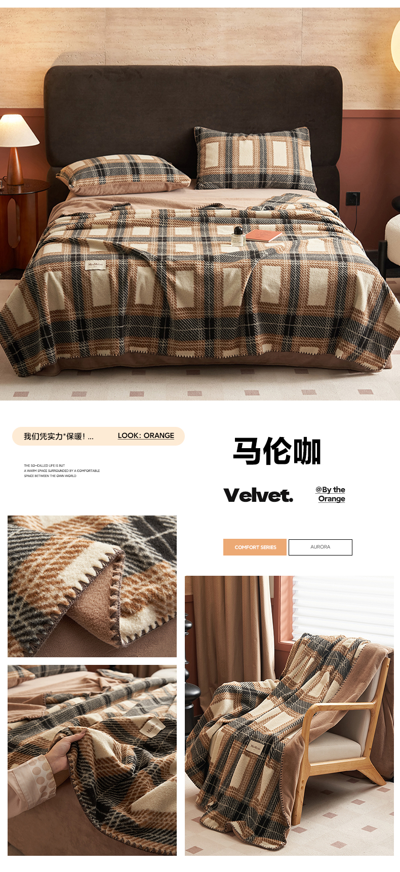 晨曦家纺 2025新款仿生羊毛绒毛毯沙发盖毯办公室午睡毯四季毯 马伦咖
