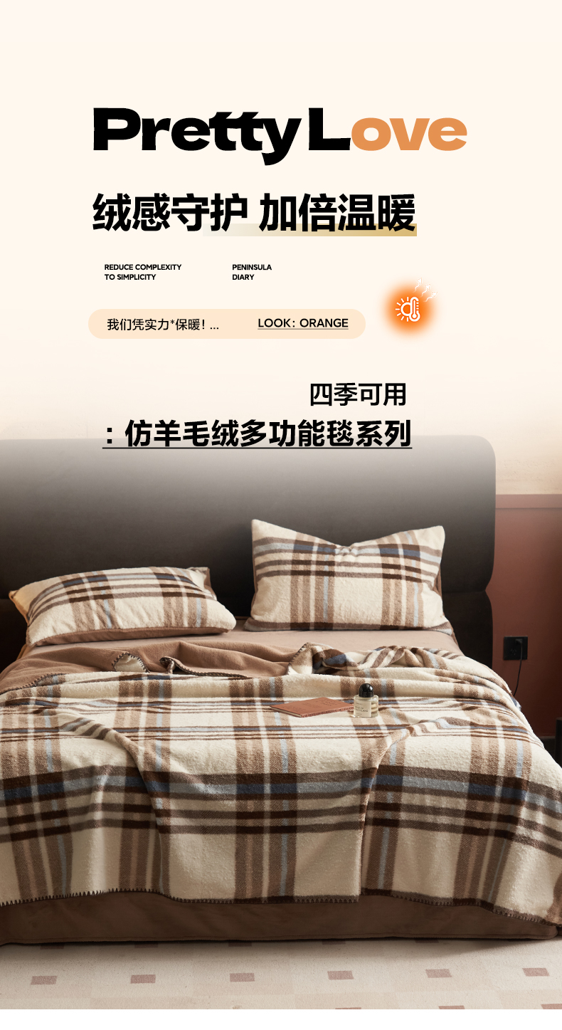商品名称:晨曦家纺 2025新款仿生羊毛绒毛毯沙发盖毯办公室午睡毯四季毯 马伦咖