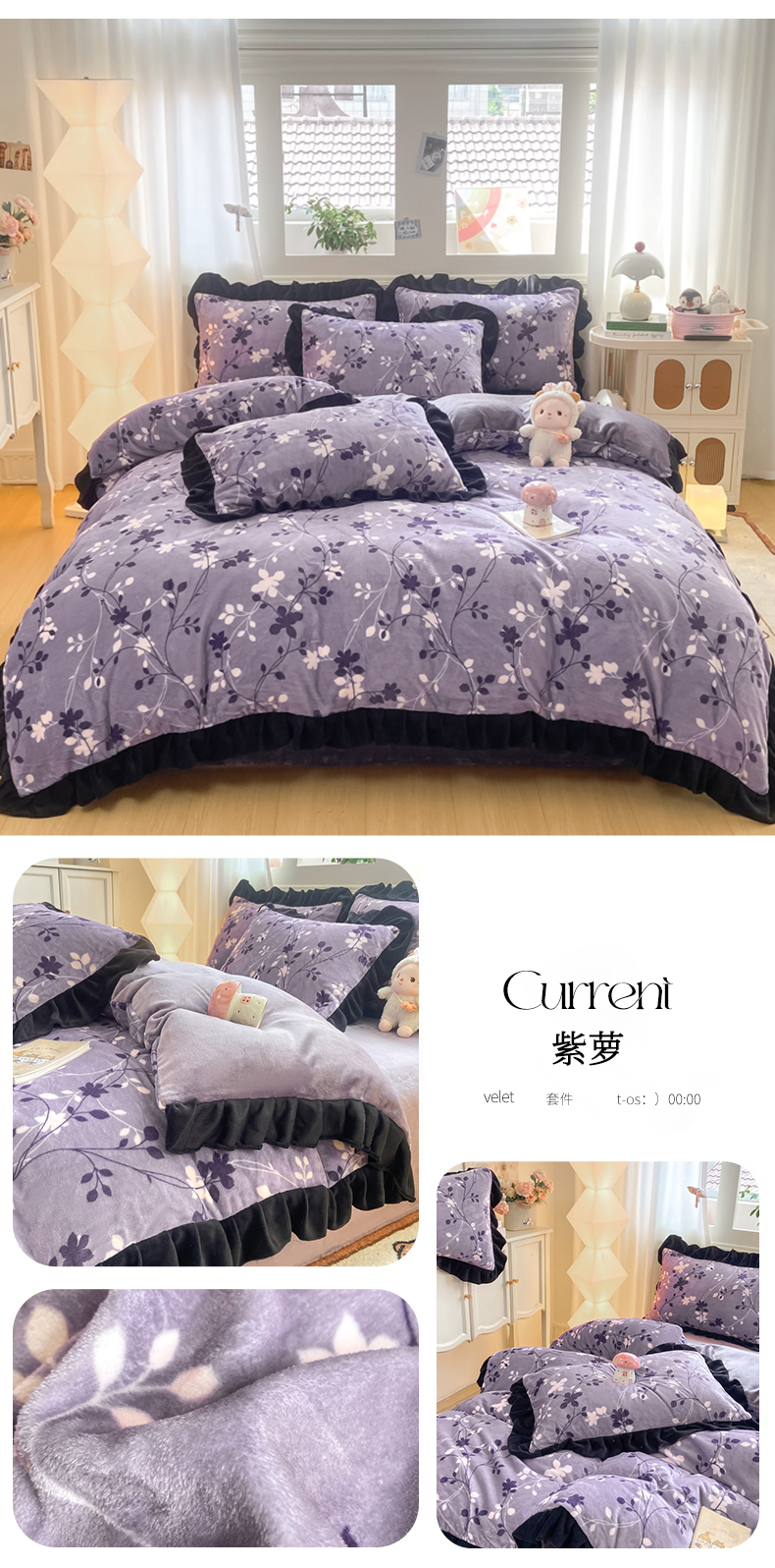 (总)富之航家纺 2025新款小香风赫本风ins风大牌韩版大花边轻奢牛奶绒四件套,蝶恋花,蝶栖,黑糖,楼桃,眠语,慕秋,叶叙,游园-白,游园-绿,紫萝