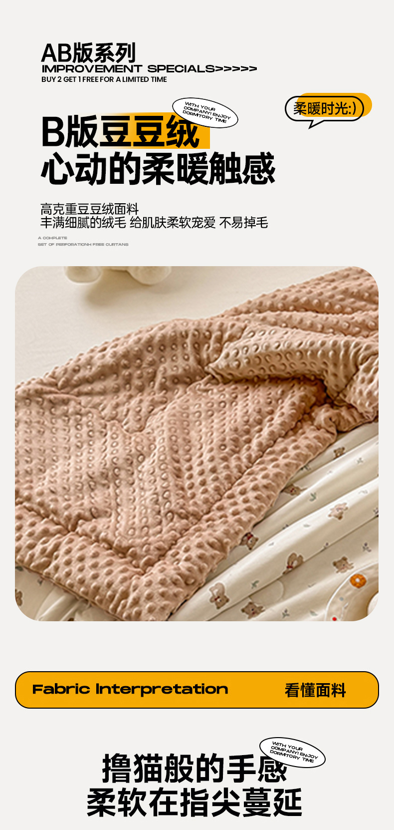 • 91家纺网 家纺一手货源 找家纺 梦依依 2025新款全棉豆豆绒大豆被冬被春秋被儿童豆豆被(风格一) 小呆熊