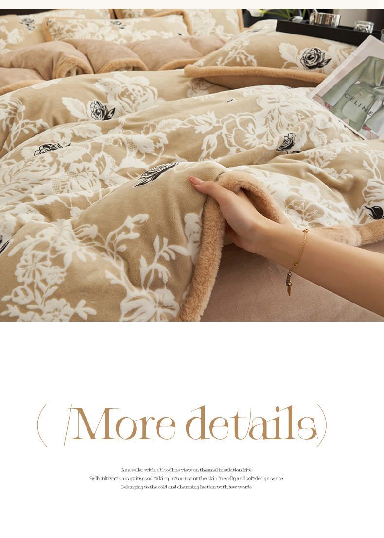 商品名称:金鹰 2025新款烂花兔毛包边四件套牛奶绒四件套提花套件 清晨玫瑰