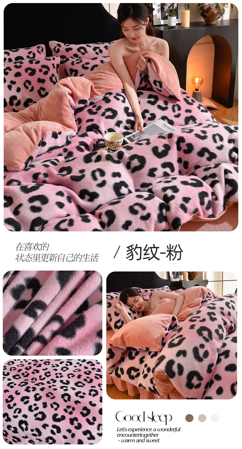 同田家纺 2025新款A类羊羊绒牛奶绒印花四件套 豹纹-咖