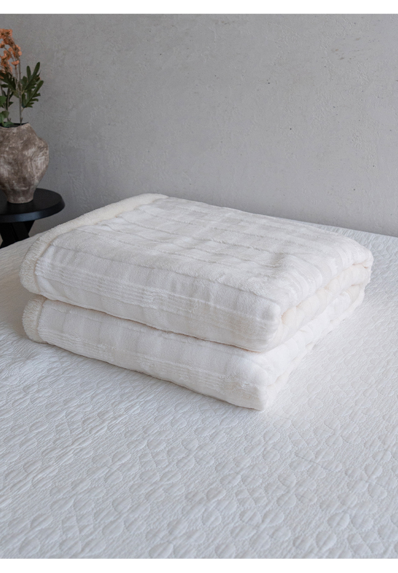 商品名称:宜派家纺 2025新款A类云朵绒玉兔绒单毛毯 象牙白