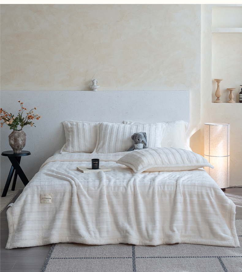 宜派家纺 2025新款A类云朵绒玉兔绒单毛毯 象牙白