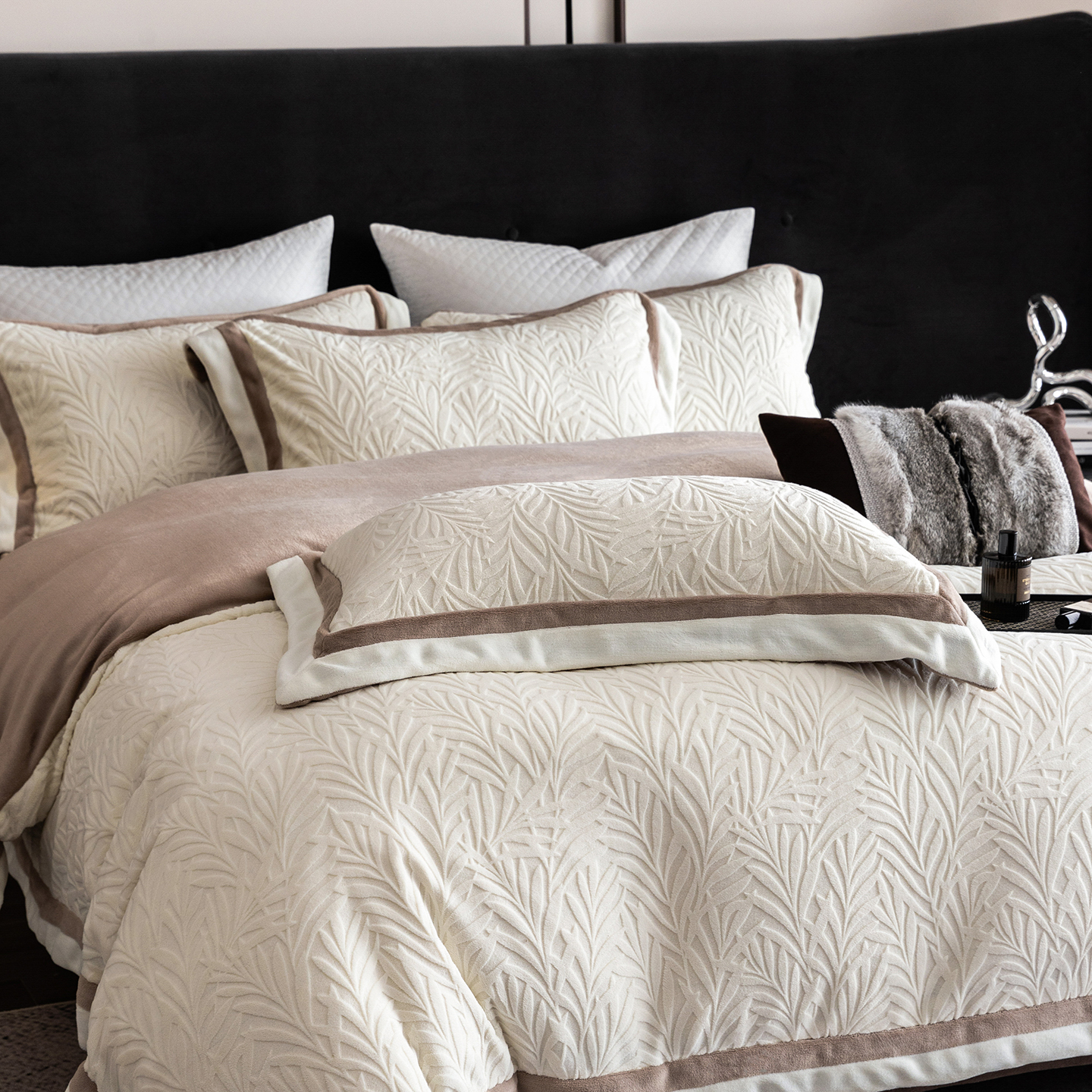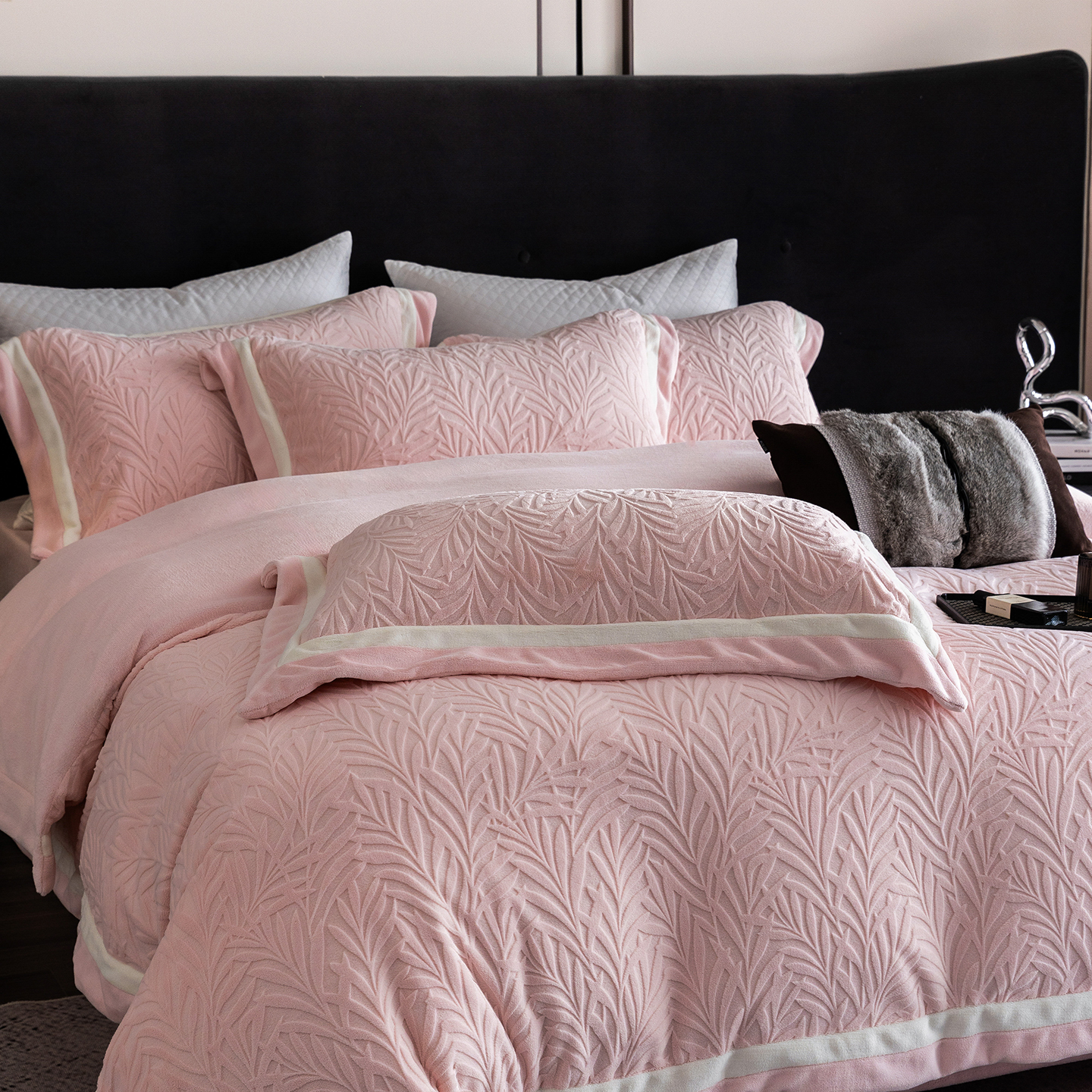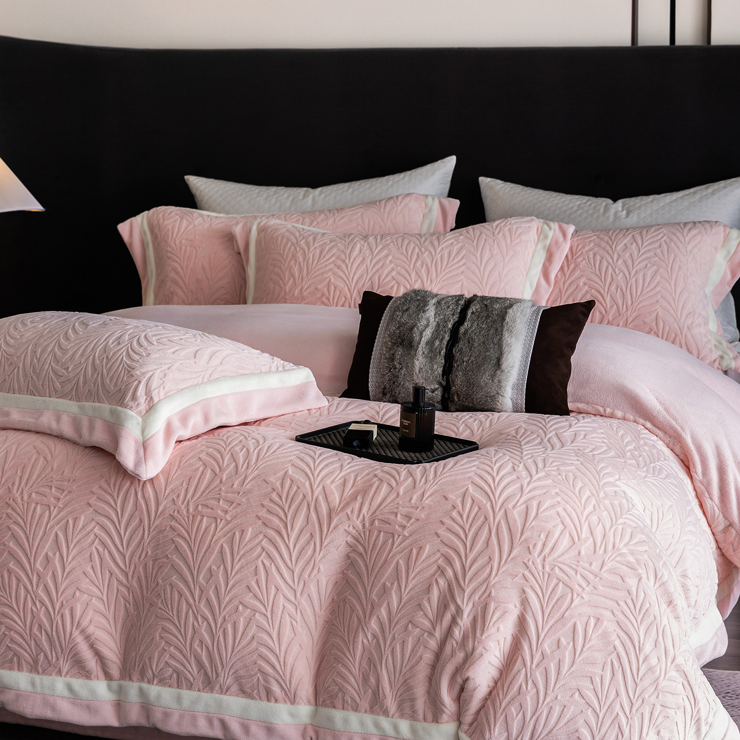 商品名称:蓝梦 2025新款亲肤舒适牛奶绒四件套-榈叶系列 榈叶-香芋紫