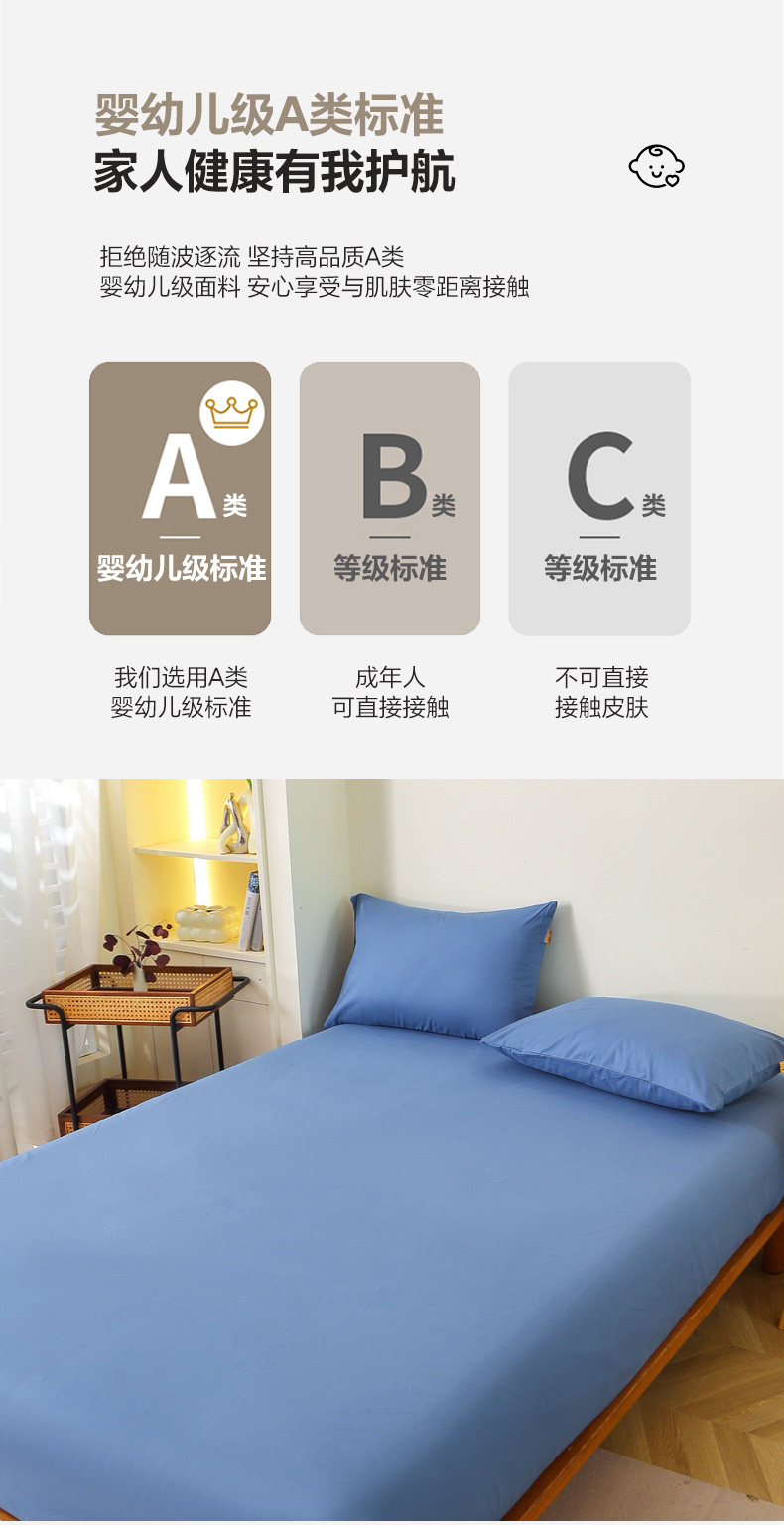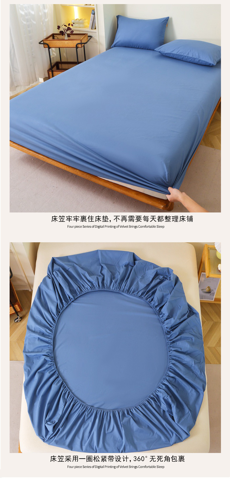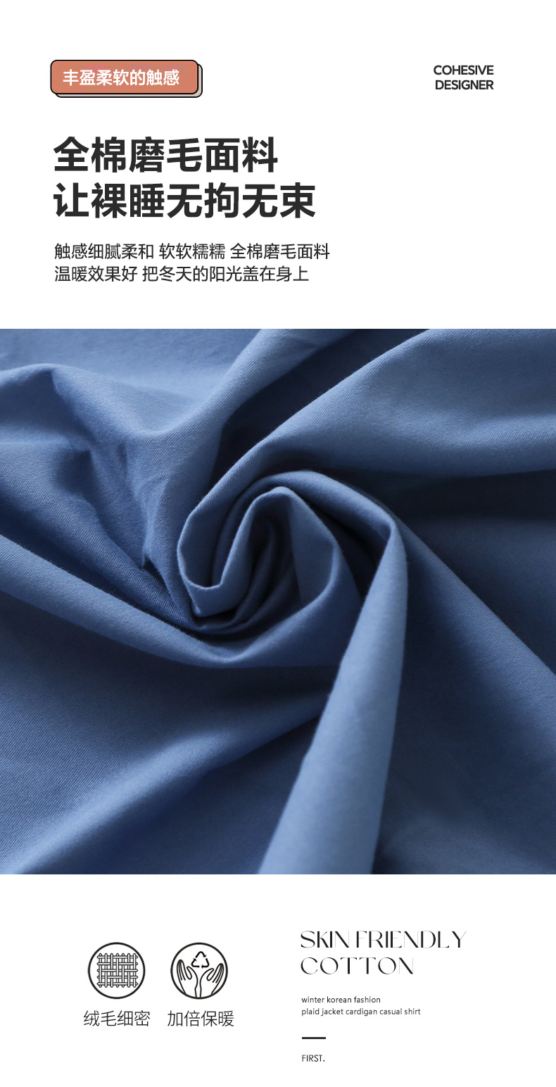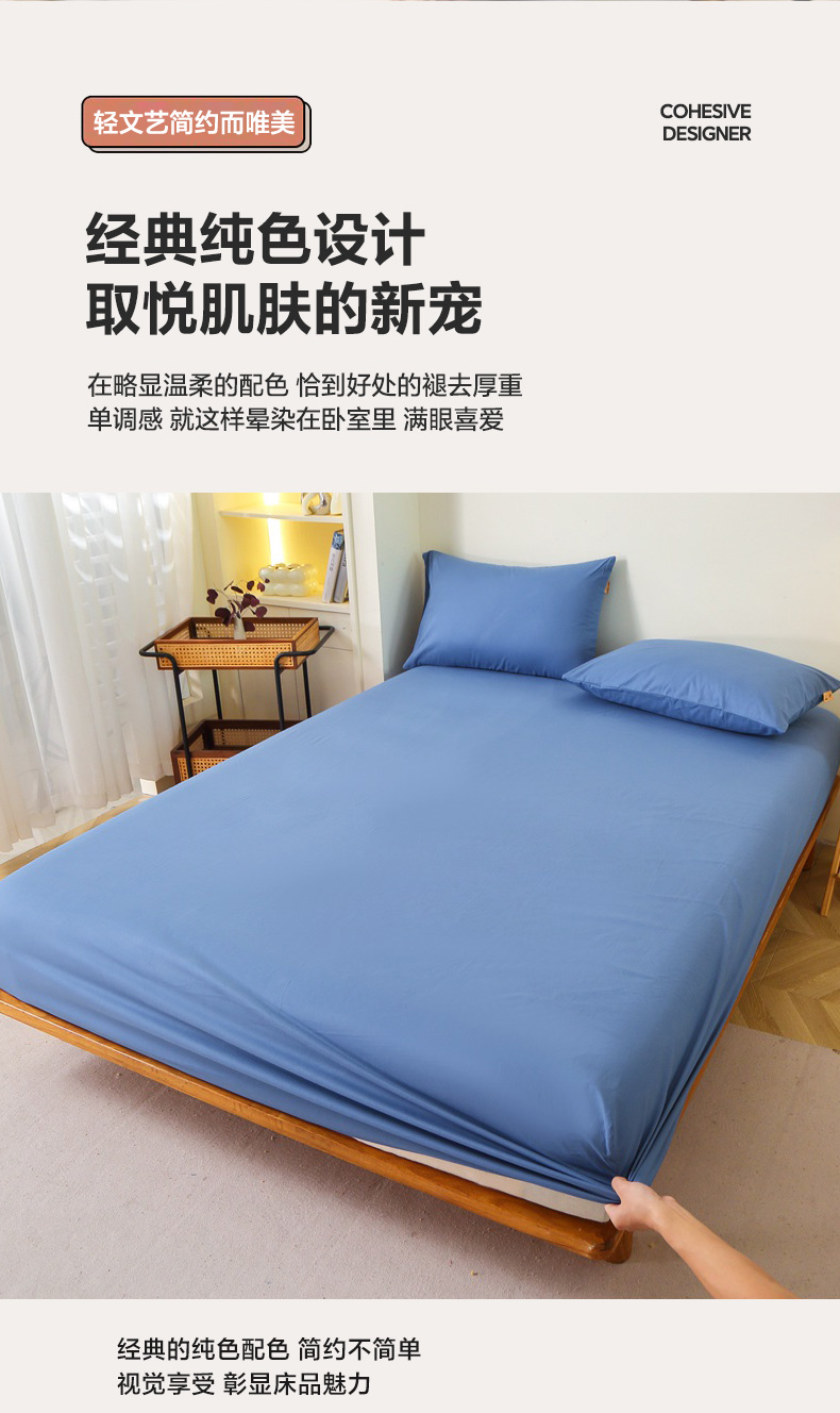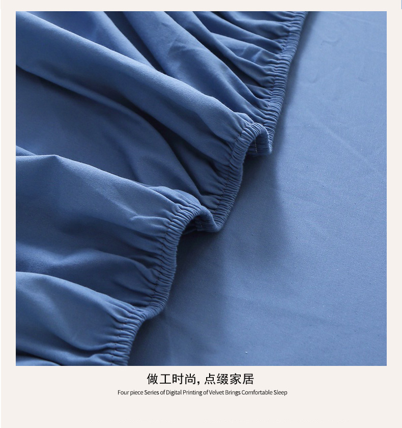 • 91家纺网 家纺一手货源 找家纺 晶缦 2025新款100%纯棉13376纯色喷气全棉磨毛单床笠 暖芸馨-靛青蓝
