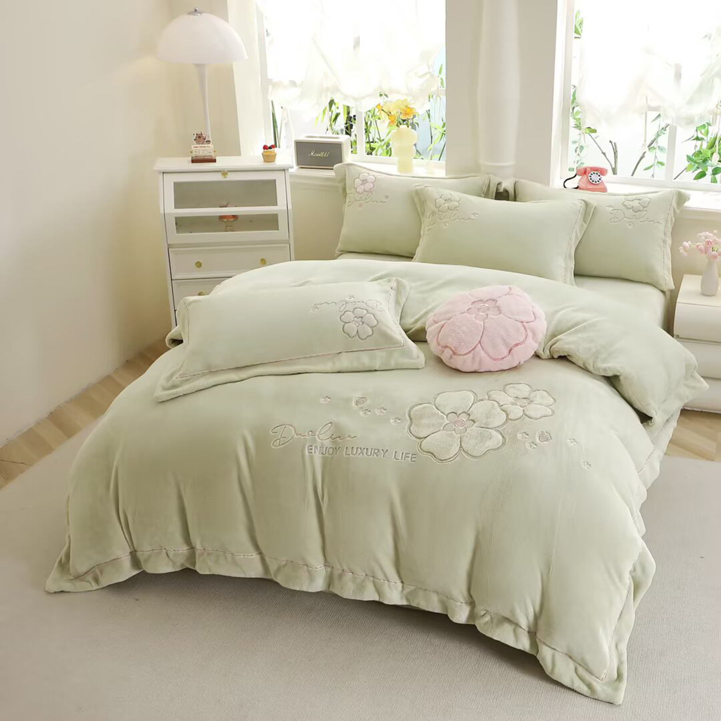 (总)棉生活家纺 2025新款高奢工艺260克A类牛奶绒兔毛贴布绣四件套-秀妍,秀妍-粉玉,秀妍-浪漫紫,秀妍-牛奶咖,秀妍-青草绿,秀妍-天空兰,秀妍-樱花粉