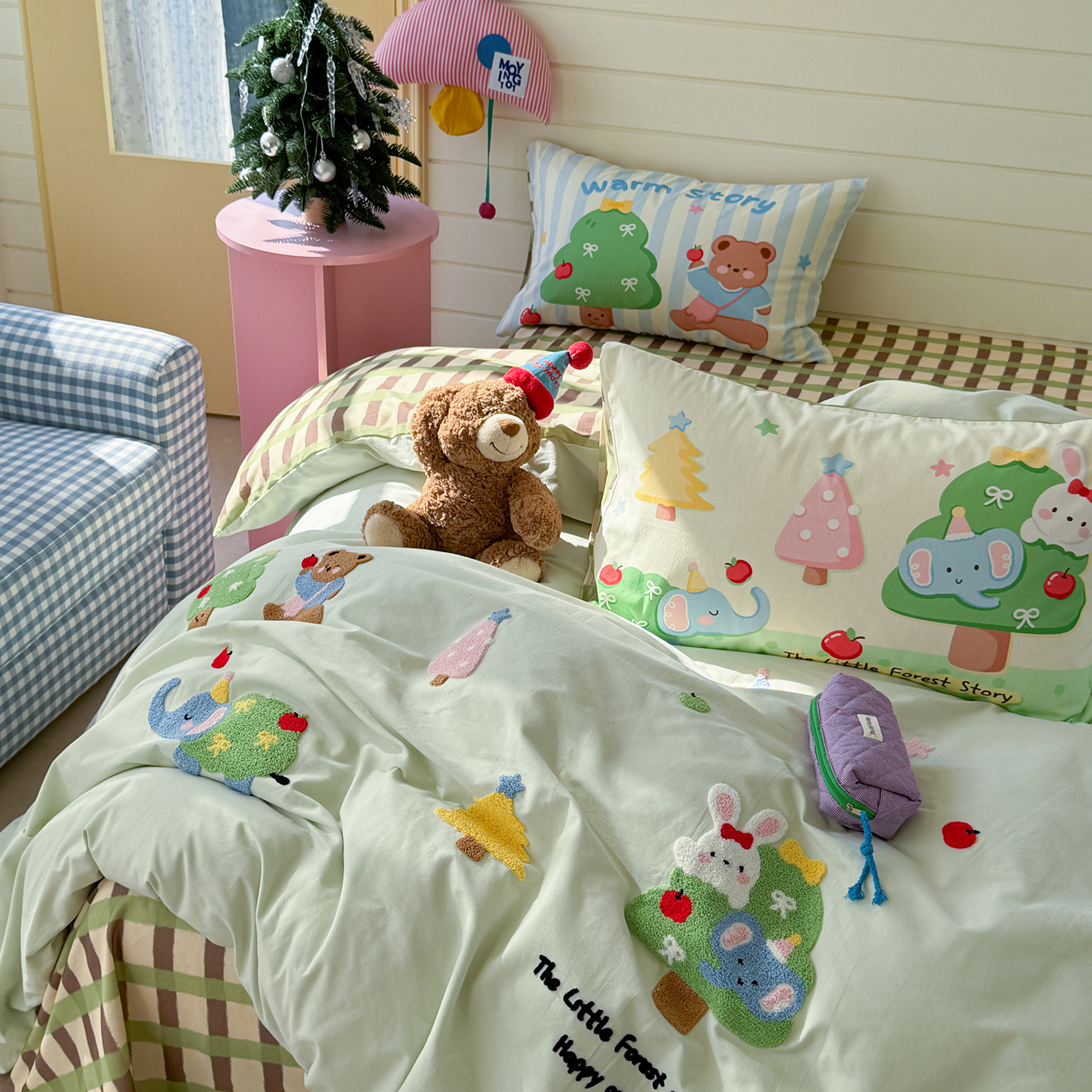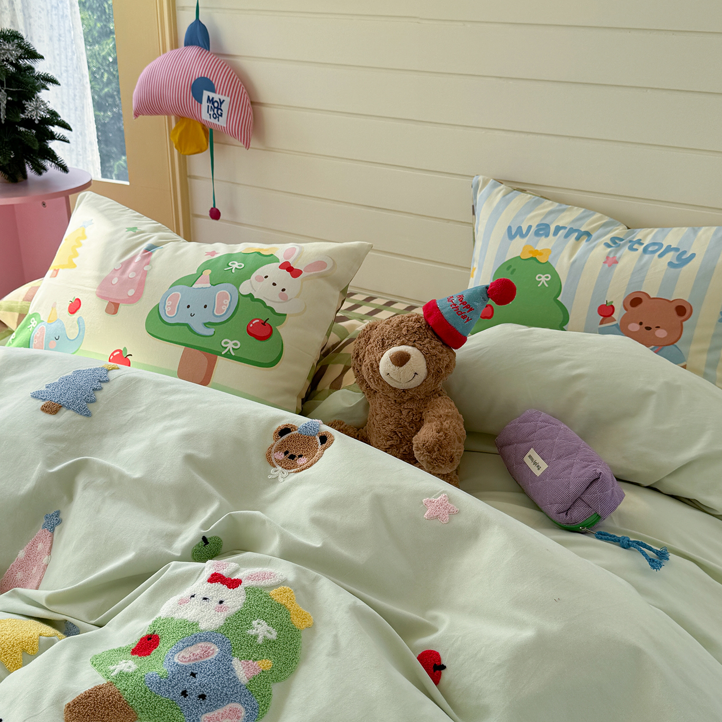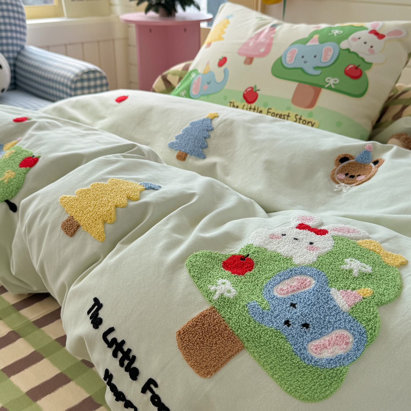 (总)柚子YOUTH 2025新款全棉纯棉工艺款13070贴布绣四件套,爱心小象,毛绒小狗,蘑菇女孩,星星法师