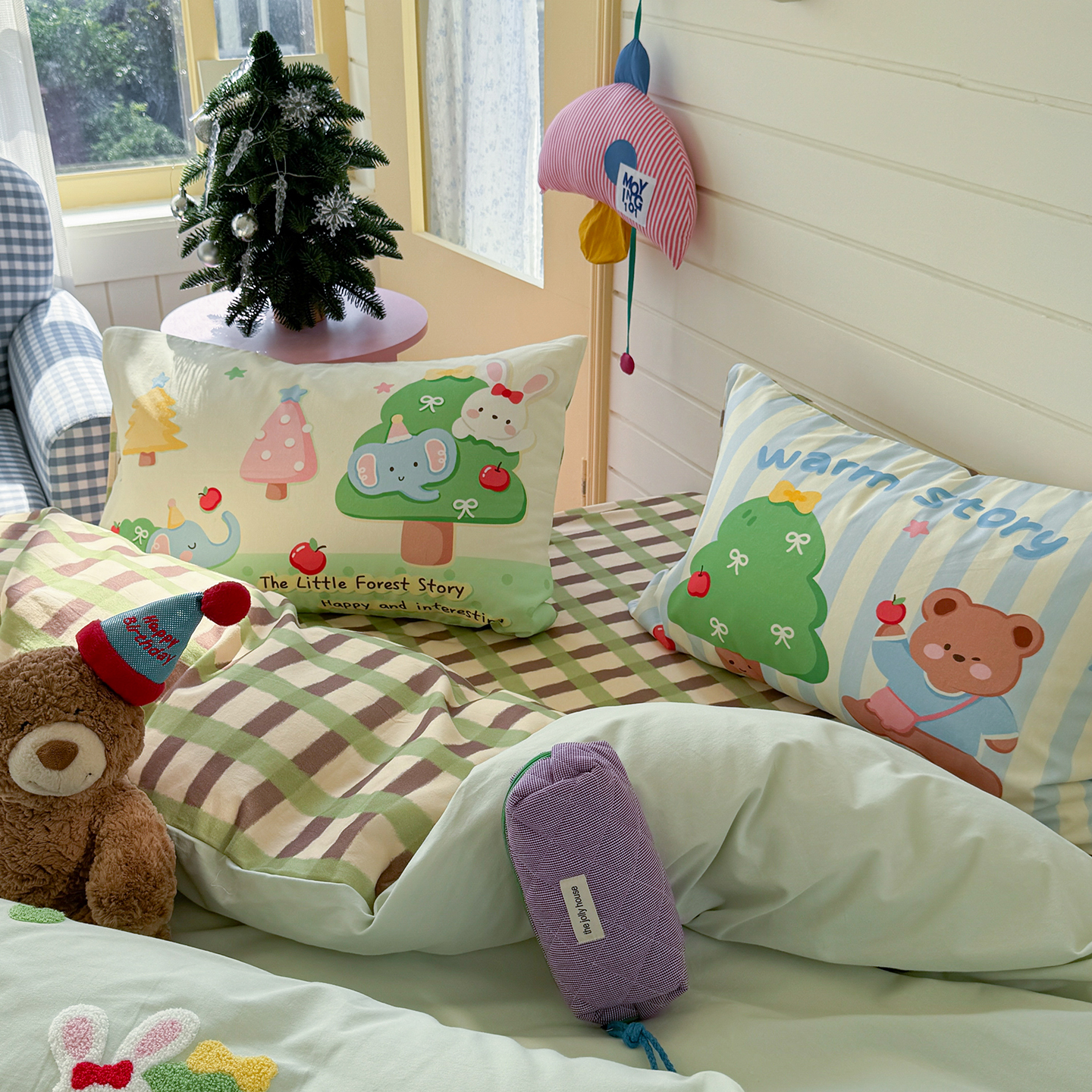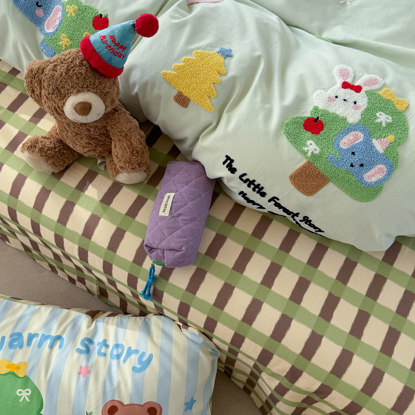 (总)柚子YOUTH 2025新款双面泰迪绒毛巾绣四件套,甜甜圈,快乐企鹅,森林聚会,甜酷KT,小茄子,雪人王国