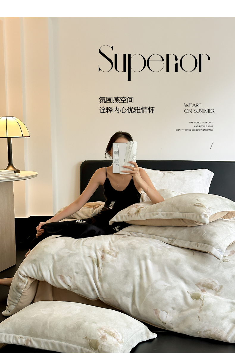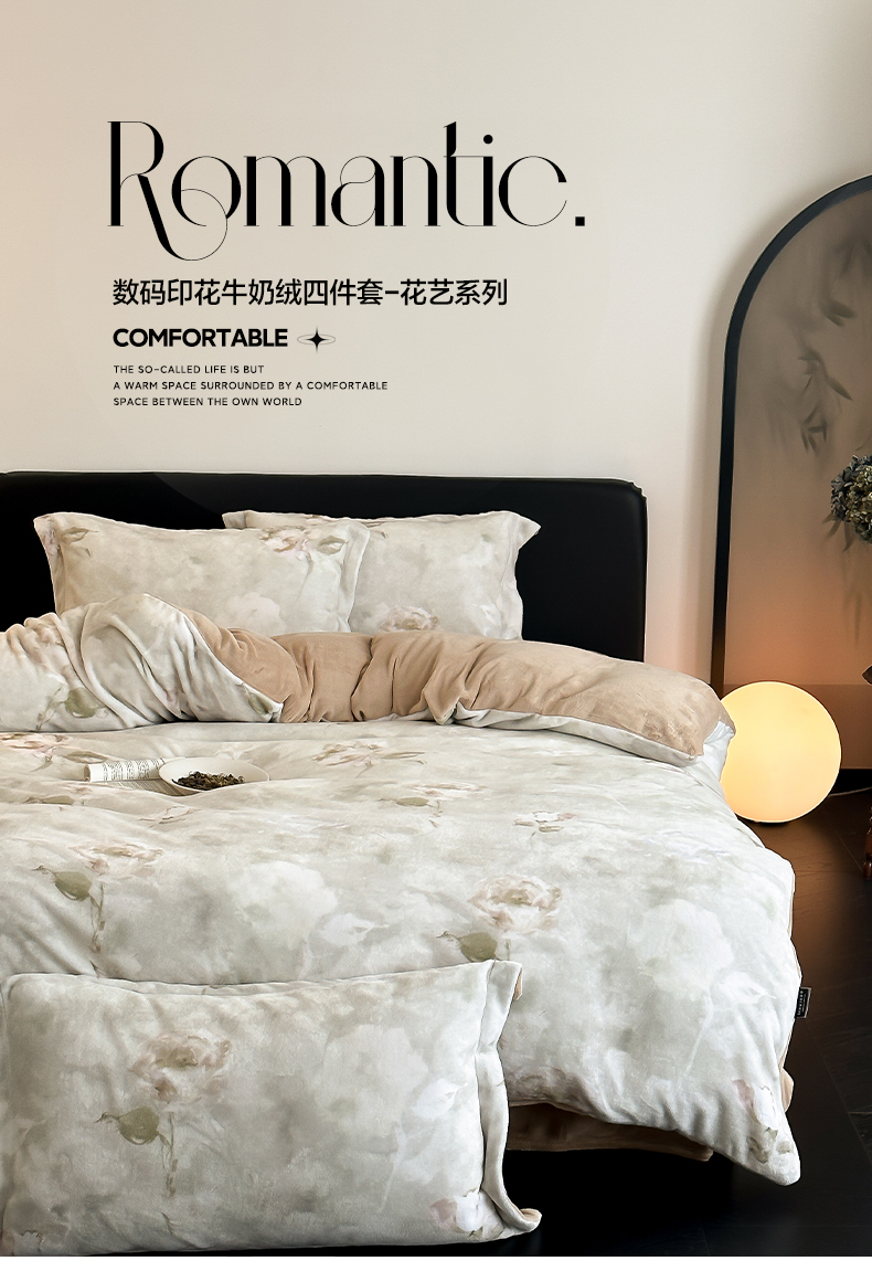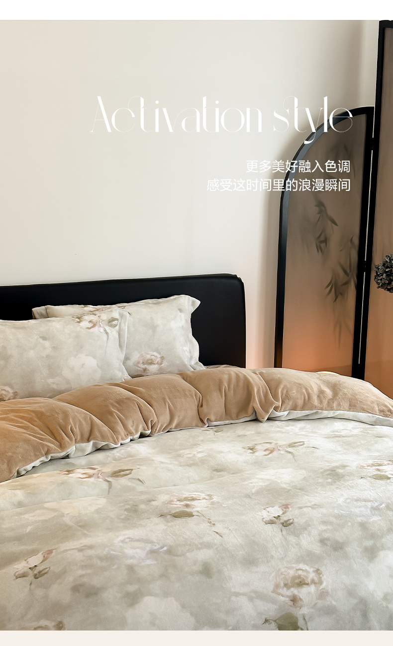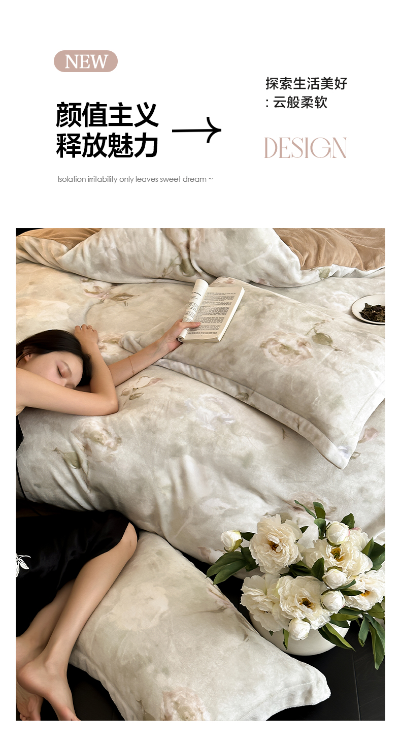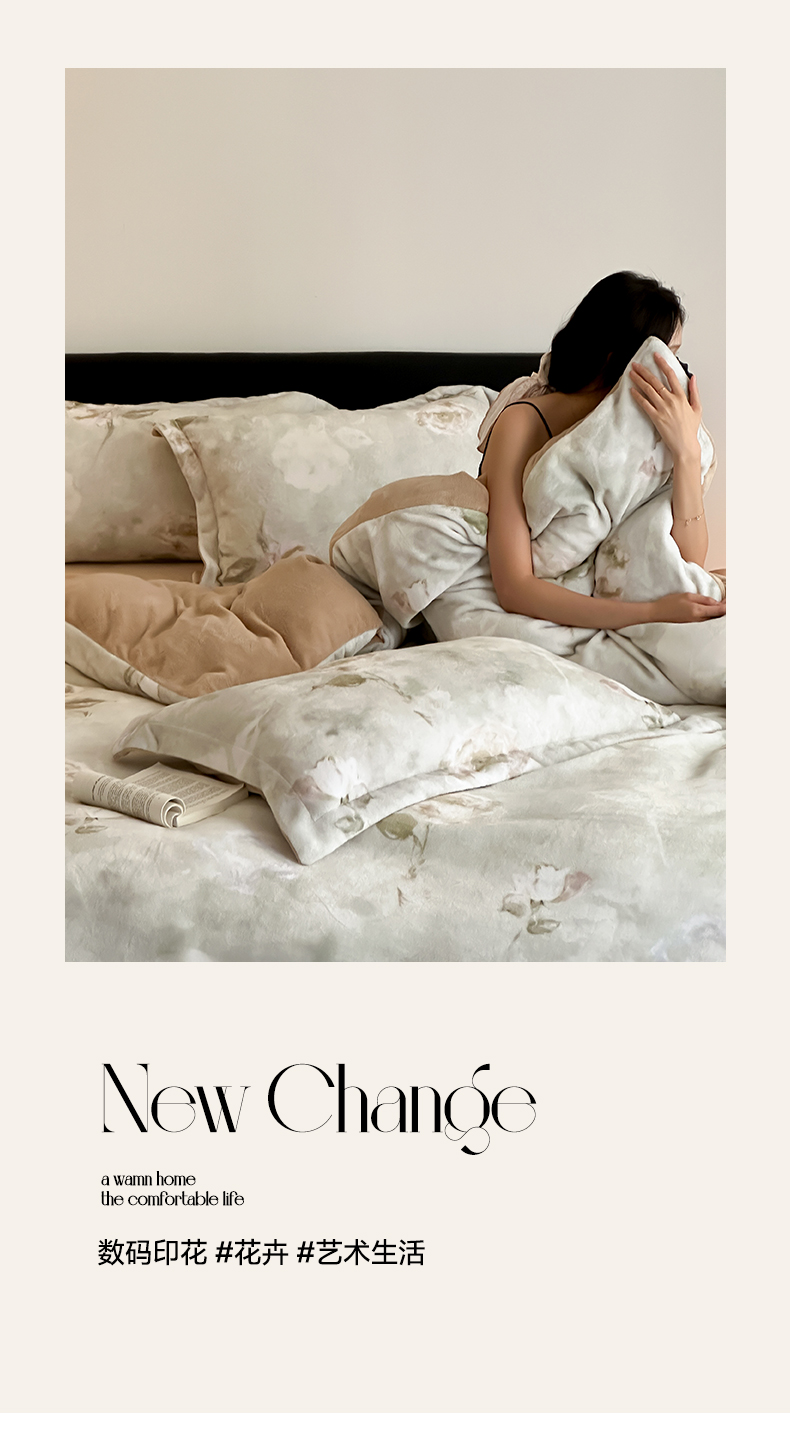 三味舒屋 2025新款奢暖数码印花牛奶绒四件套-模特图 南烟