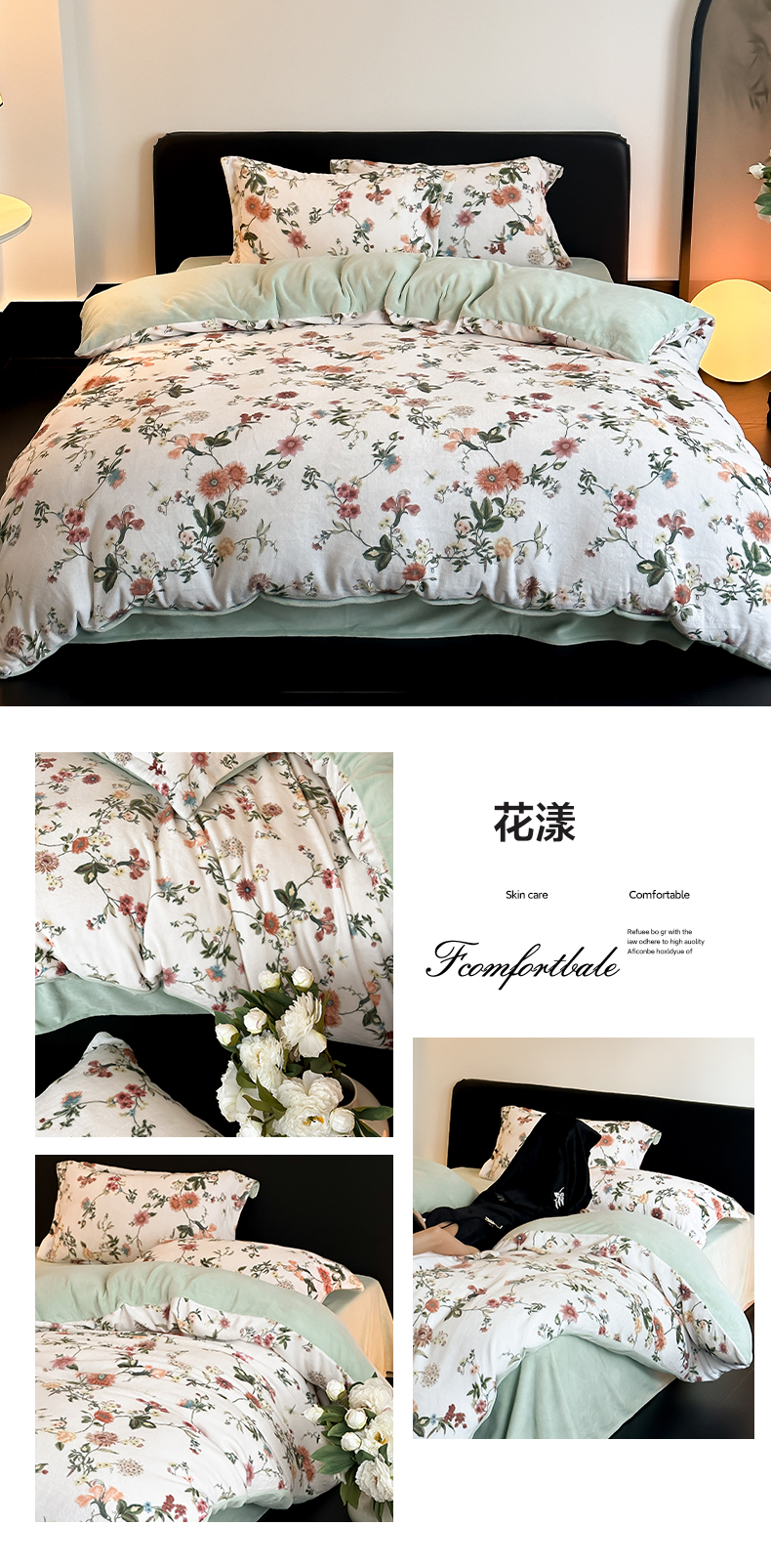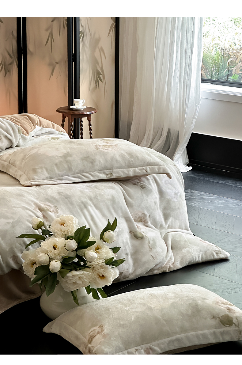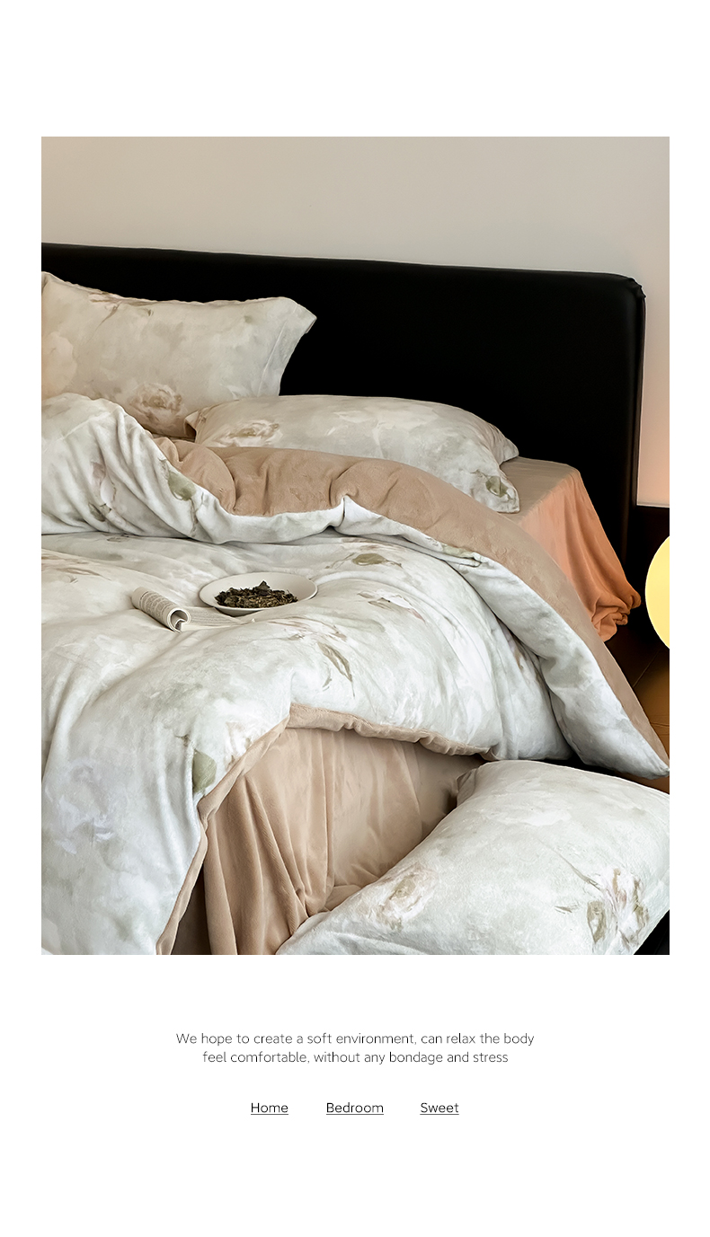 商品名称:三味舒屋 2025新款奢暖数码印花牛奶绒四件套-模特图 南烟