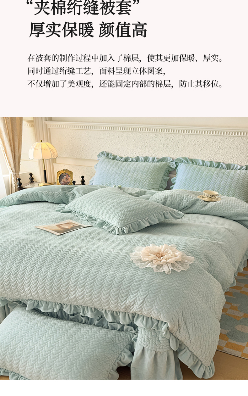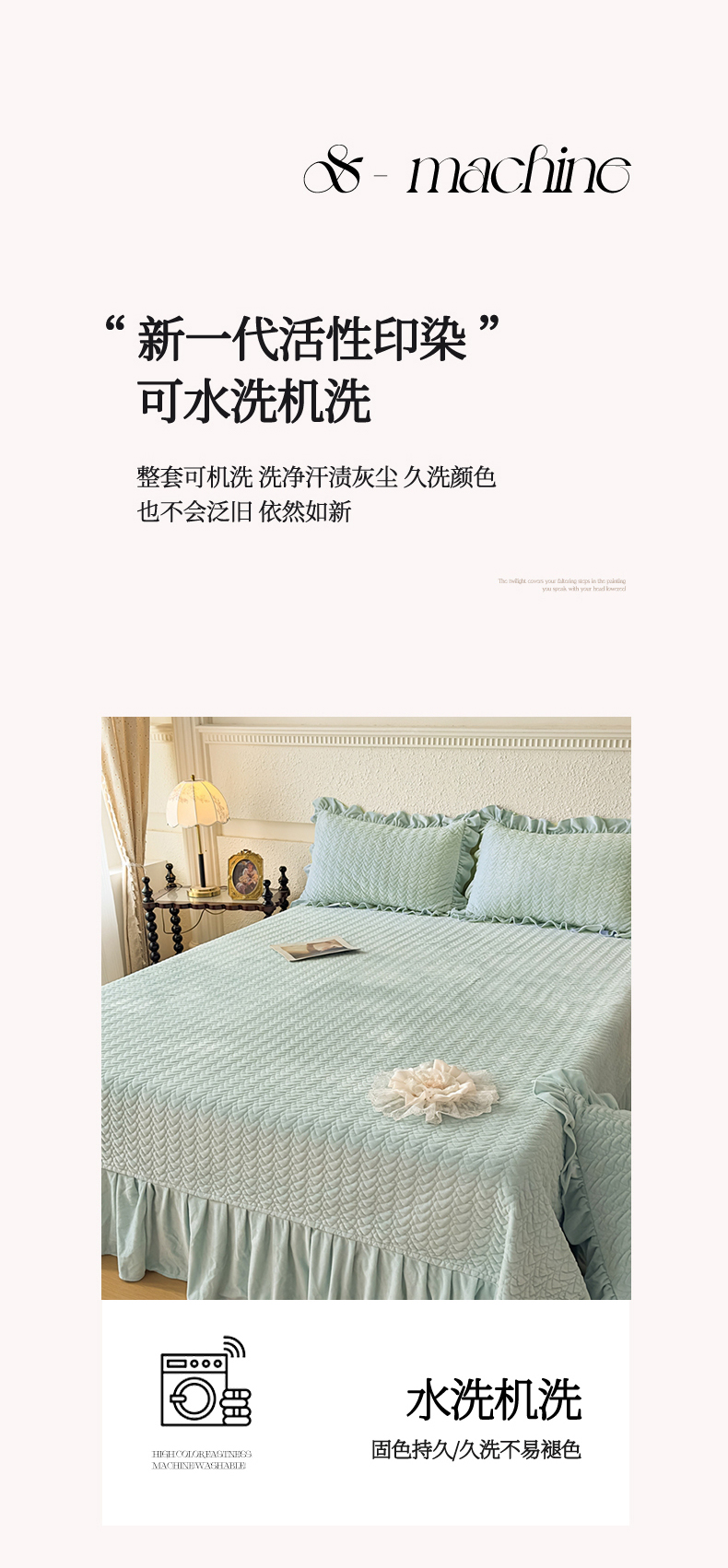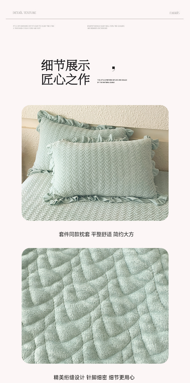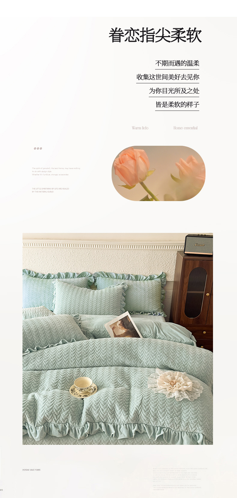 商品名称:乐嘉盈2025年新款纯色刺绣床裙款牛奶绒四件套-云栖 云栖-绿