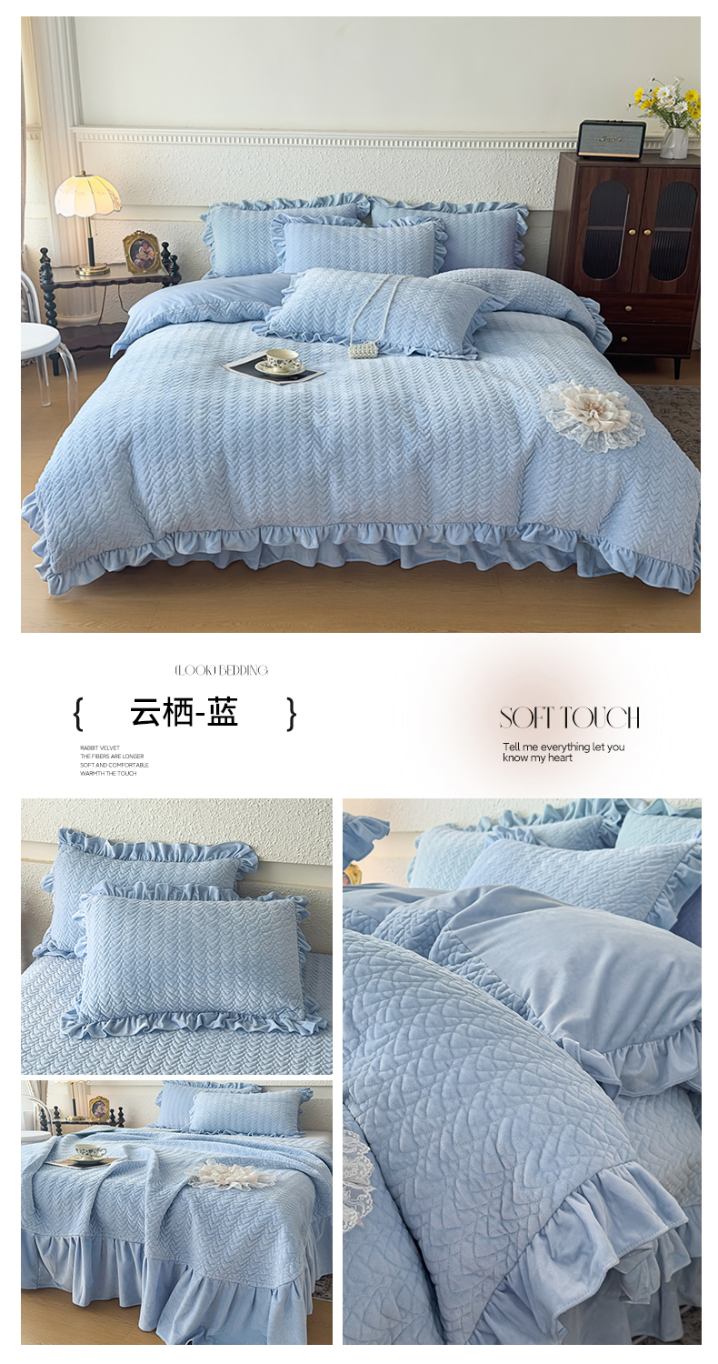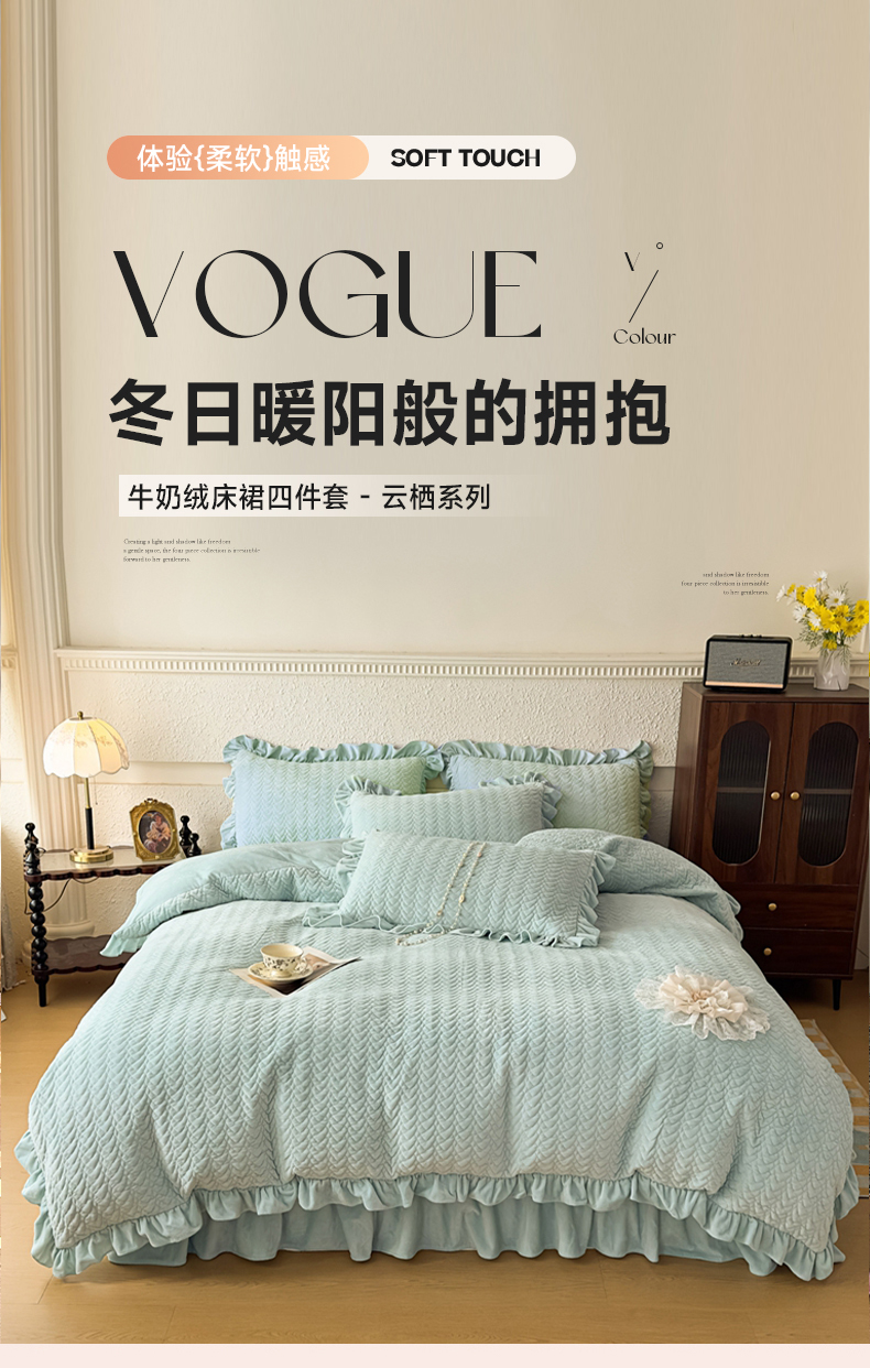 (总)乐嘉盈2025年新款纯色刺绣床裙款牛奶绒四件套-云栖,云栖-豆沙,云栖-粉,云栖-蓝,云栖-绿,云栖-米白,云栖-紫