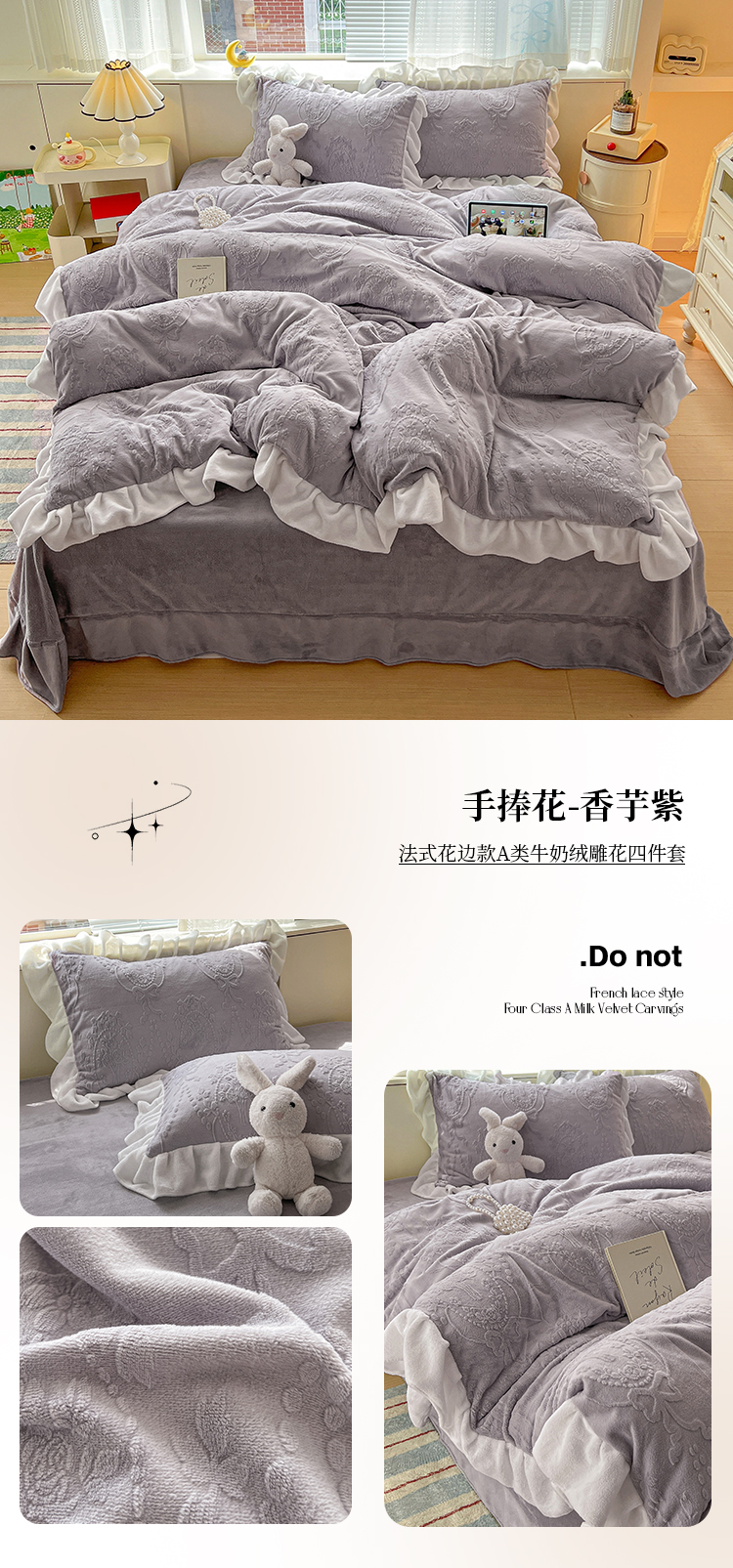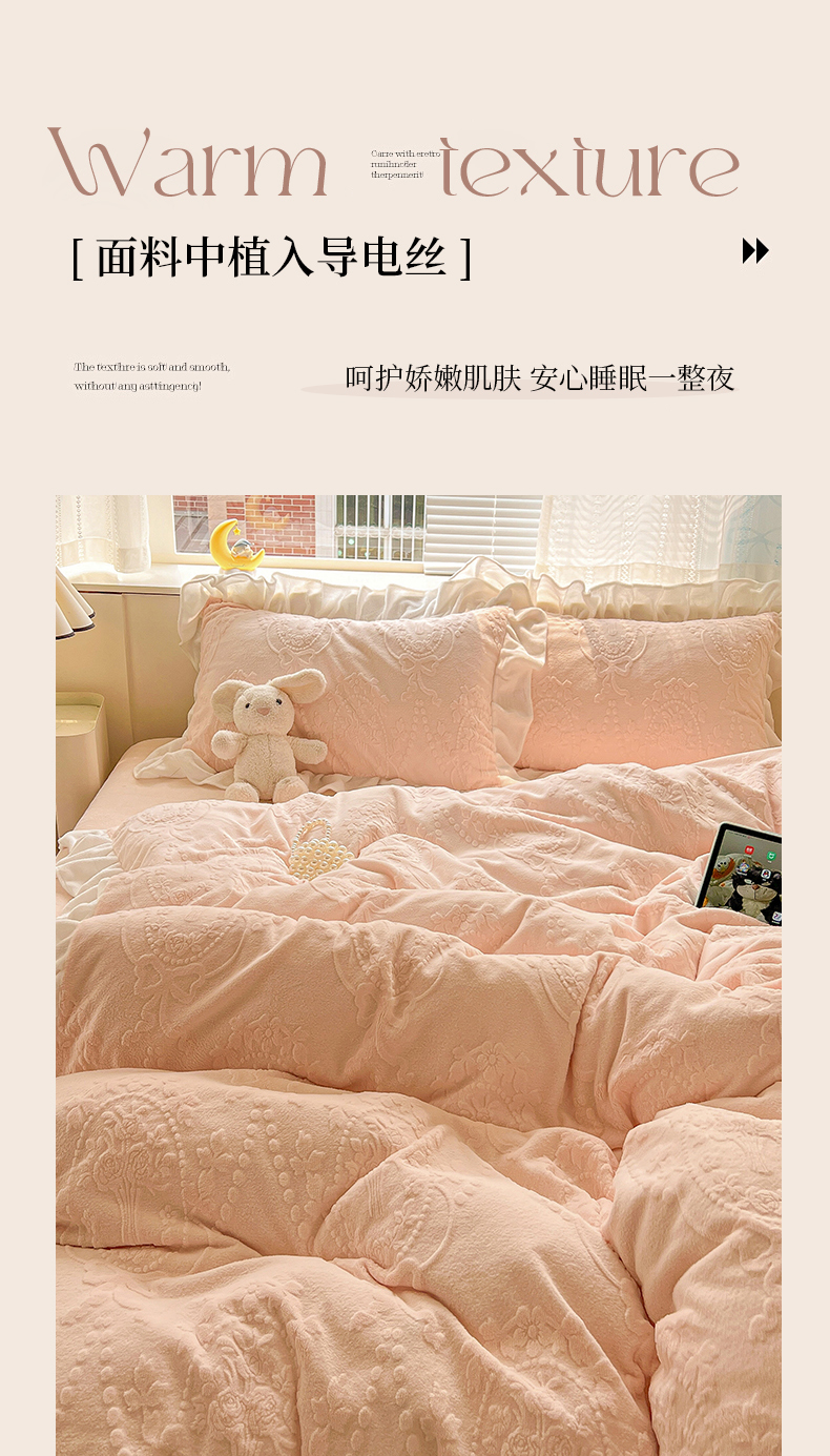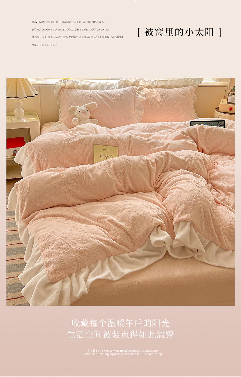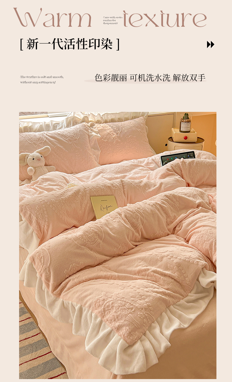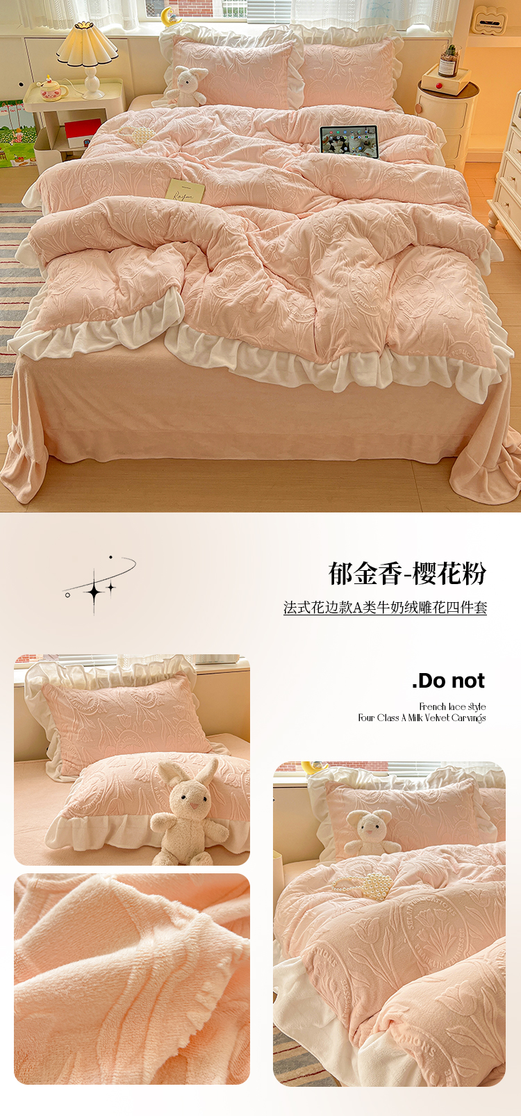 当前位置: 91家纺网 > 商品网购 > 床品套件 > 四件套 > 牛奶绒四件套 > 亿梵家居 2025新款法式花边款A类5D牛奶绒立体雕花四件套(提供买家秀) 花边款 手捧花-樱花粉