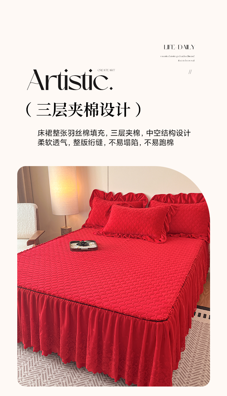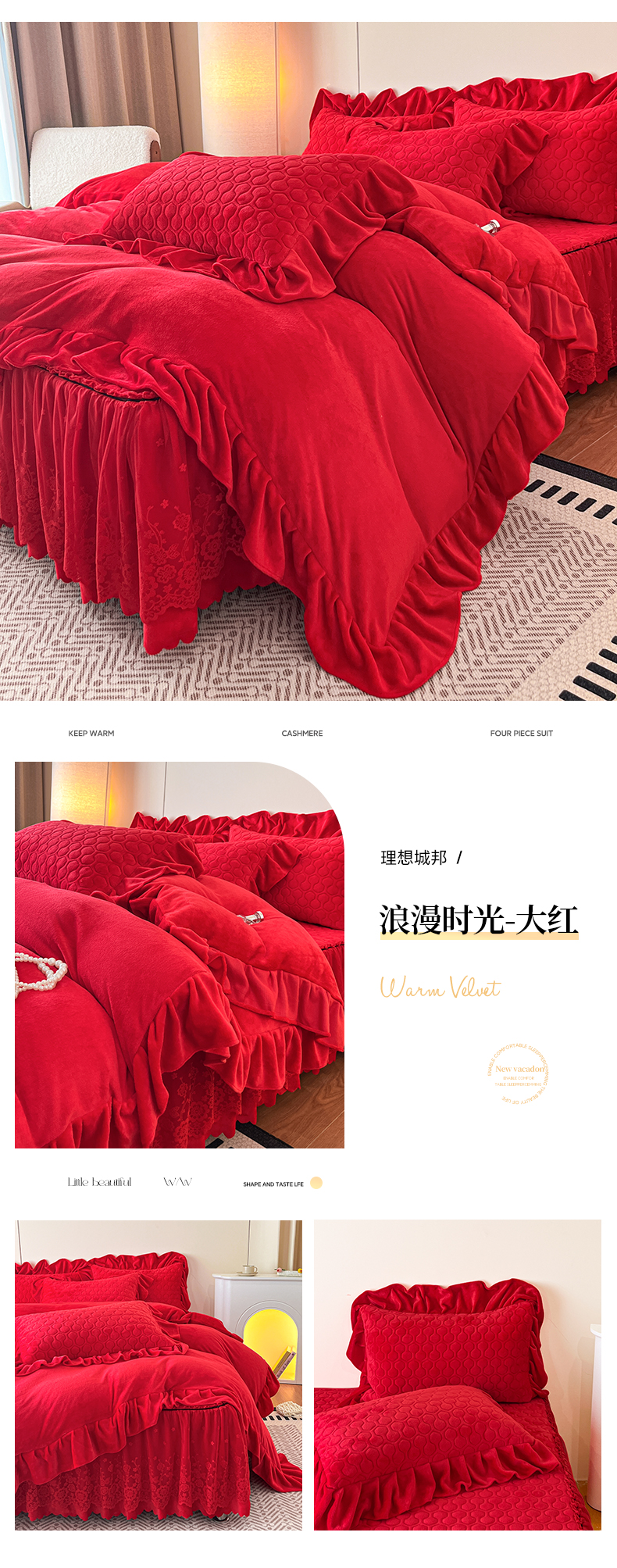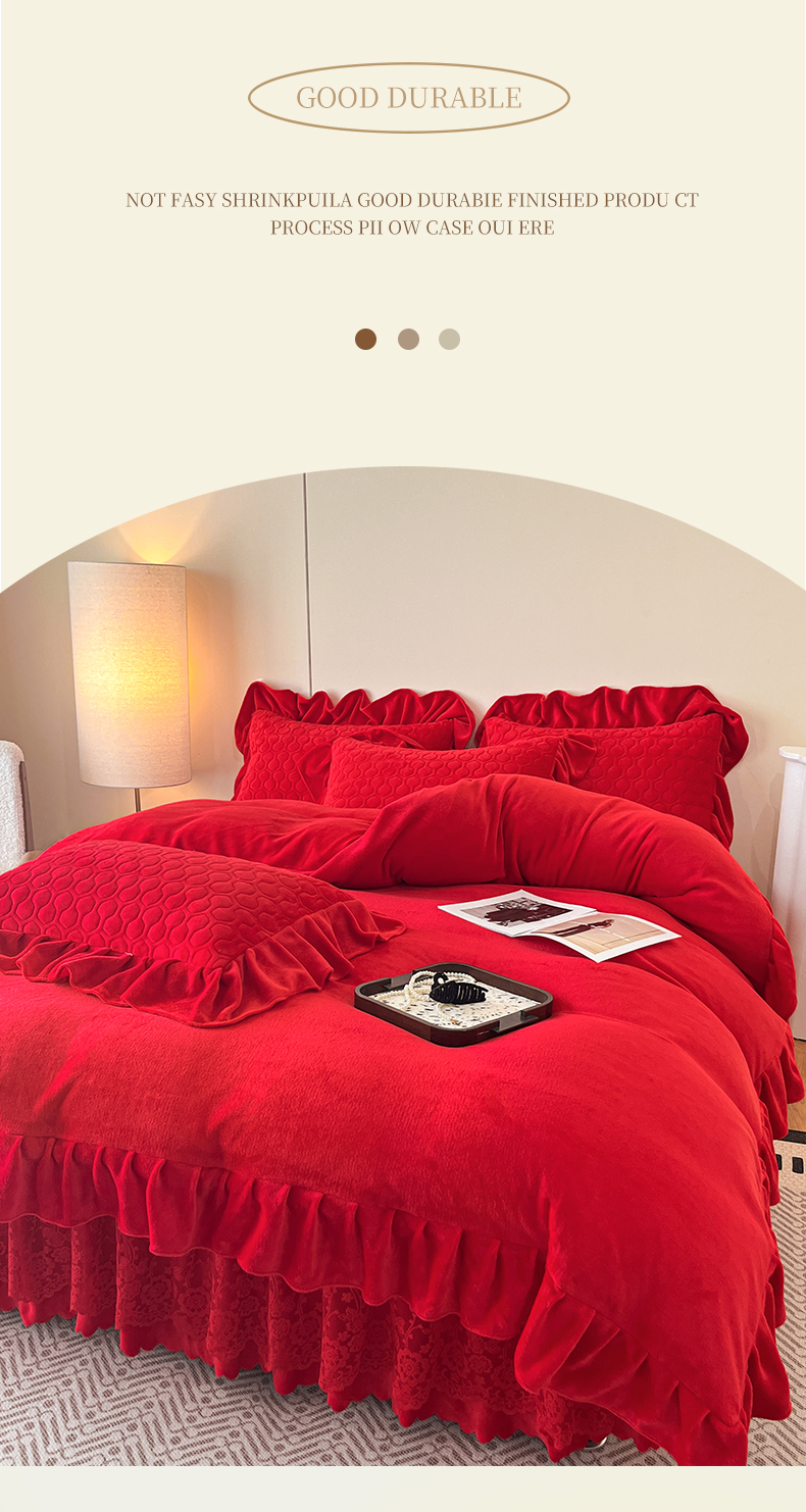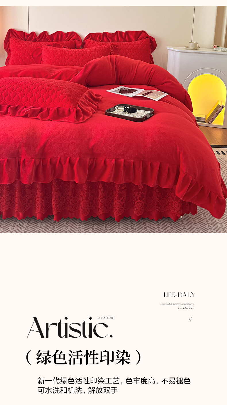 当前位置: 91家纺网 > 商品网购 > 床品套件 > 四件套 > 牛奶绒四件套 > 民新家纺 2025新款牛奶绒花边床裙四件套 浪漫时光-大红