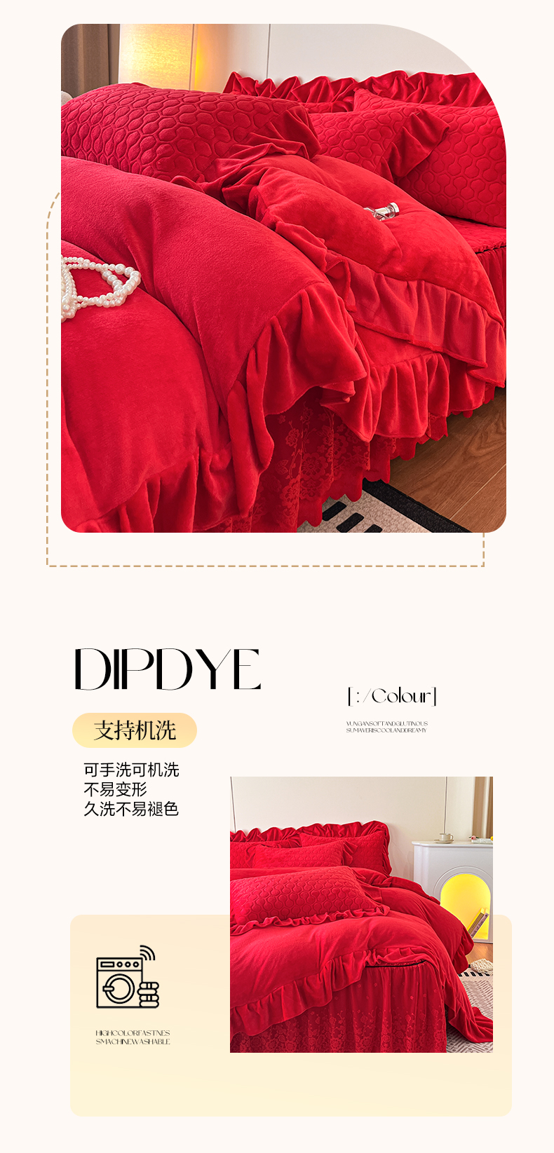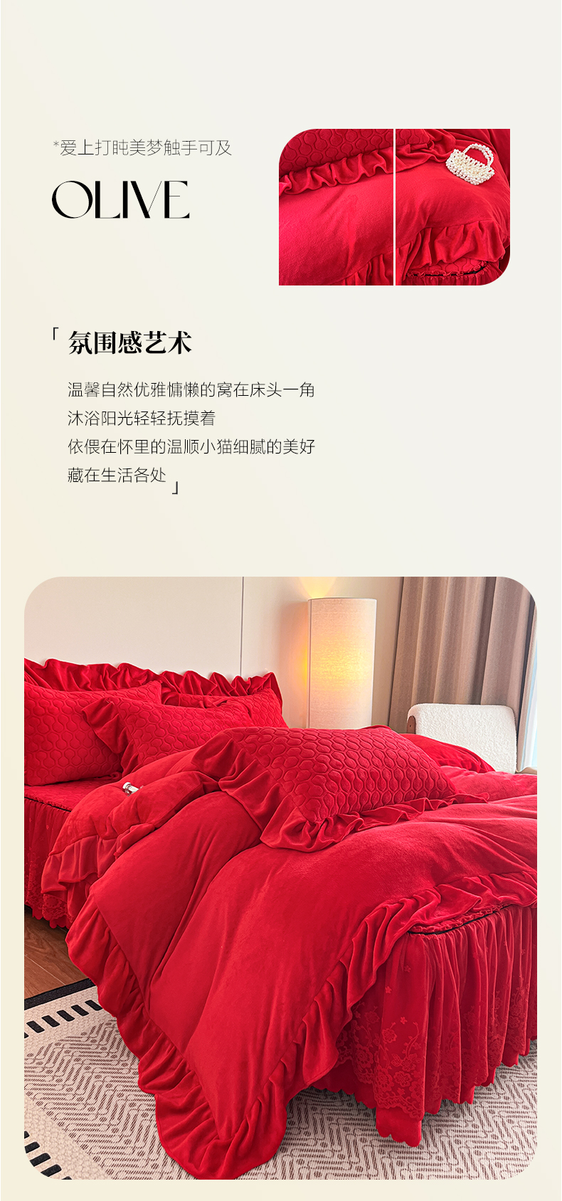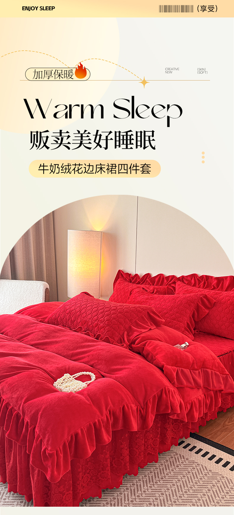 当前位置: 91家纺网 > 商品网购 > 床品套件 > 四件套 > 牛奶绒四件套 > 民新家纺 2025新款牛奶绒花边床裙四件套 浪漫时光-大红