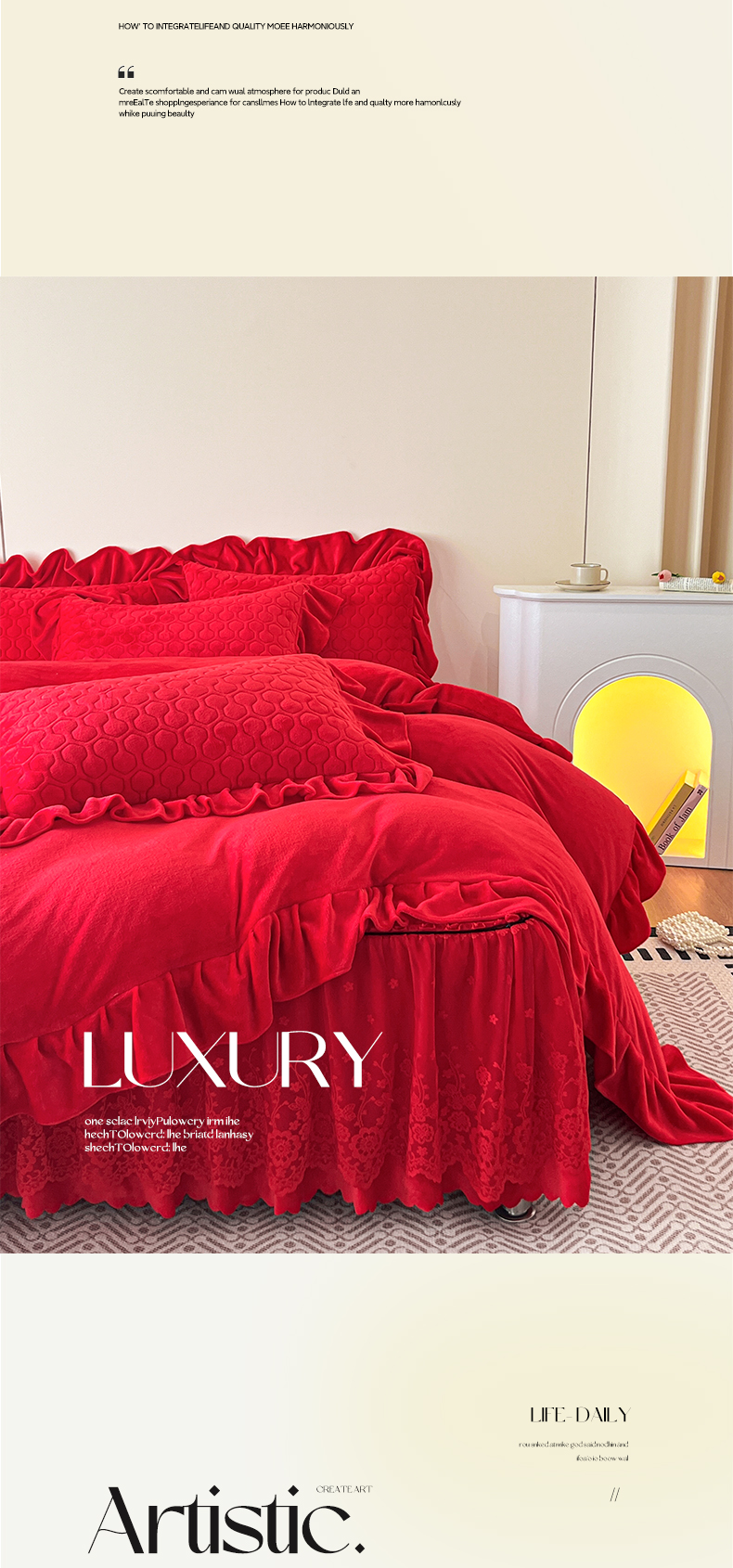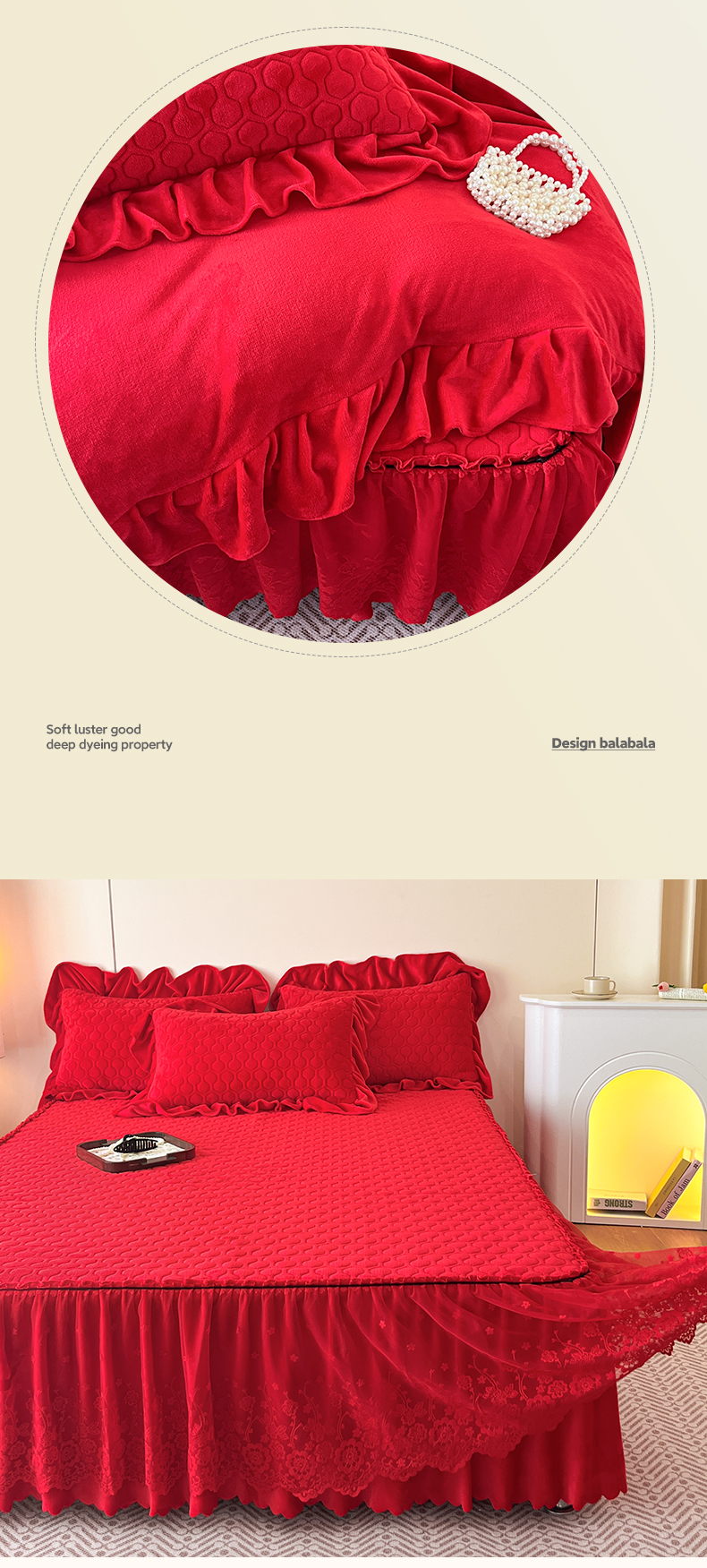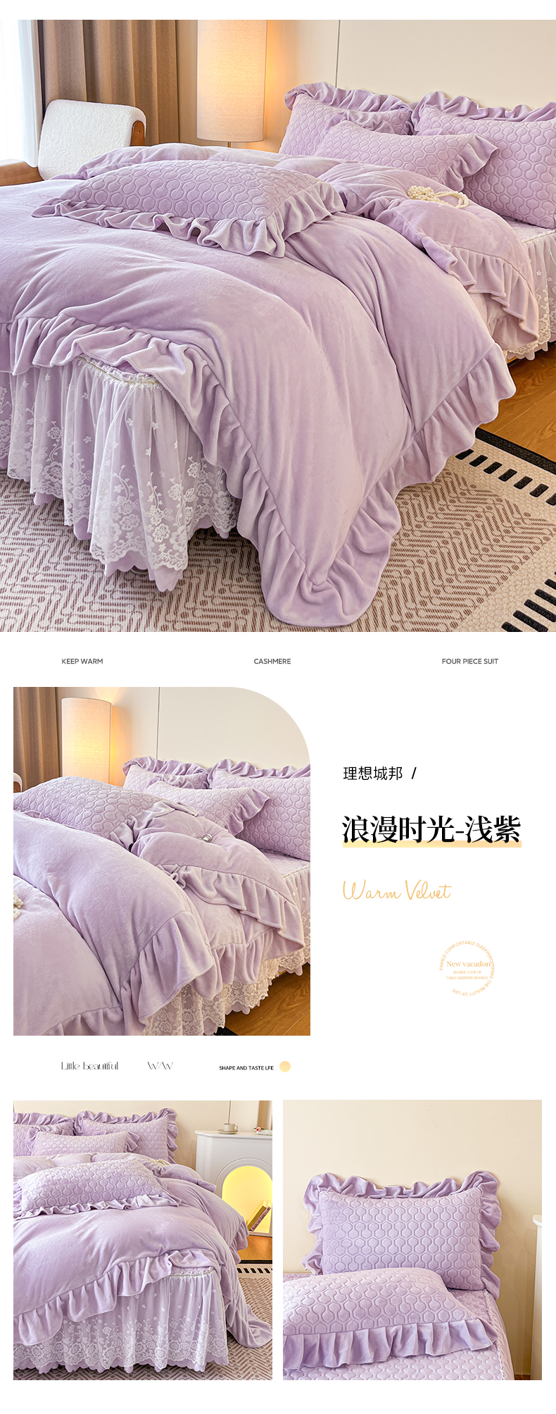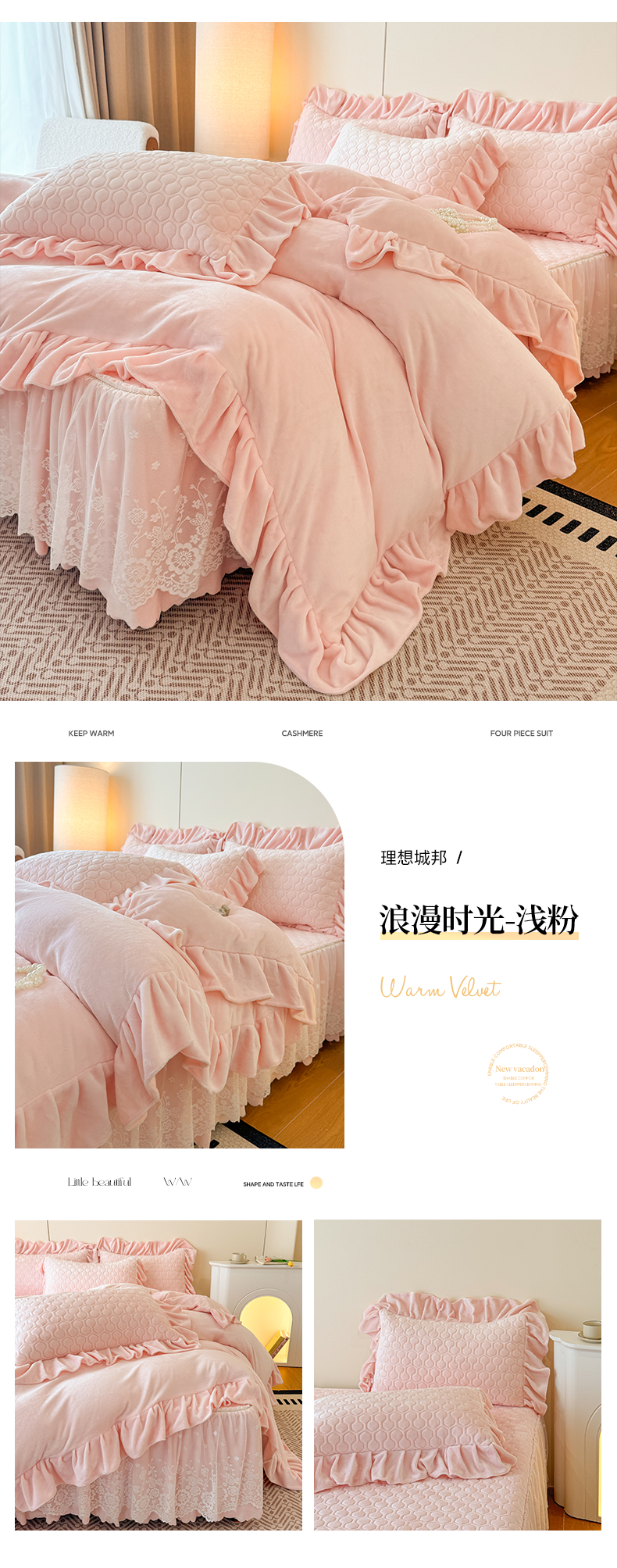 当前位置: 91家纺网 > 商品网购 > 床品套件 > 四件套 > 牛奶绒四件套 > 民新家纺 2025新款牛奶绒花边床裙四件套 浪漫时光-大红