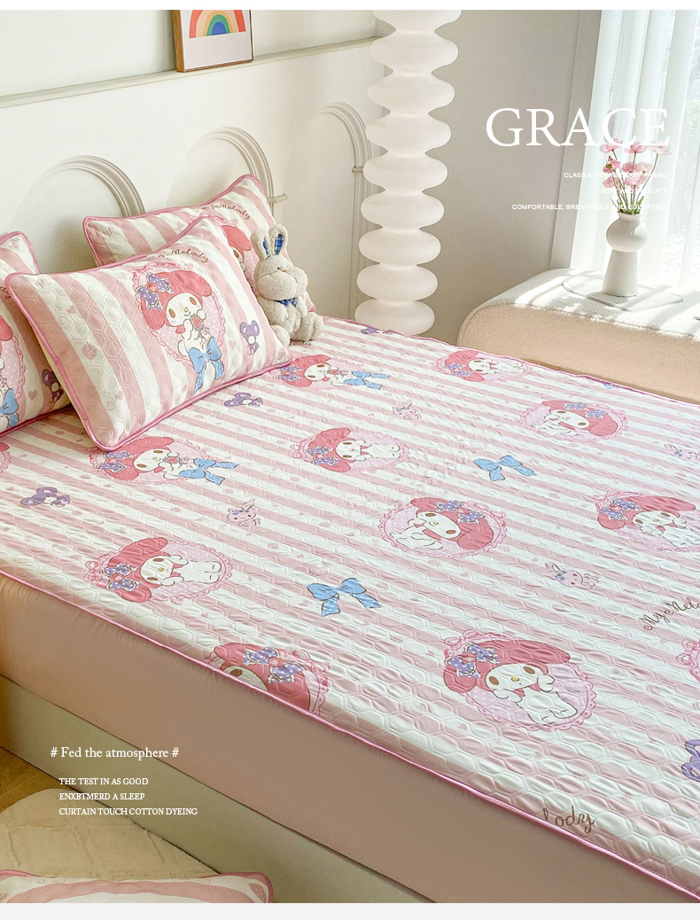 • 91家纺网 家纺一手货源 找家纺 一电 2025新款牛奶丝凉席床笠可水洗凉感丝凉席学生宿舍单人裸睡空调席-系列一 田园美乐蒂