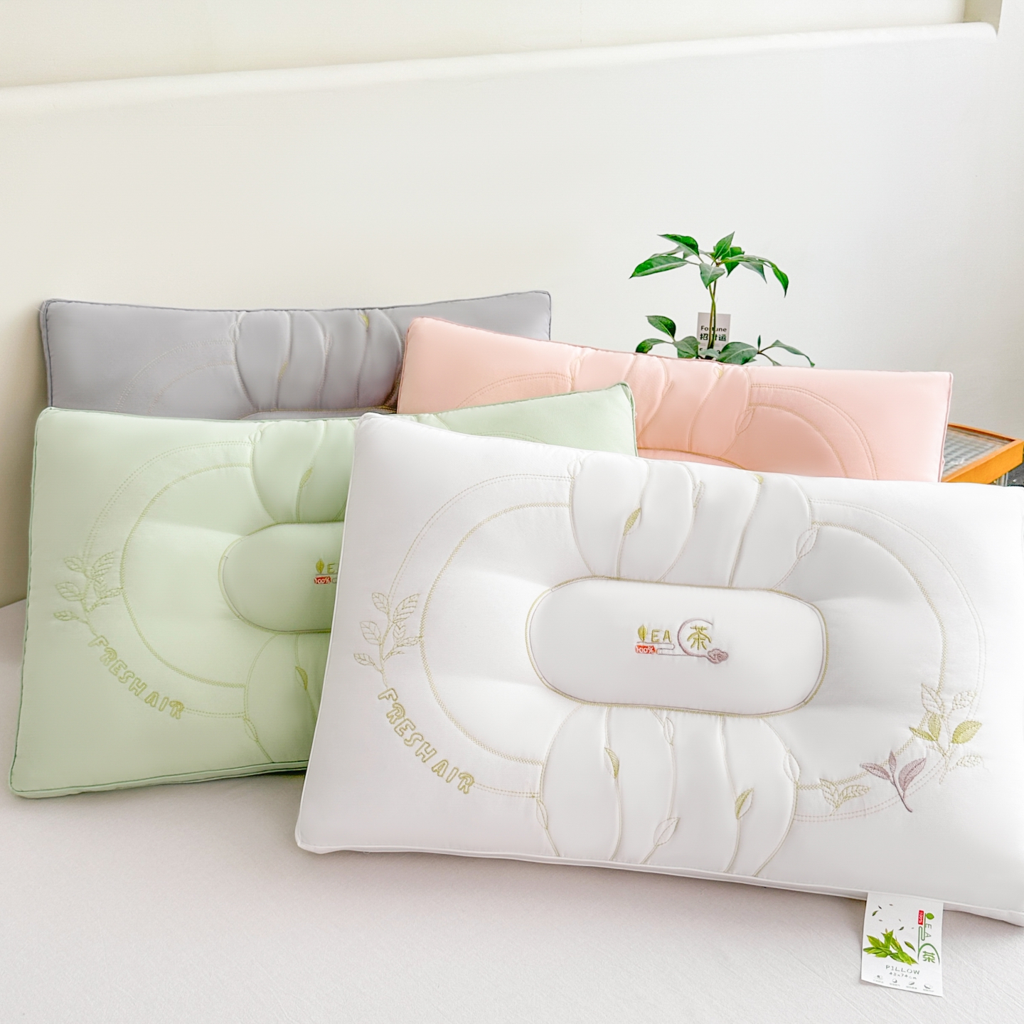 (总)十仟家纺 2025新款刺绣款高档单人枕头枕芯亲肤透气单人舒睡保健枕睡眠不变形,组合图(仅参考),粉玉,青柠绿,雅韵灰,栀子白