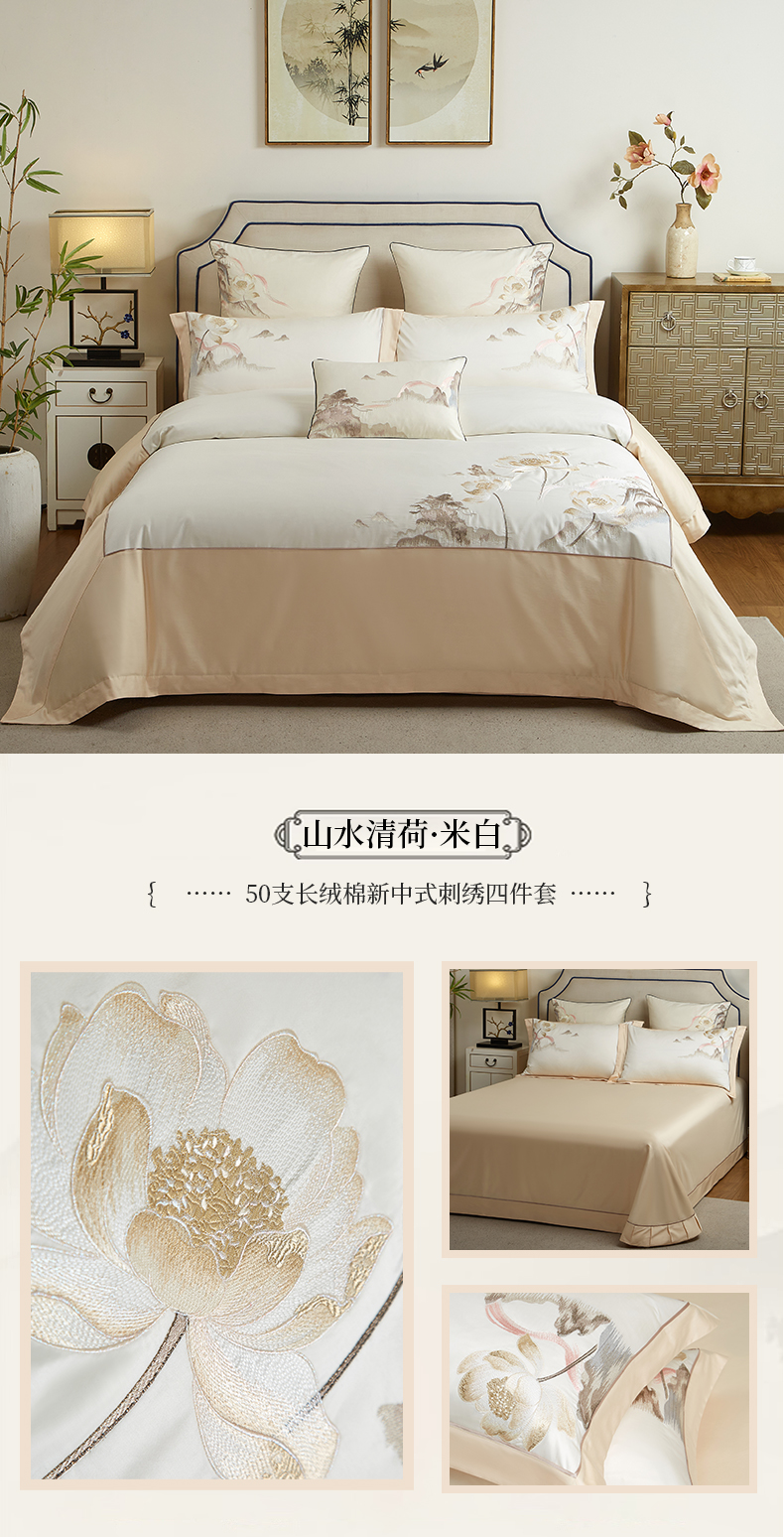 (总)50支50S长绒棉刺绣四件套新中式工艺款,荷塘月色粉 控价478-498元,荷塘月色玉 控价478-498元,翩翩起舞 控价478-498元,温馨满园粉玉 控价478-498元,温馨满园芋紫 控价478-498元,玉露清华 控价478-498元