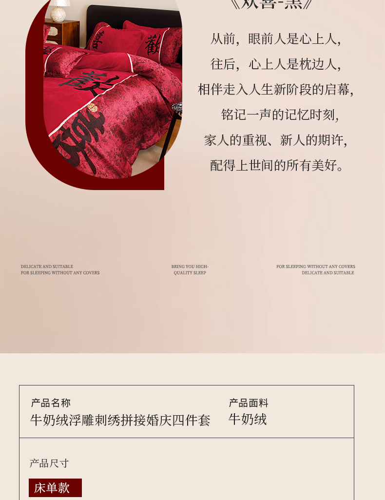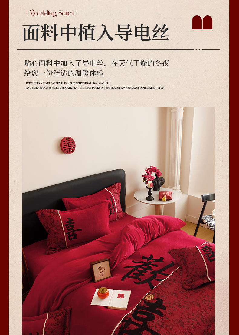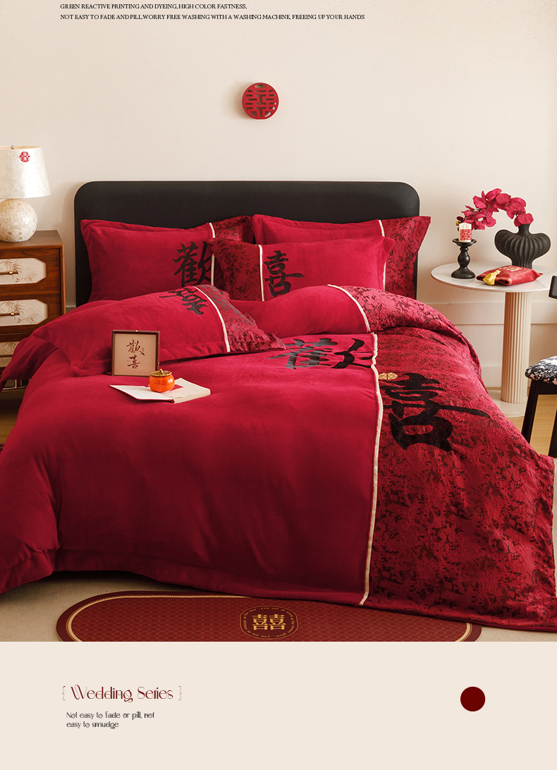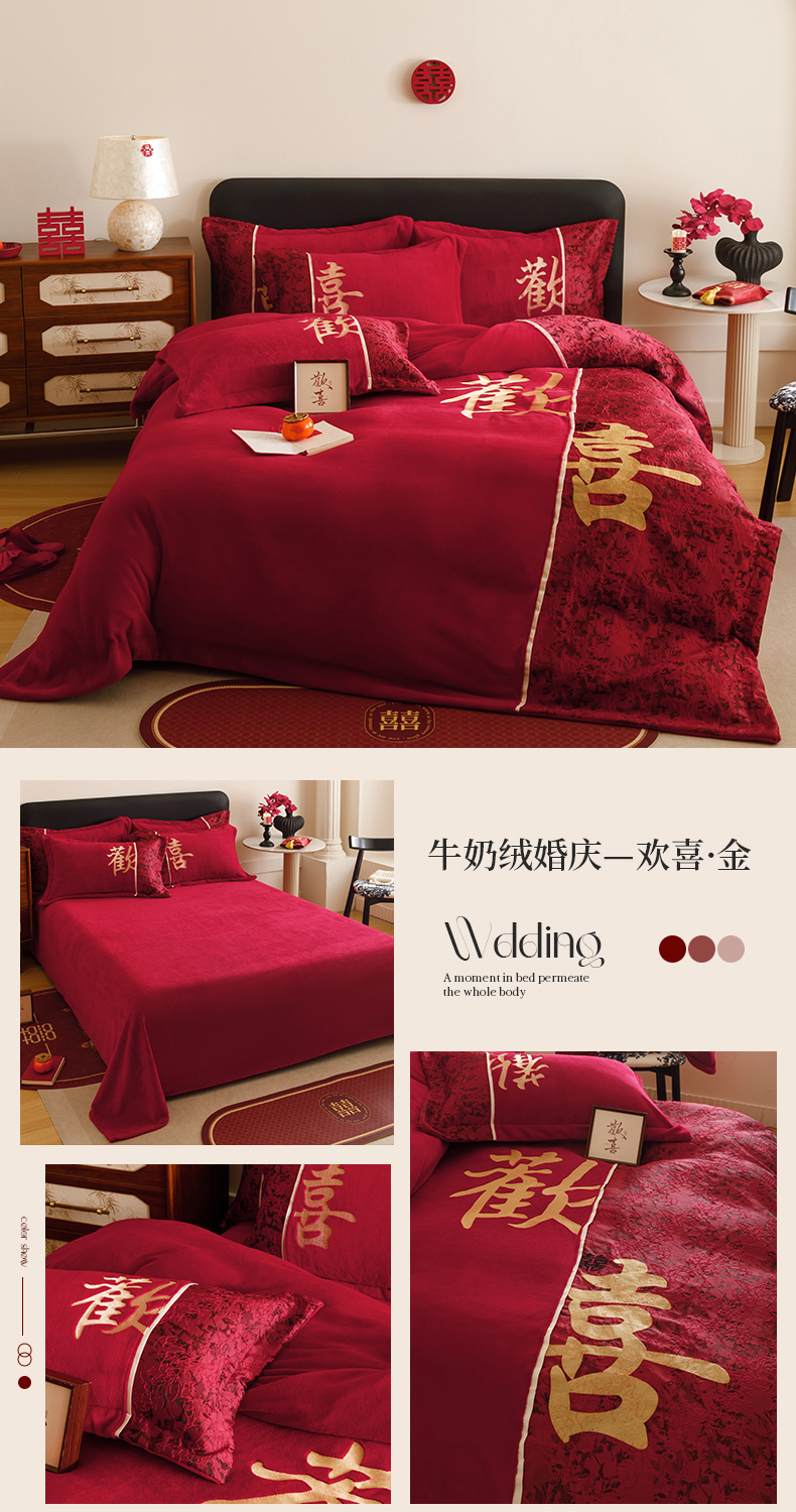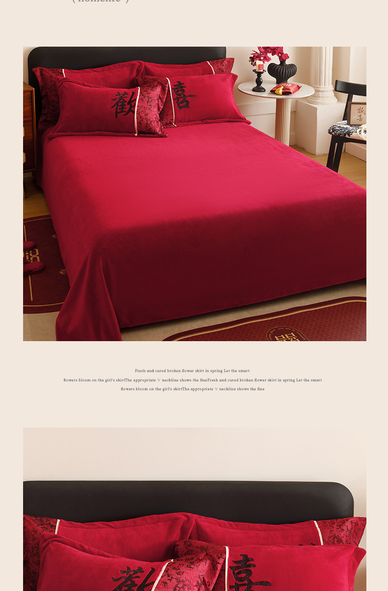 当前位置: 91家纺网 > 商品网购 > 床品套件 > 四件套 > 牛奶绒四件套 > (总)苏源家居 2025新款牛奶绒加厚新款婚庆喜庆刺绣大红四件套