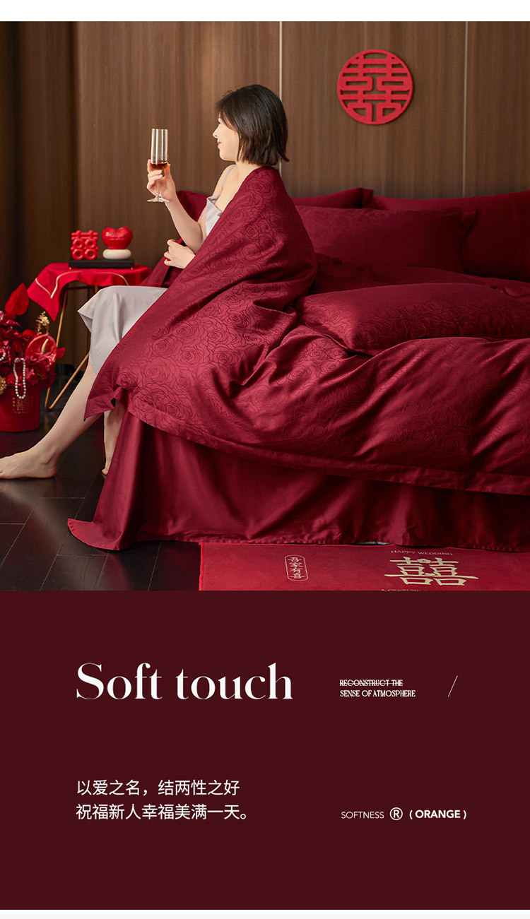良品汇馆 2025【长绒棉贡缎提花100S四件套】纯棉嫁娶红色全棉结婚床品 钟意你