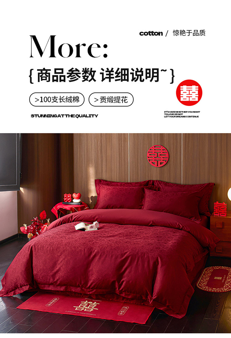商品名称:良品汇馆 2025【长绒棉贡缎提花100S四件套】纯棉嫁娶红色全棉结婚床品 钟意你