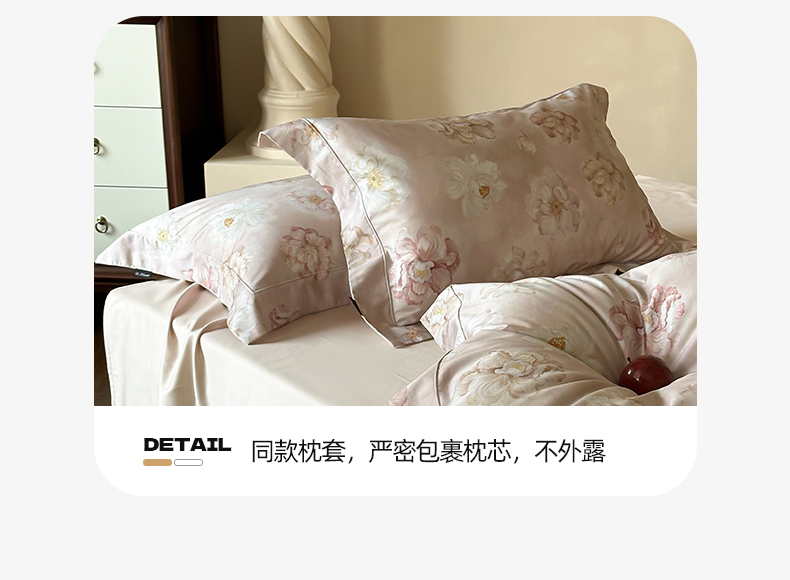 (总)窝米 2025新款数码印花100支长绒棉纯棉工艺花边款四件套-晚意,晚意