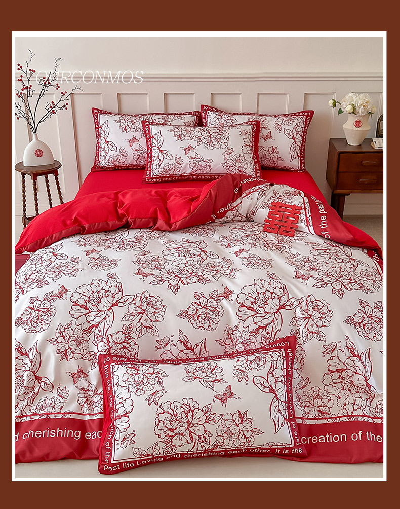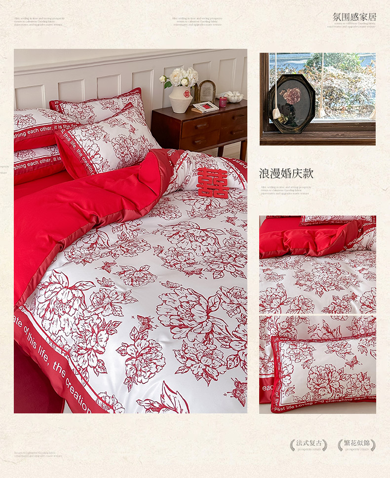 商品名称:花伞 2024新款婚庆款加厚亲肤磨毛水洗棉柔软四件套春风十里