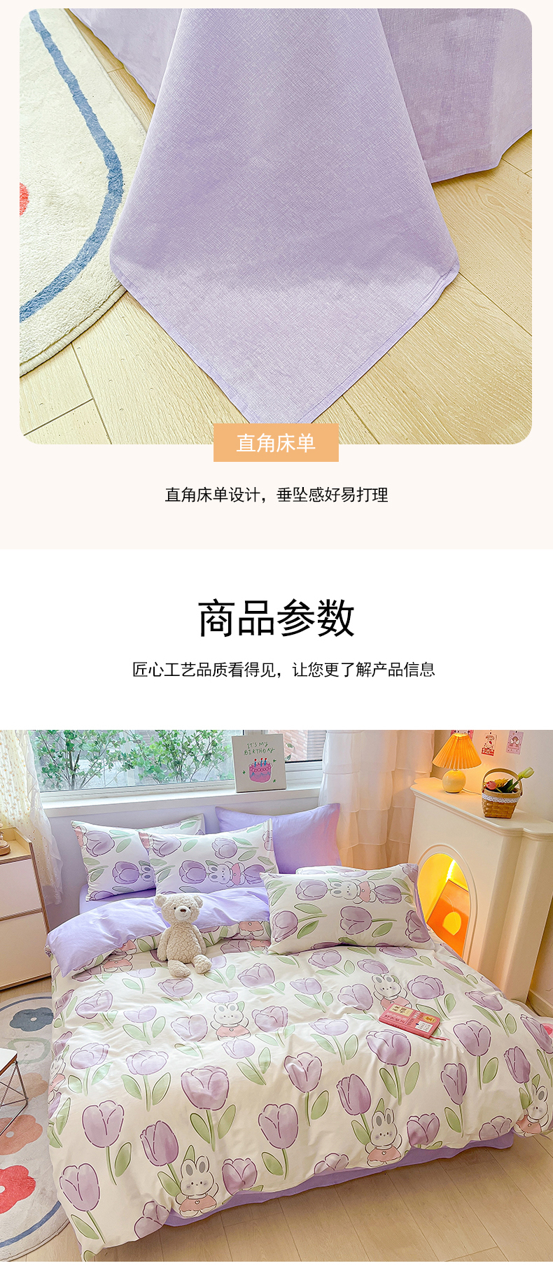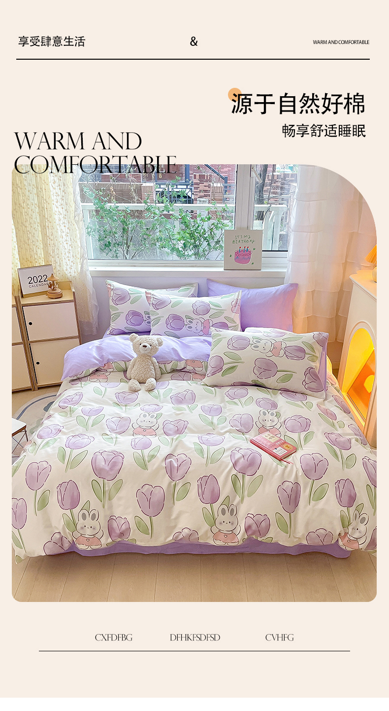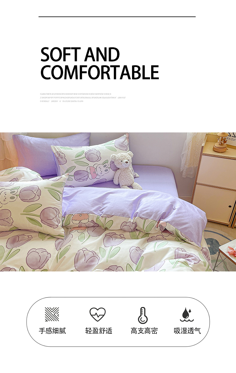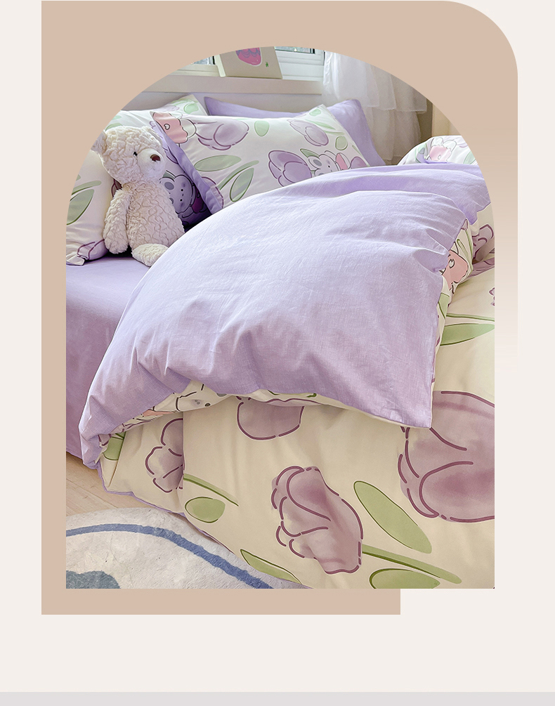 当前位置: 91家纺网 > 商品网购 > 床品套件 > 四件套 > 全棉普通四件套 > 琪格格纺织 2025新款全棉纯棉13372小清新四件套 美郁-紫