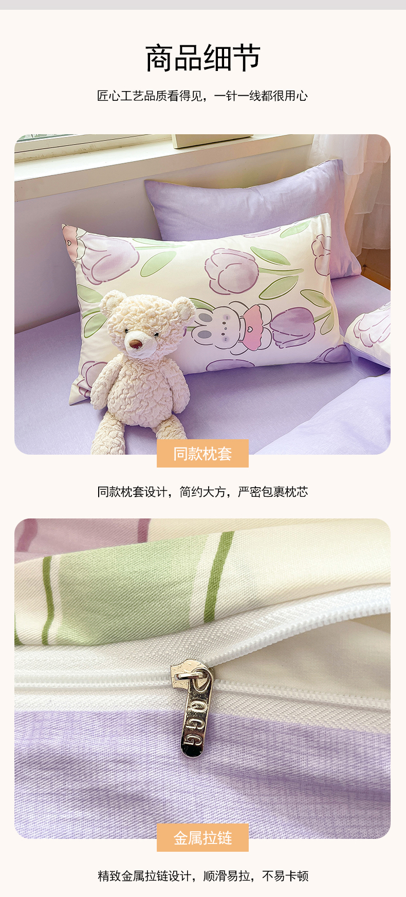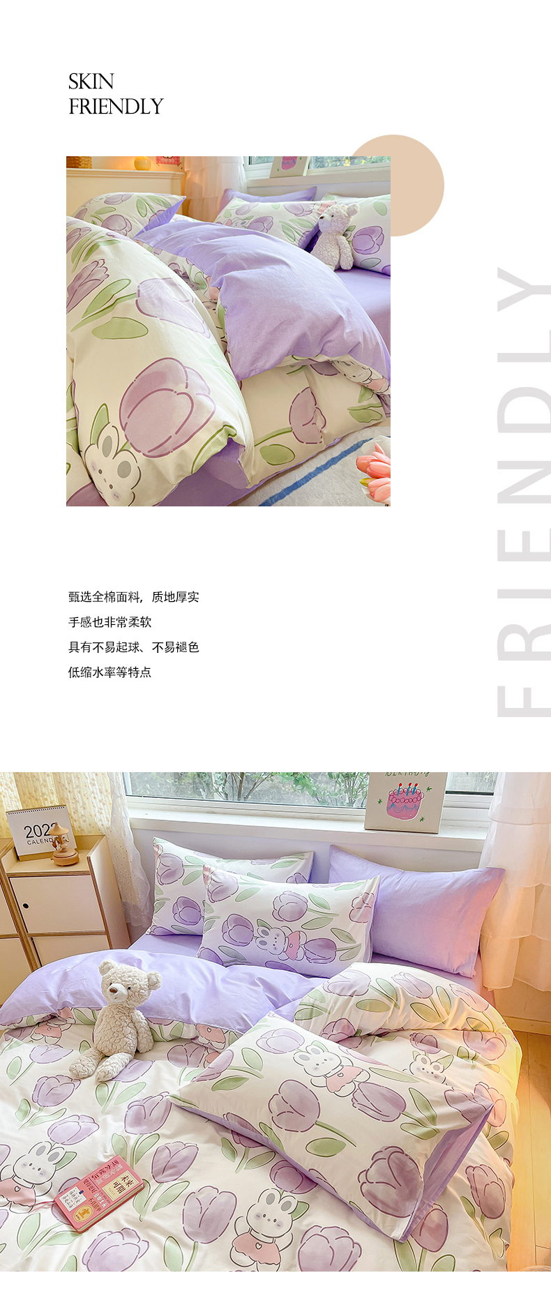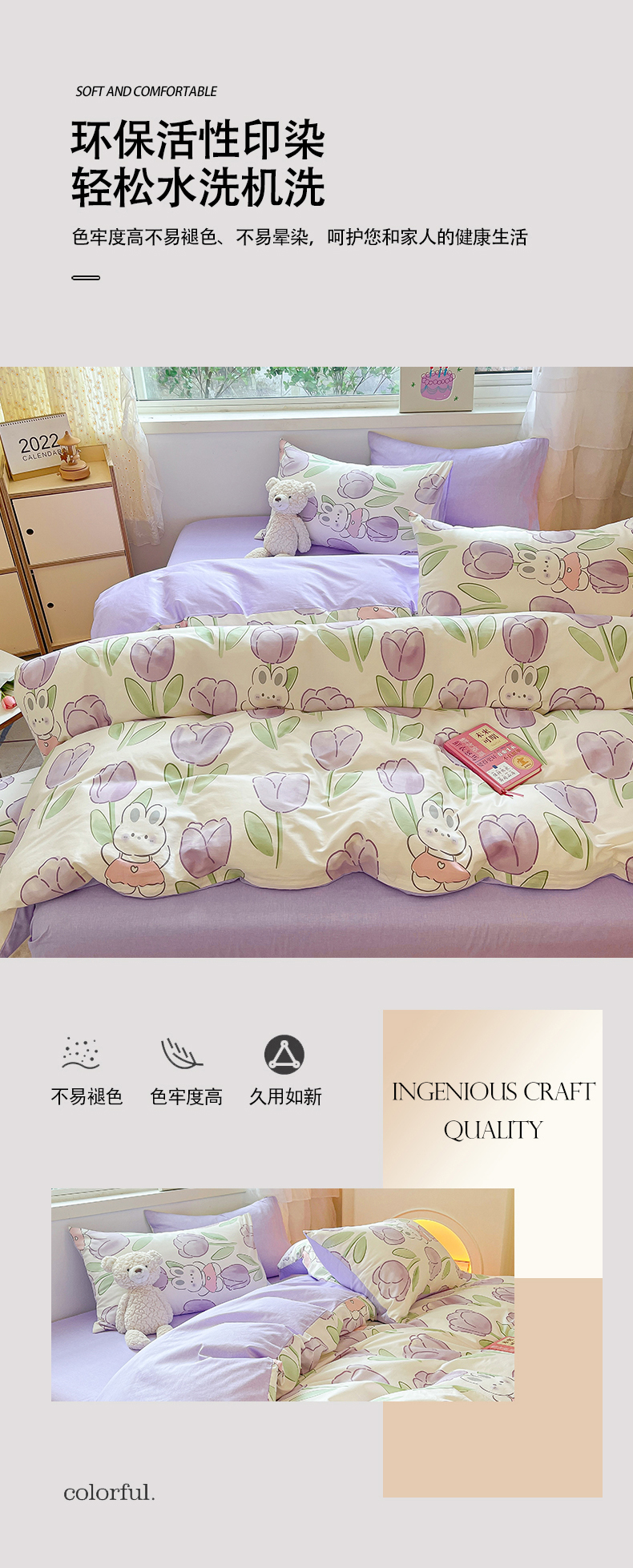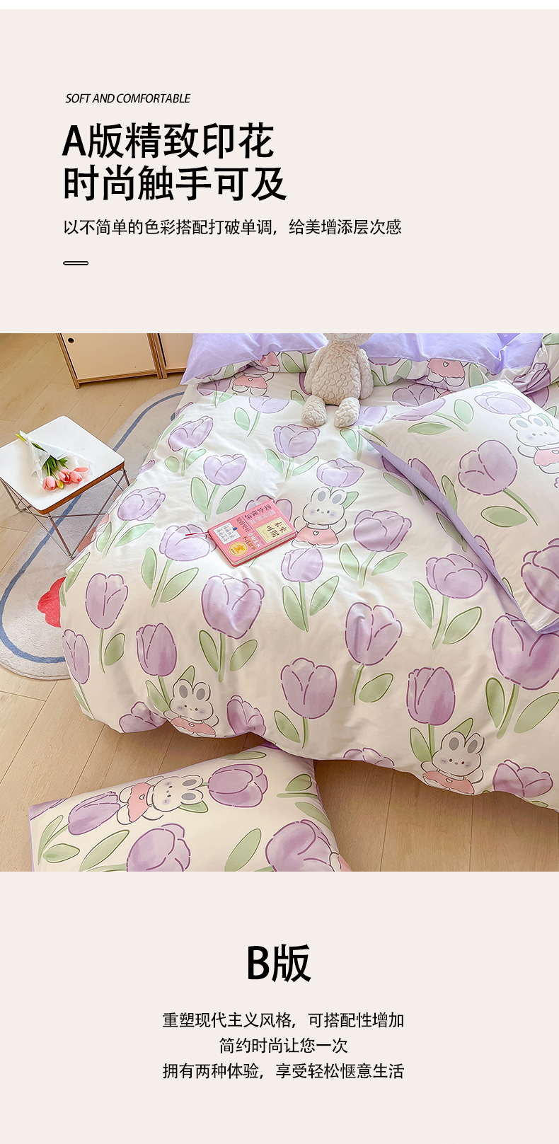 当前位置: 91家纺网 > 商品网购 > 床品套件 > 四件套 > 全棉普通四件套 > 琪格格纺织 2025新款全棉纯棉13372小清新四件套 美郁-紫
