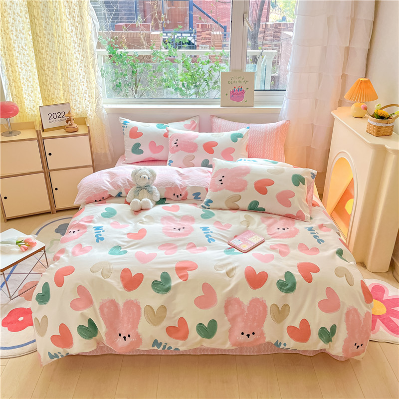 (总)琪格格纺织 2025新款全棉纯棉13372小清新四件套,爱心兔,白兔与熊,彩霞,美郁-紫,萌心兔,皮皮兔,苏珊花园,微雨,小粉兔,熊猫