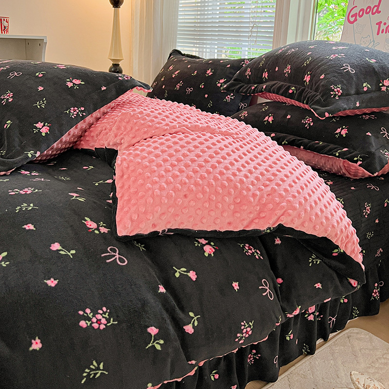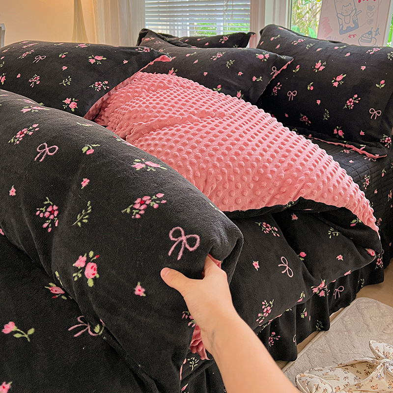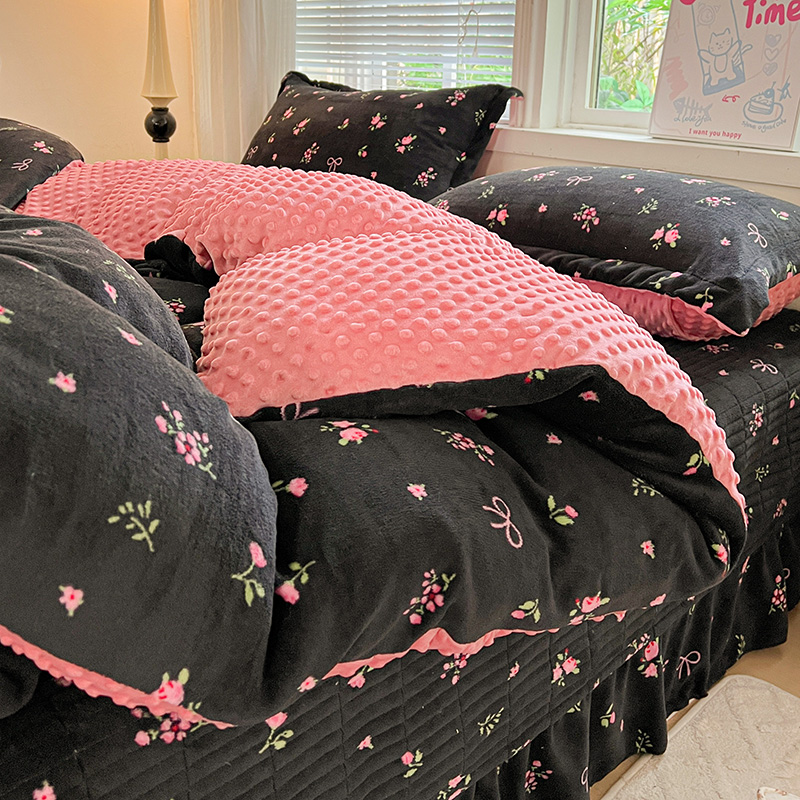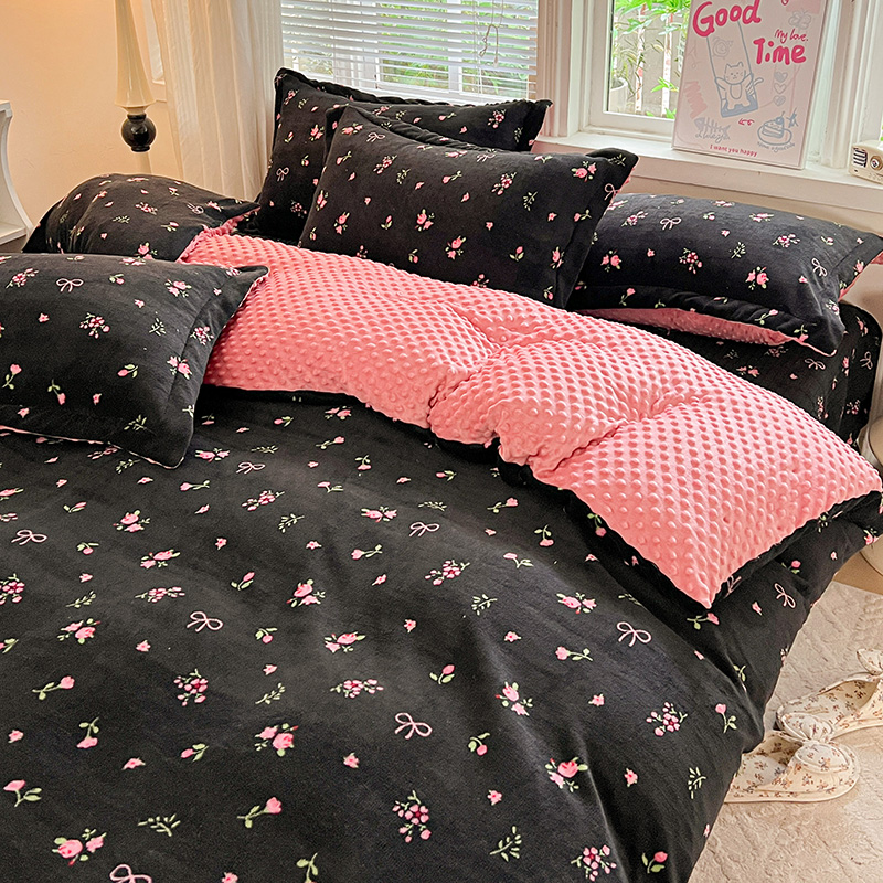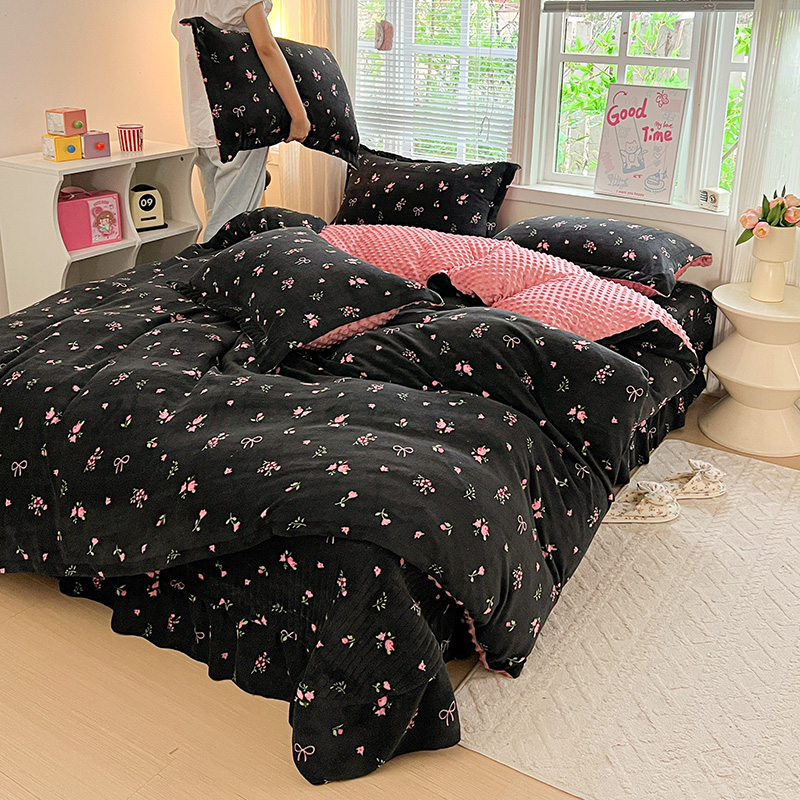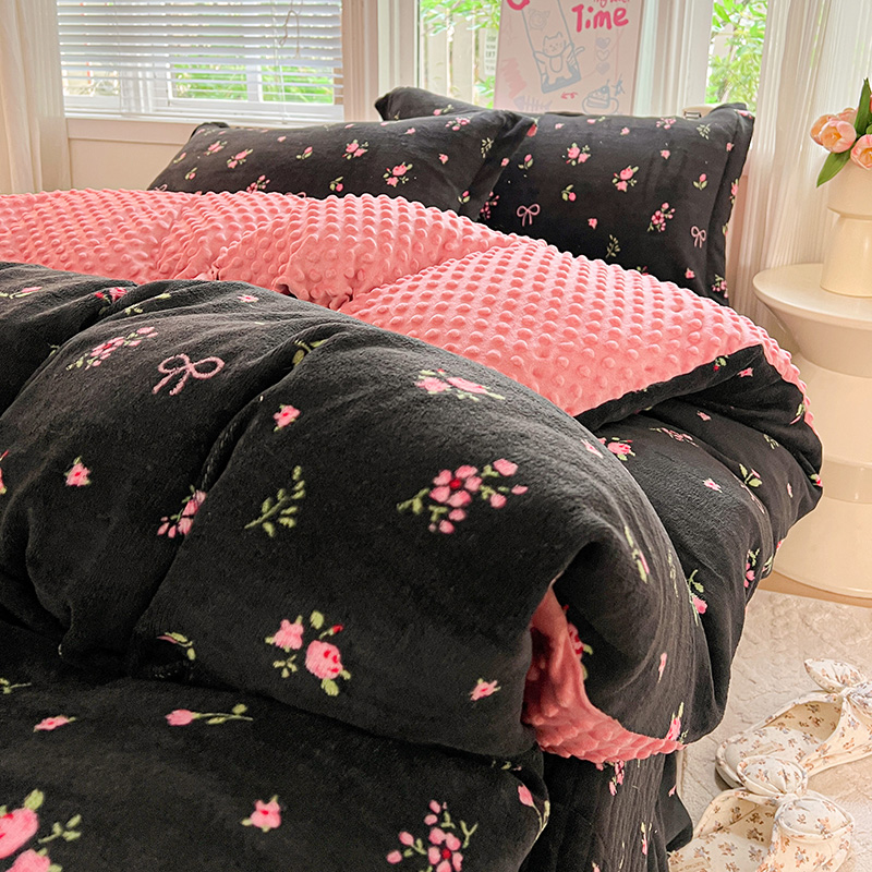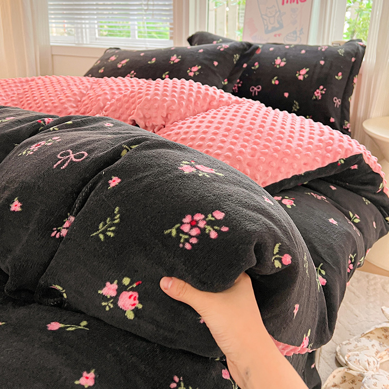 当前位置: 91家纺网 > 商品网购 > 床品套件 > 四件套 > 牛奶绒四件套 > 一比一 2025新款加厚保暖豆豆牛奶绒床盖款四件套黑绒花梦