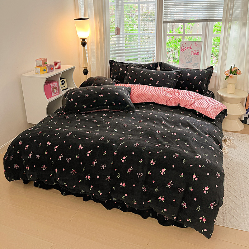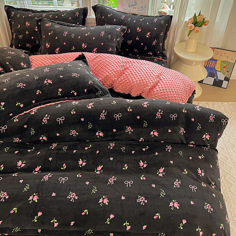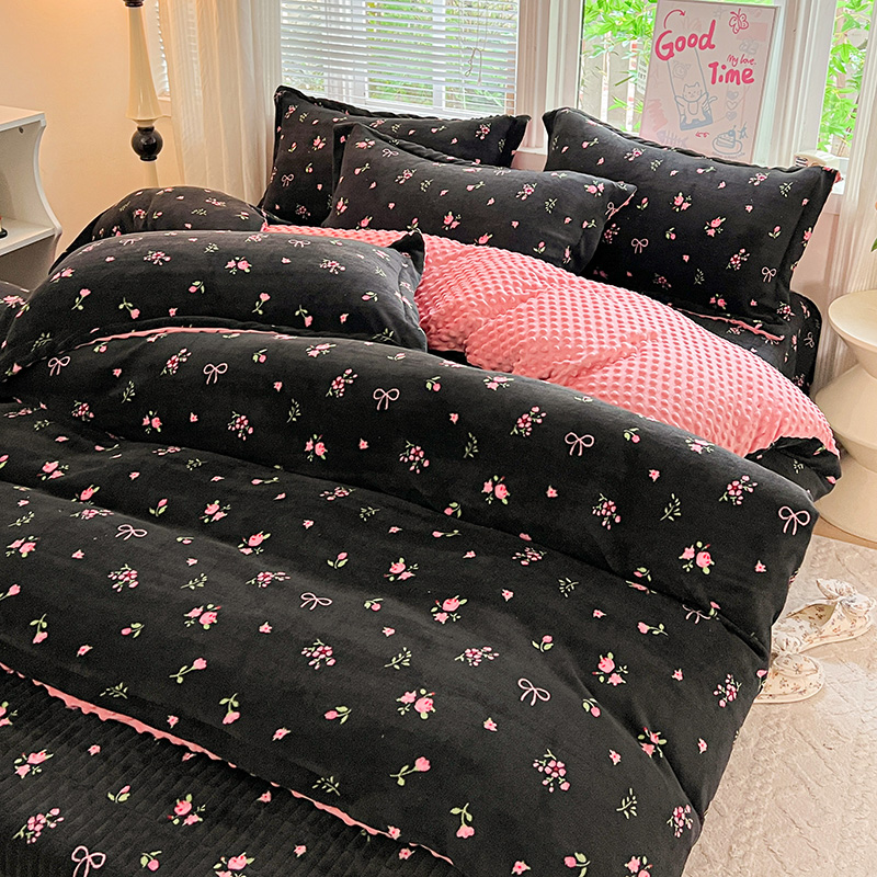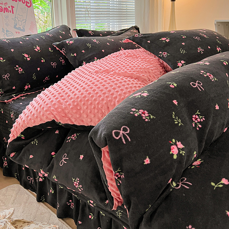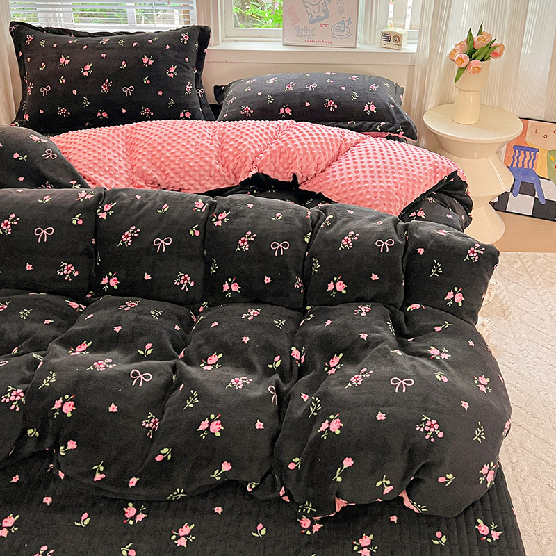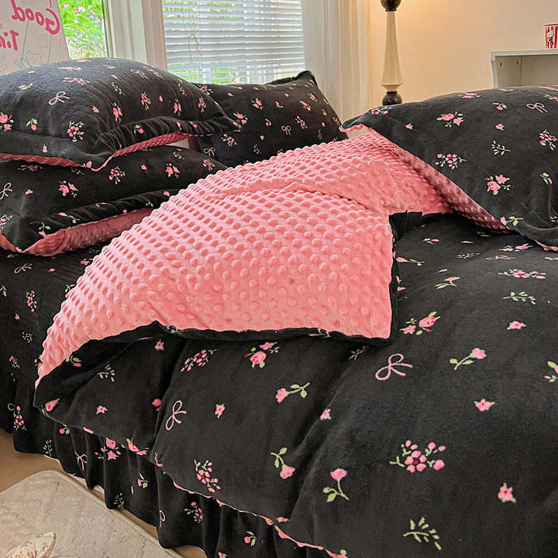 当前位置: 91家纺网 > 商品网购 > 床品套件 > 四件套 > 牛奶绒四件套 > 一比一 2025新款加厚保暖豆豆牛奶绒床盖款四件套黑绒花梦