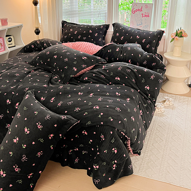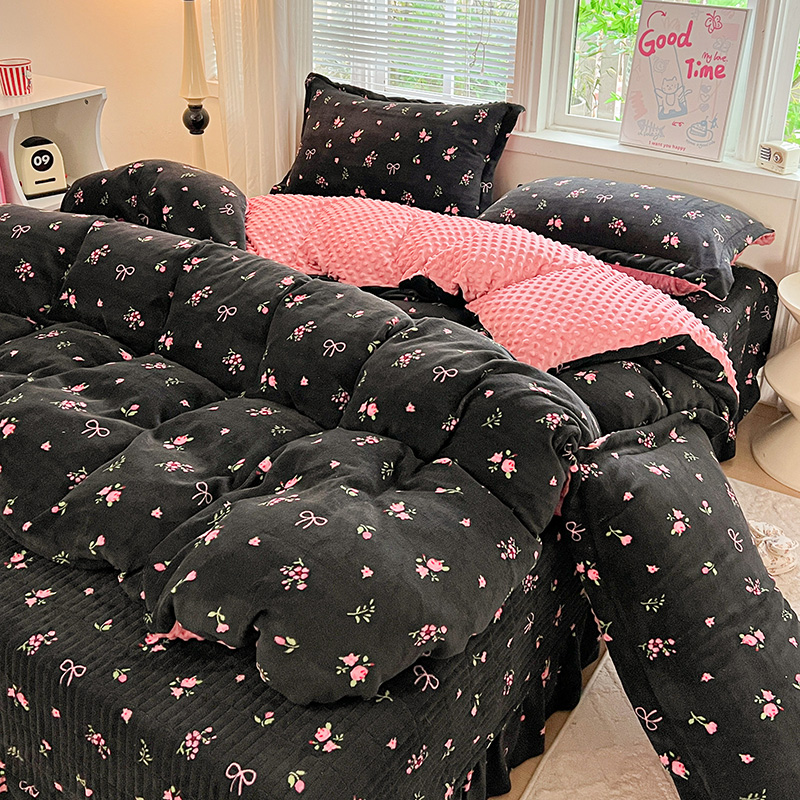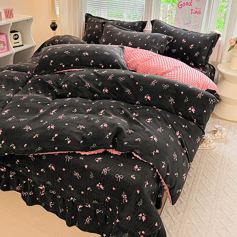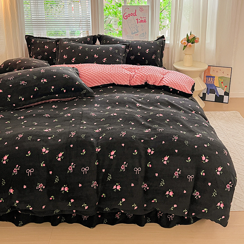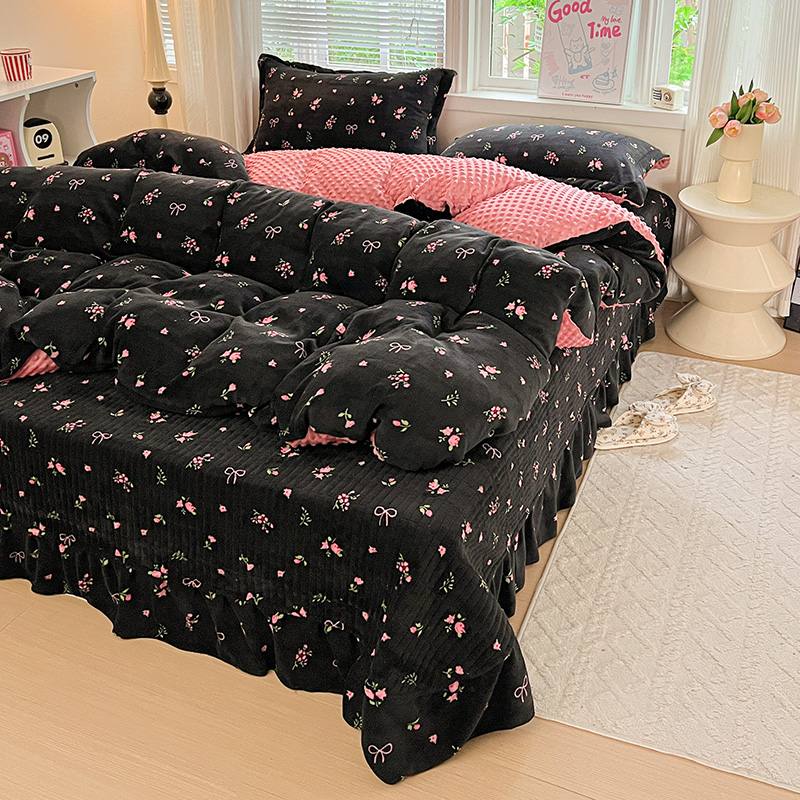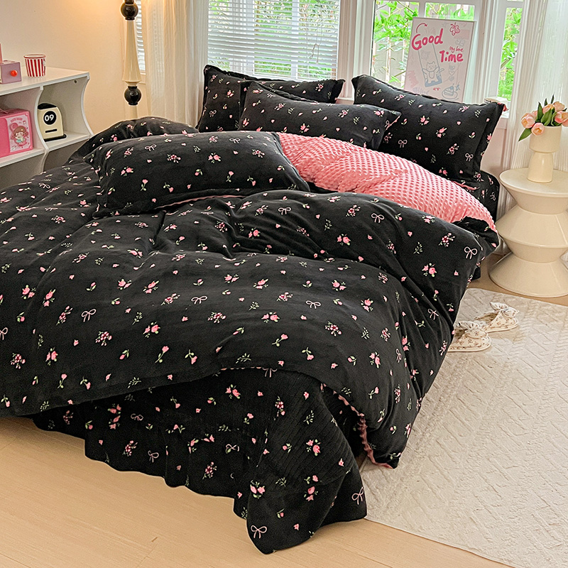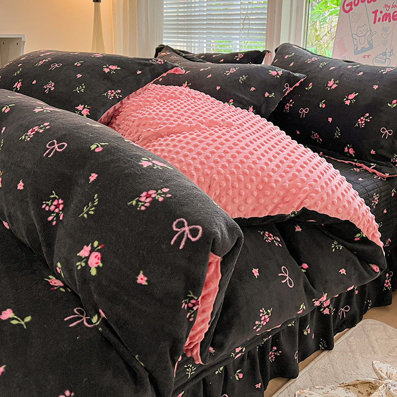 当前位置: 91家纺网 > 商品网购 > 床品套件 > 四件套 > 牛奶绒四件套 > 一比一 2025新款加厚保暖豆豆牛奶绒床盖款四件套黑绒花梦