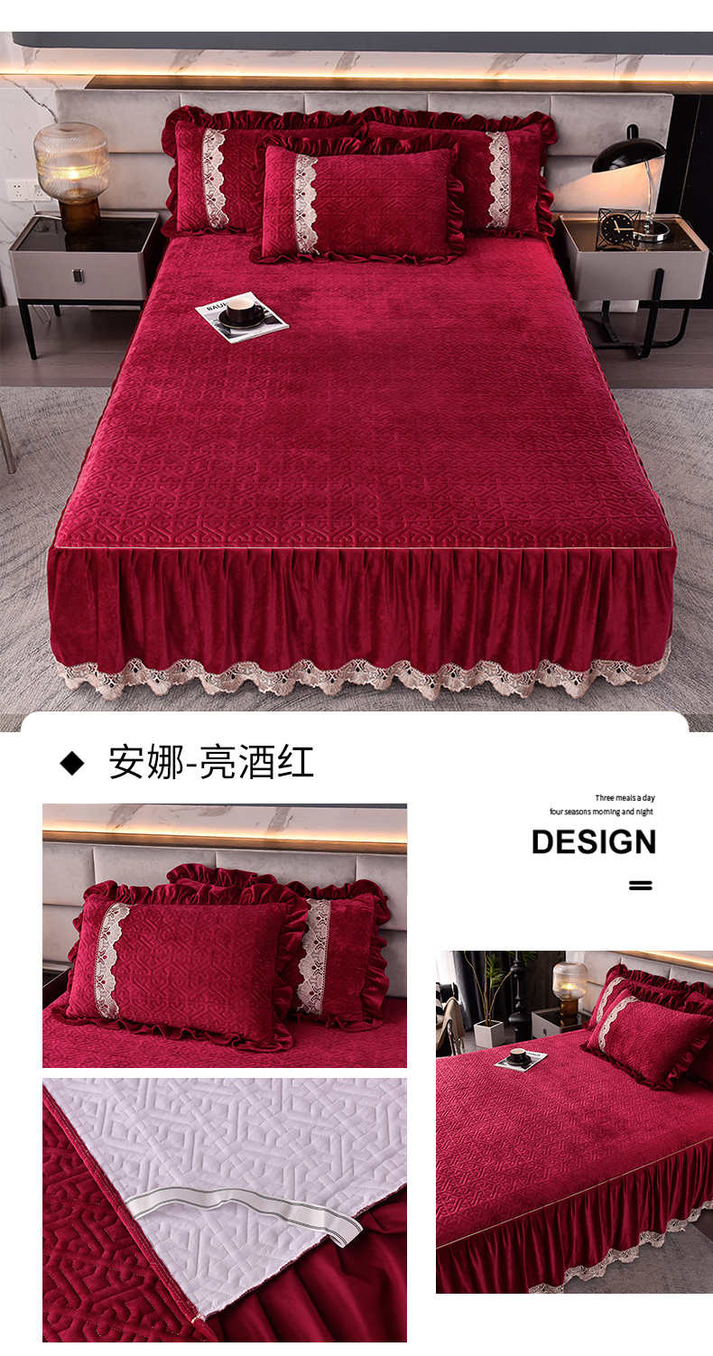 商品名称:忘忧草 2025新款婴儿绒夹棉单床裙 床裙单件-安娜系列 安娜-豆沙色
