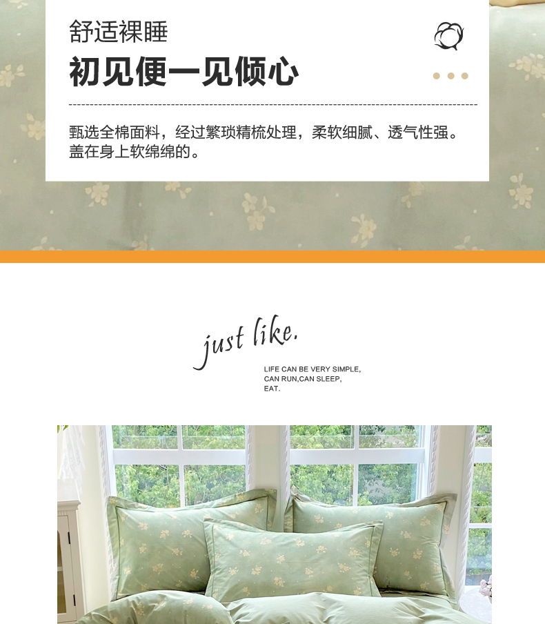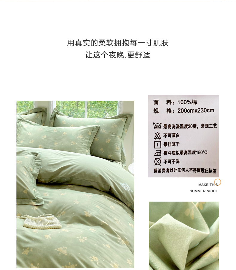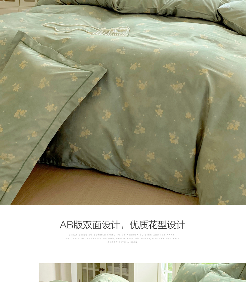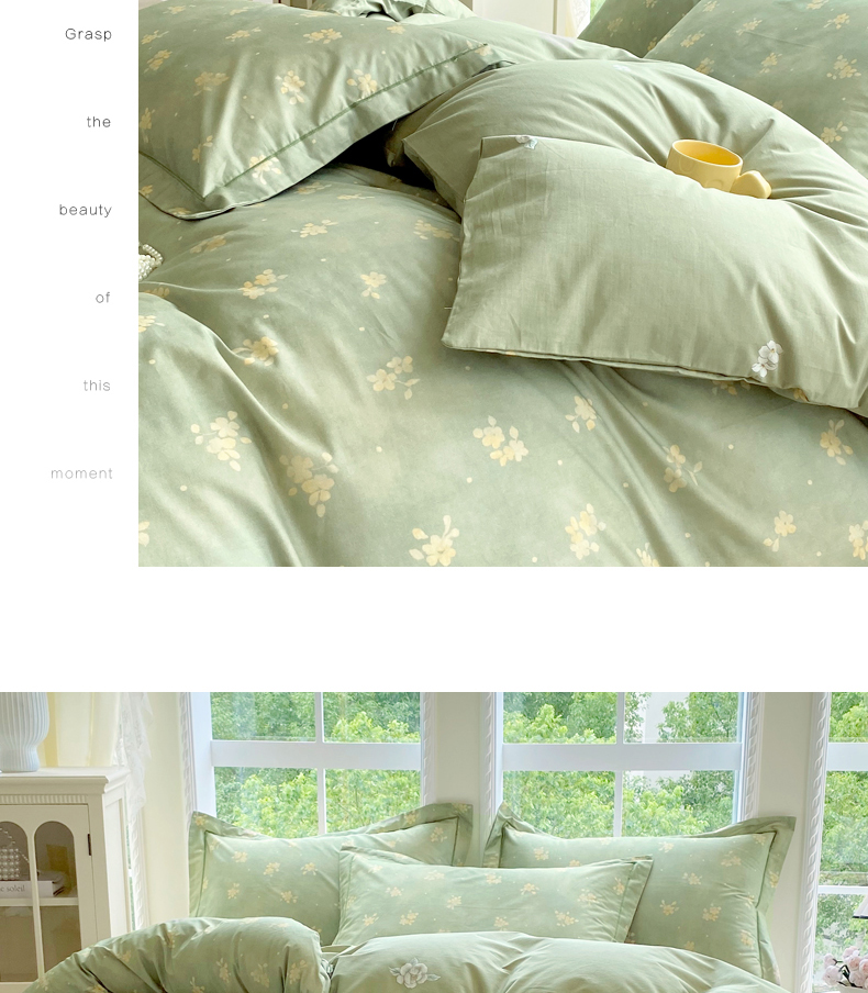 当前位置: 91家纺网 > 商品网购 > 床品套件 > 四件套 > 全棉普通四件套 > 星期三家纺 2025新款10月新款铂金全棉纯棉13372四件套 春雾-绿