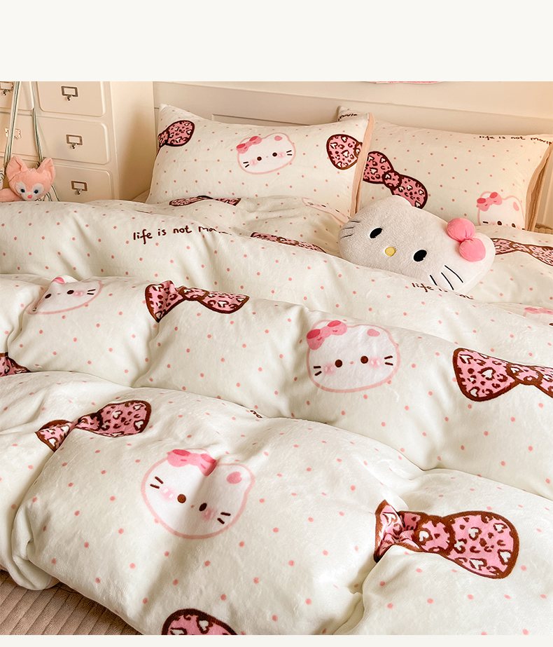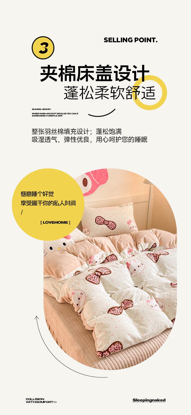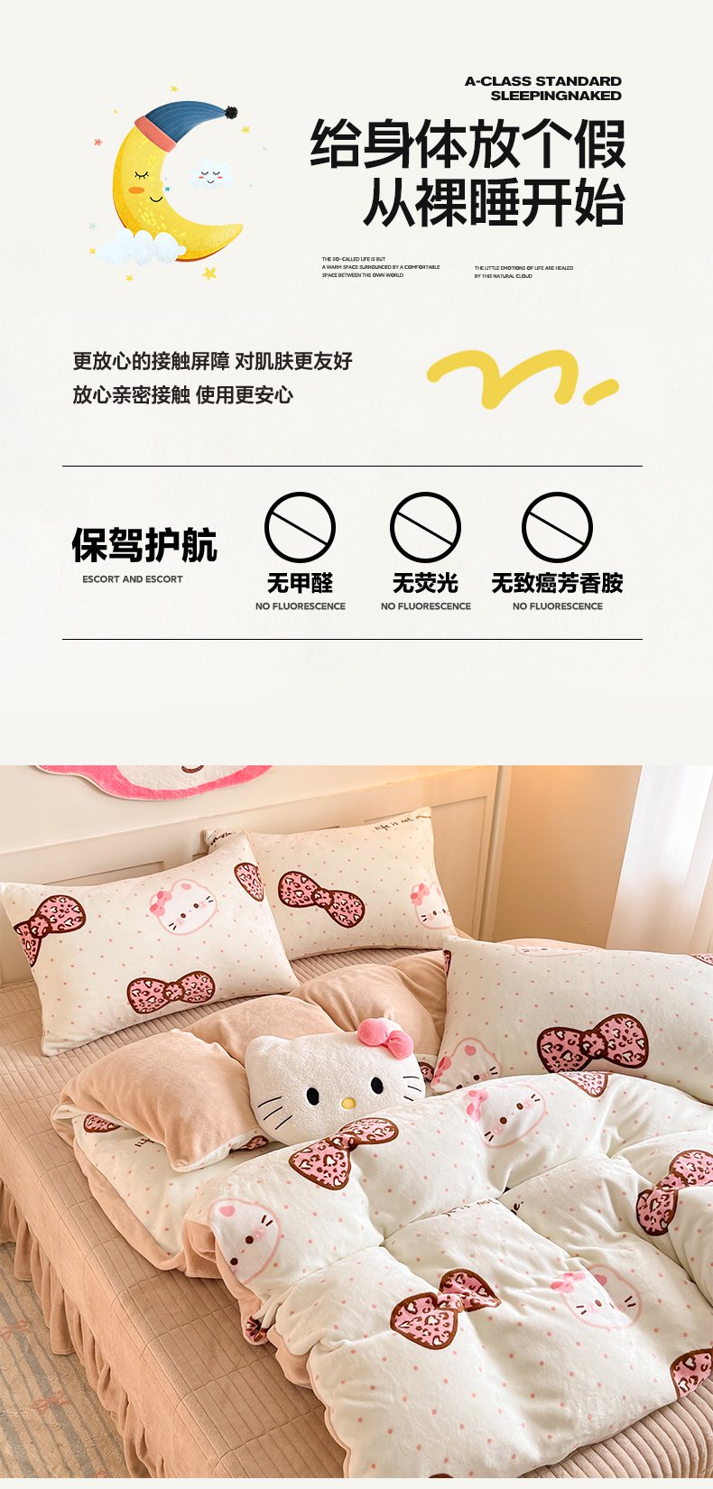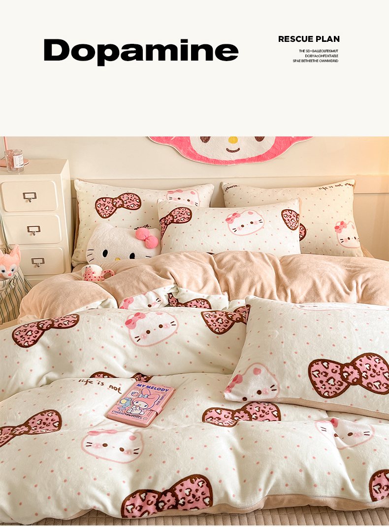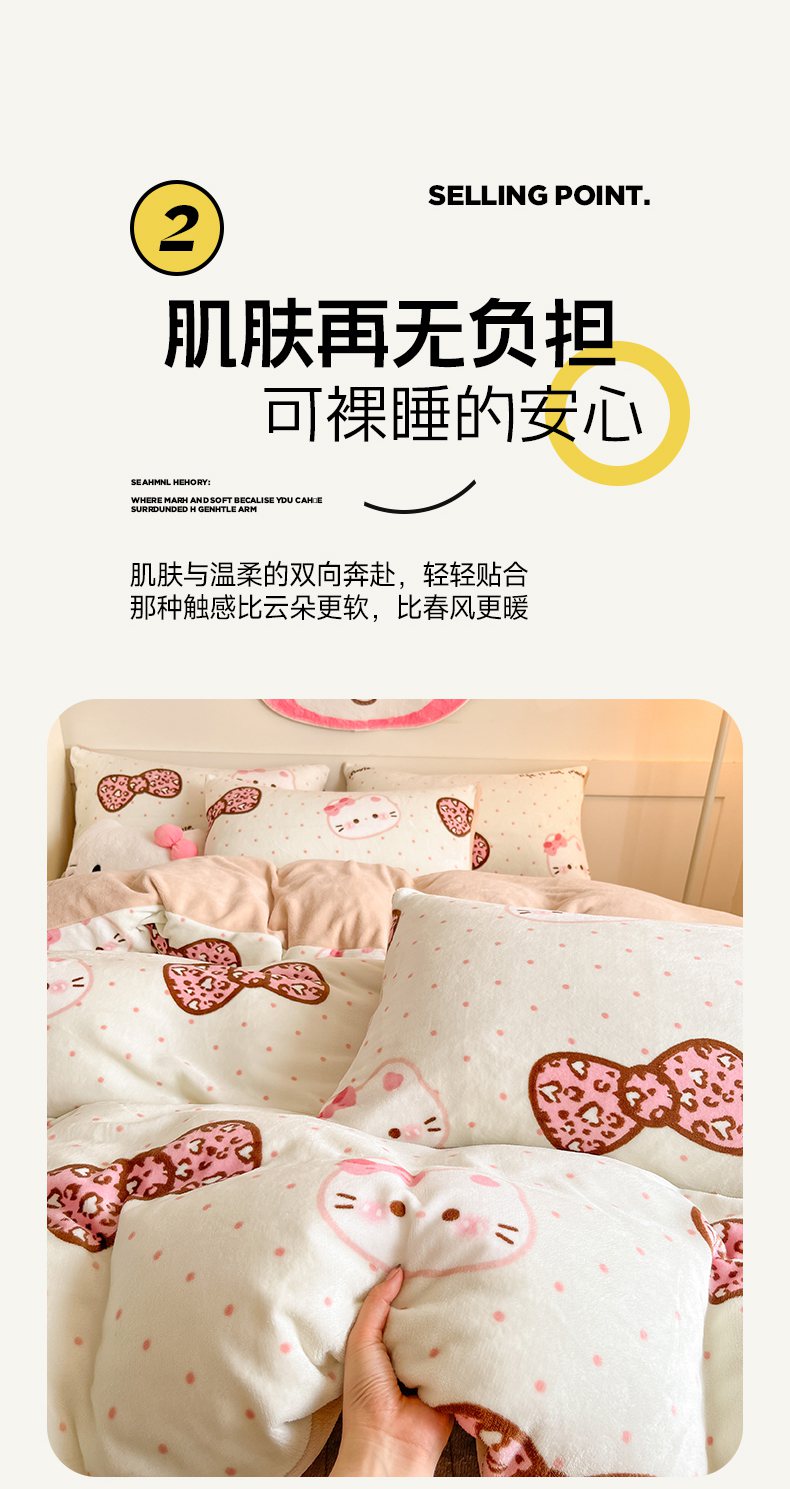 当前位置: 91家纺网 > 商品网购 > 床品套件 > 四件套 > 其它四件套 > 摩妮卡 2025新款牛奶绒印花夹棉床盖印花四件套 蝴蝶结凯蒂