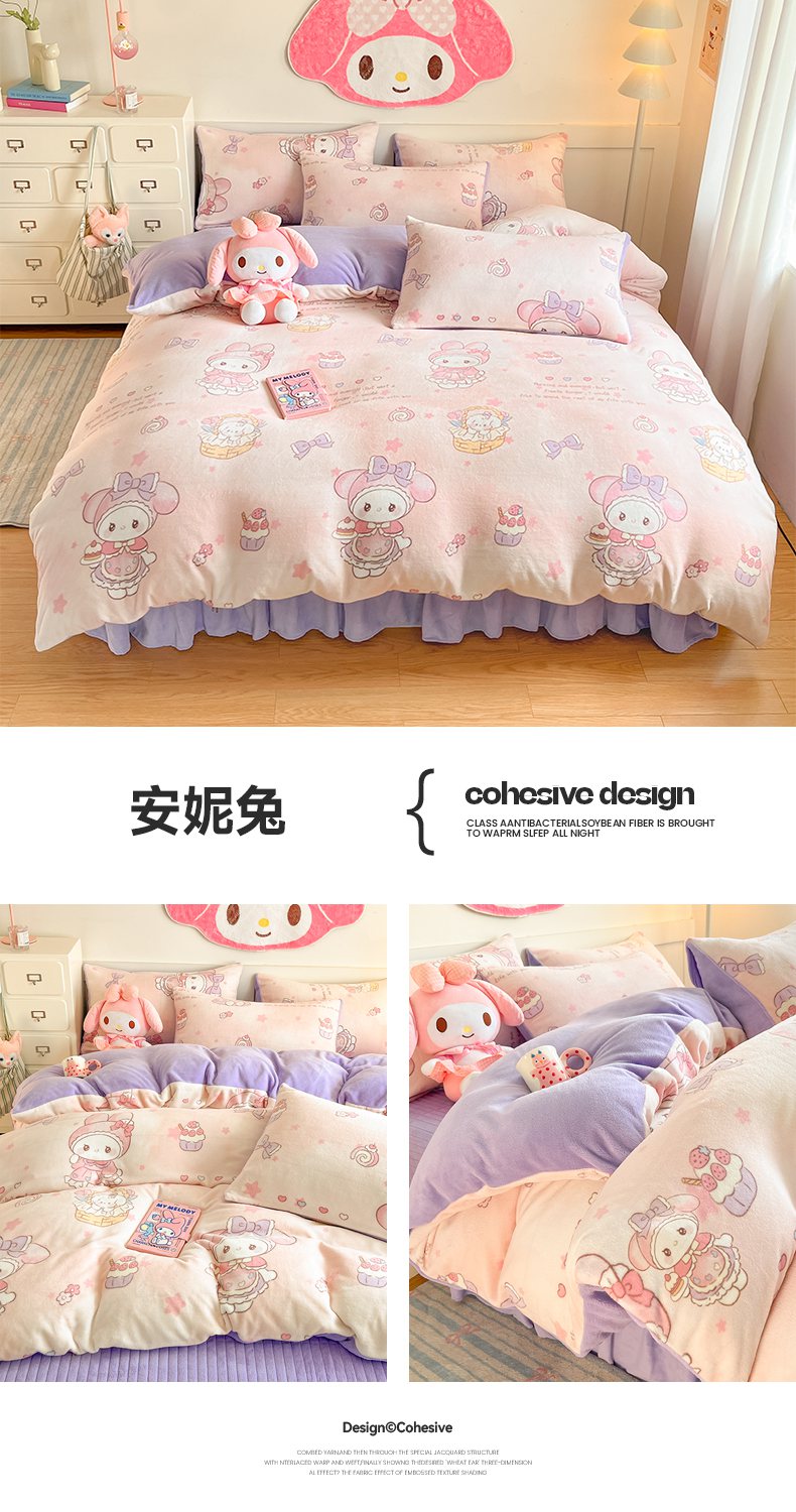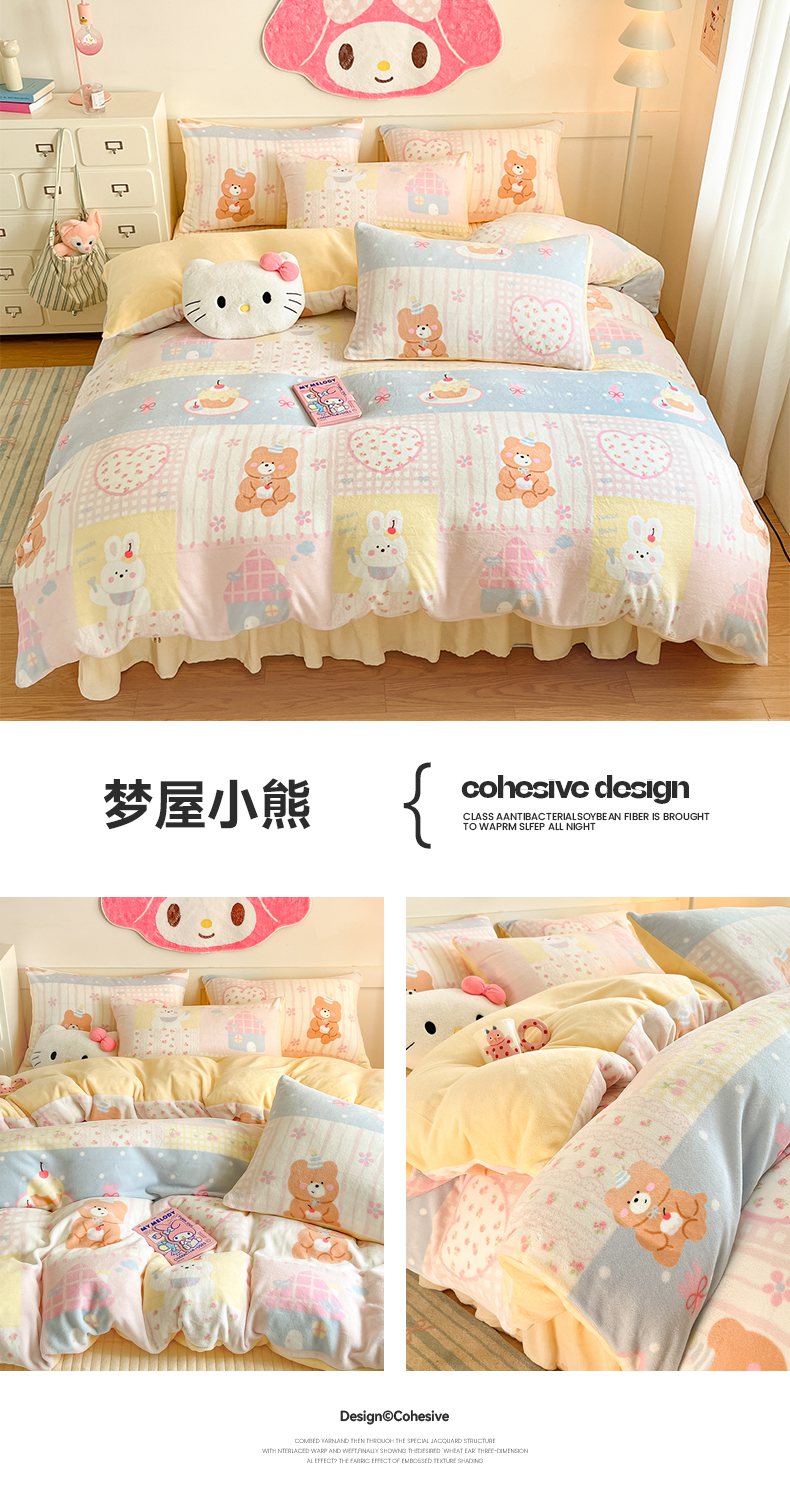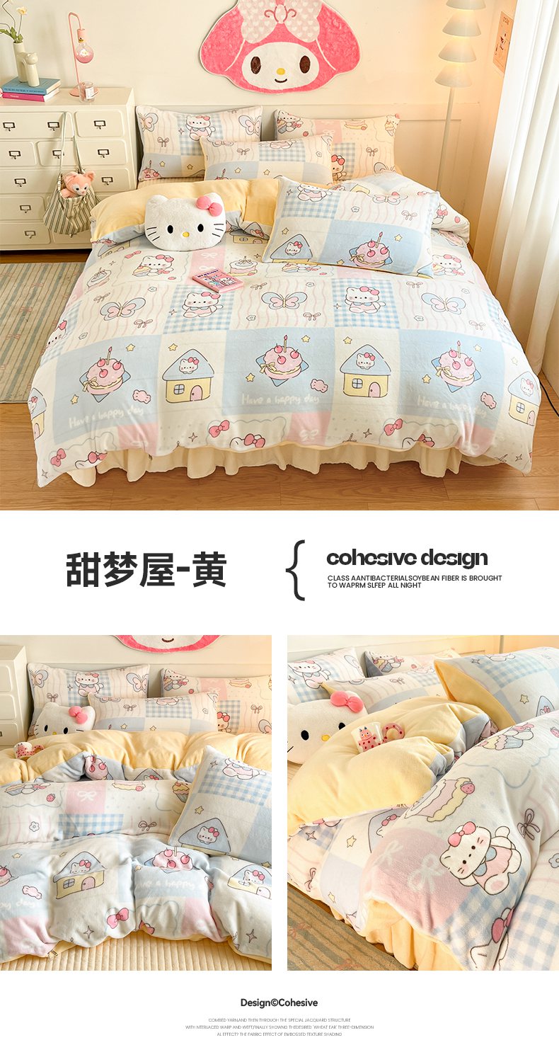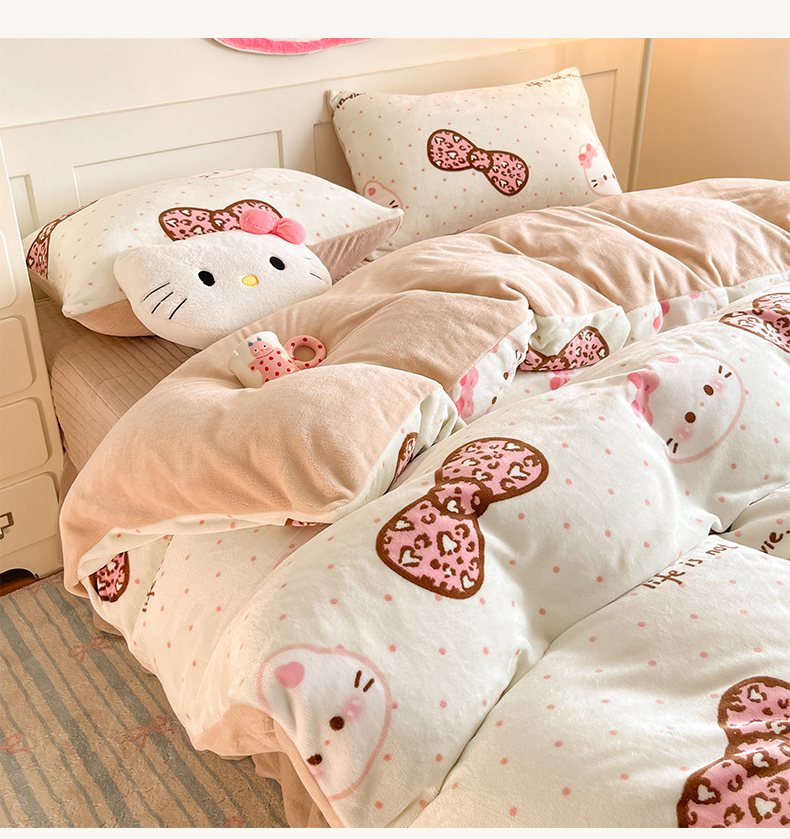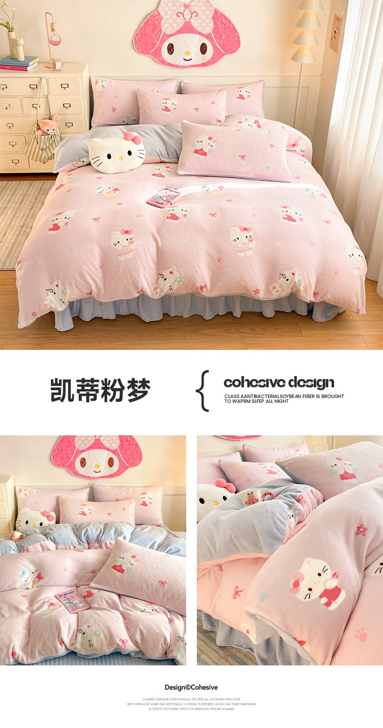 当前位置: 91家纺网 > 商品网购 > 床品套件 > 四件套 > 其它四件套 > 摩妮卡 2025新款牛奶绒印花夹棉床盖印花四件套 蝴蝶结凯蒂