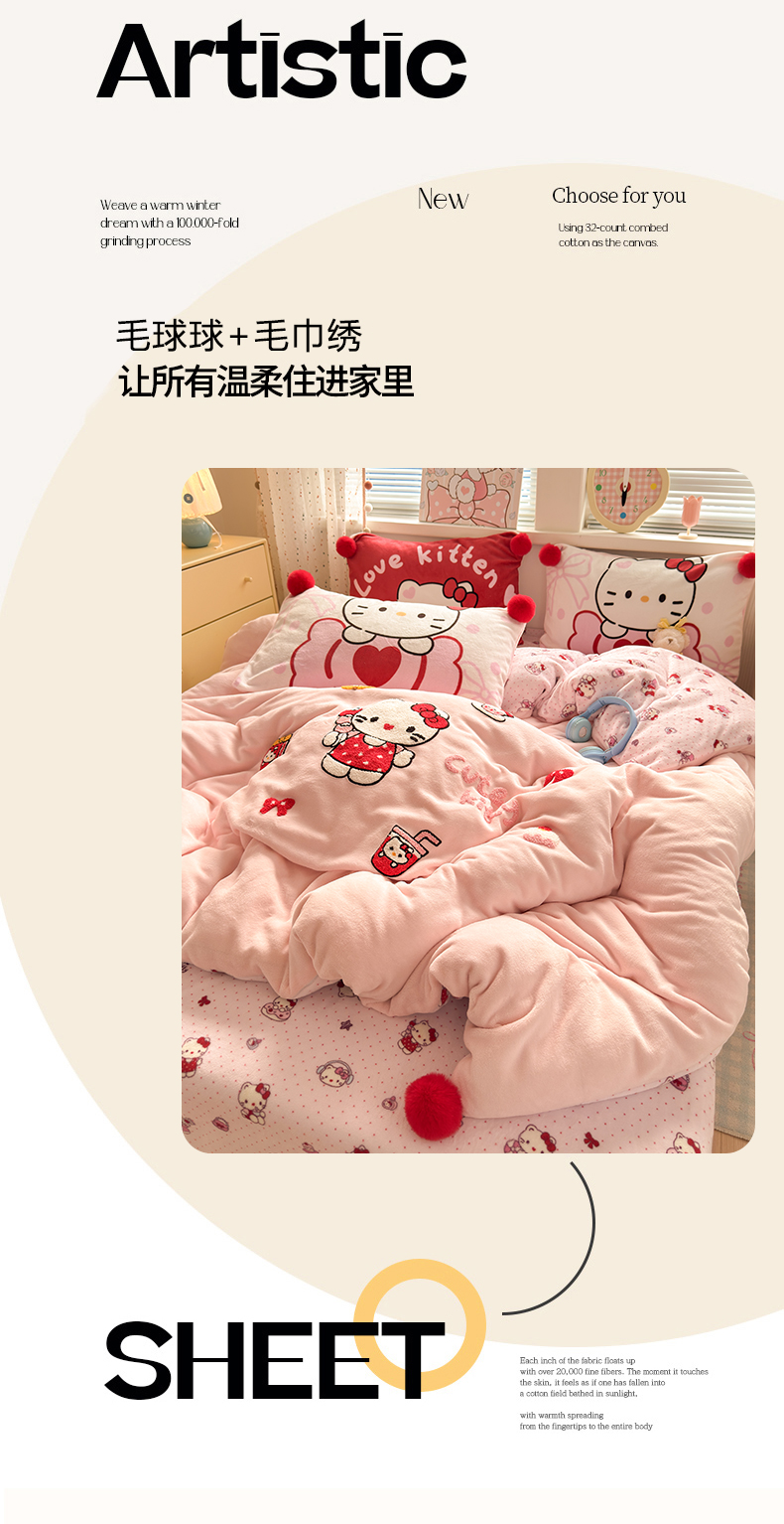 当前位置: 91家纺网 > 商品网购 > 床品套件 > 四件套 > 牛奶绒四件套 > 寐居家纺 2025新款毛球毛巾绣牛奶绒四件套 毛球球·心动KT喵