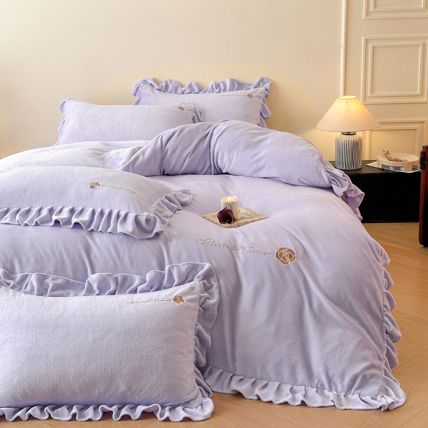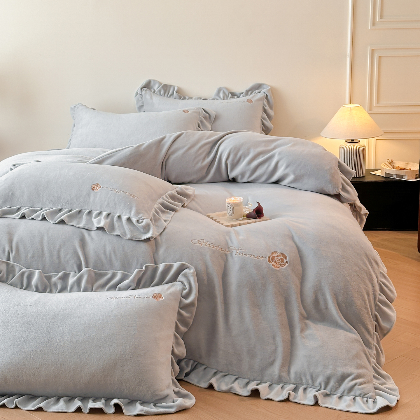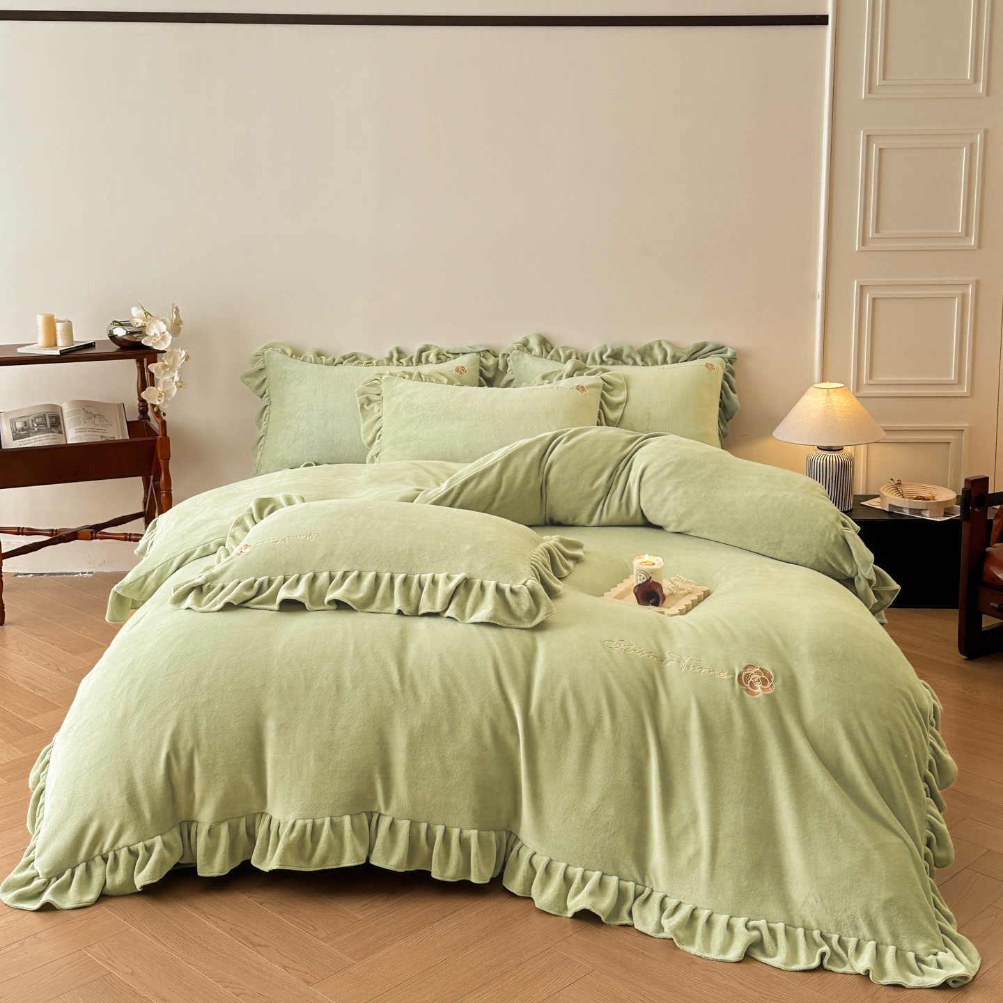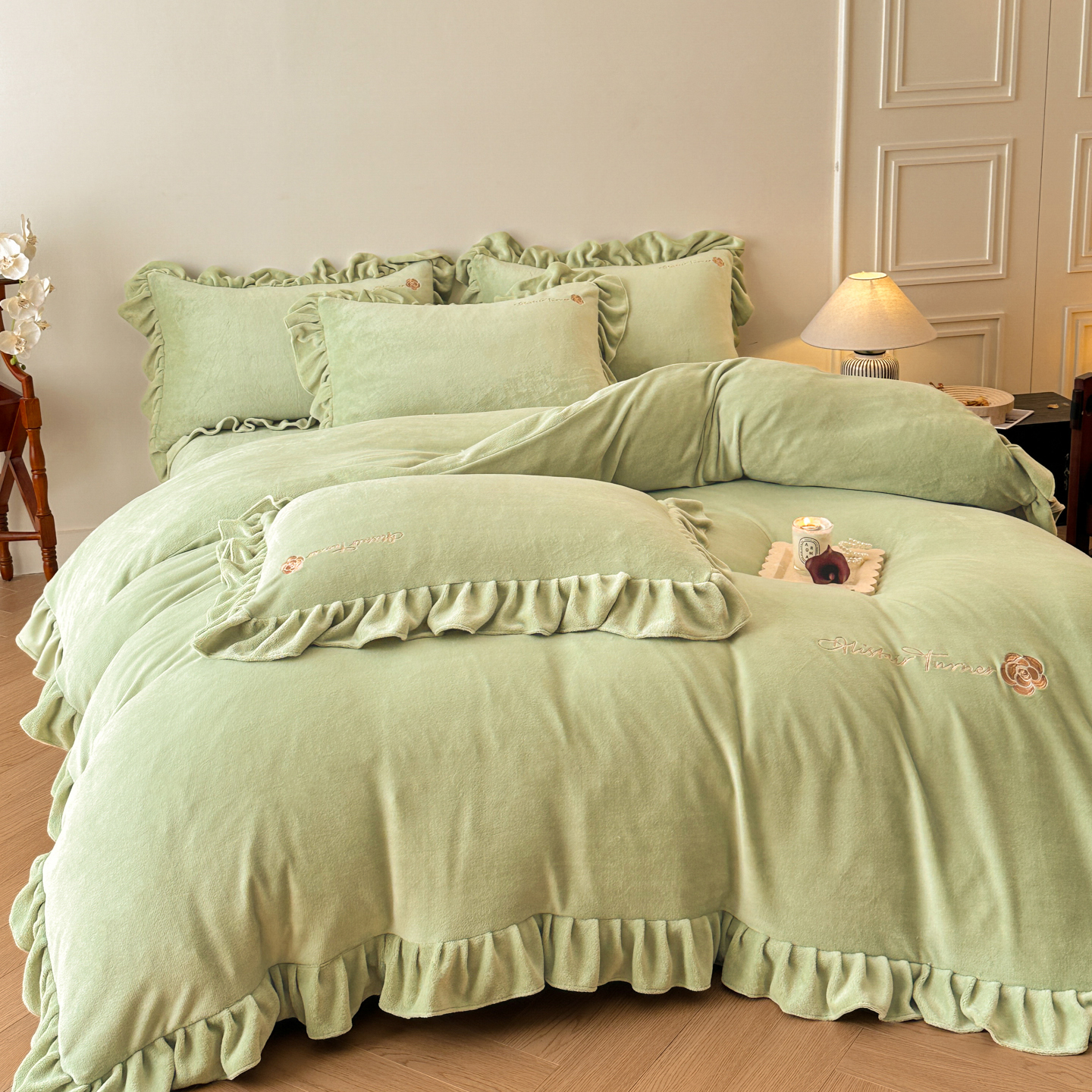 花满路 2025新款亲肤舒适绒四件套-山茶花系列 山茶花-绿