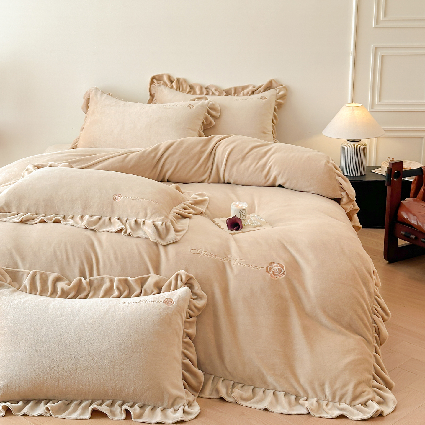 商品名称:花满路 2025新款亲肤舒适绒四件套-山茶花系列 山茶花-绿
