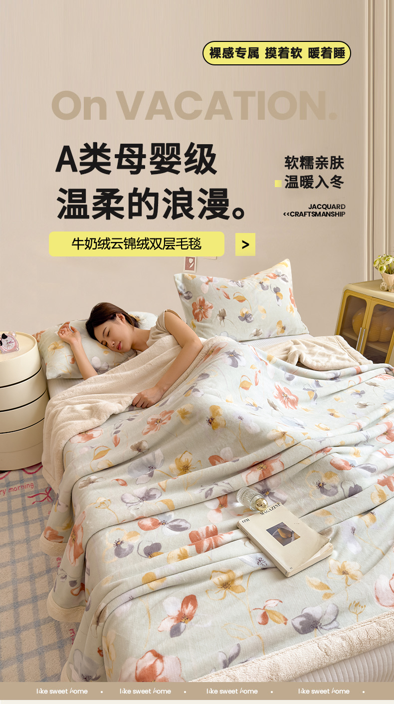 当前位置: 91家纺网 > 商品网购 > 毛毯休闲毯绒毯 > 毛毯 > 慕木家纺 2025新款高克重印花牛奶绒云锦绒双层毛毯毛毯毯子(可供跨境提供买家秀) 双层毛毯-秋海棠+白